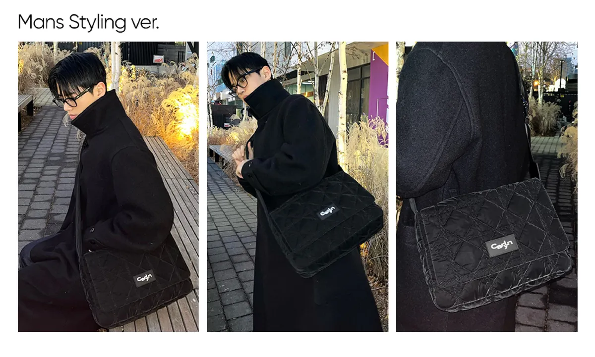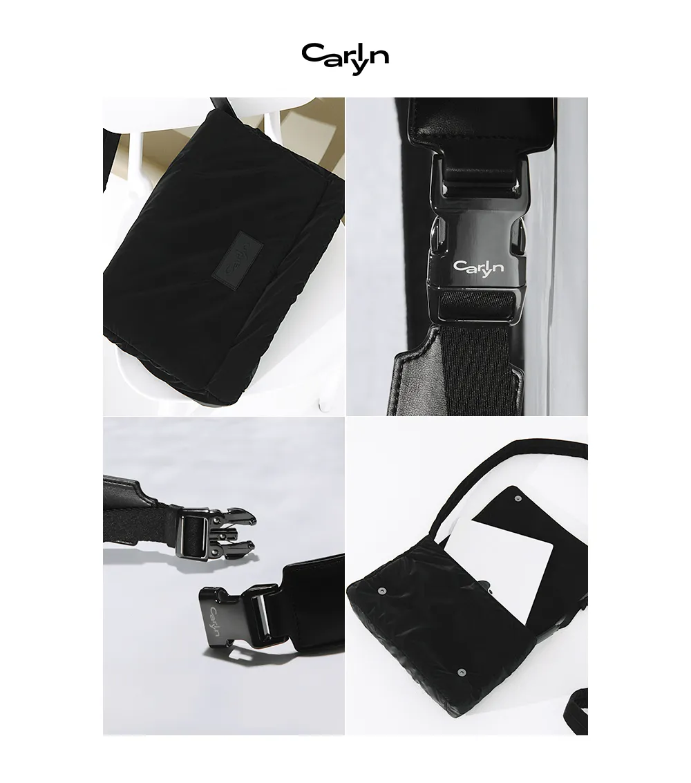 Carlyn008簡約率性背帶插扣斜背包 黑 菱格紋