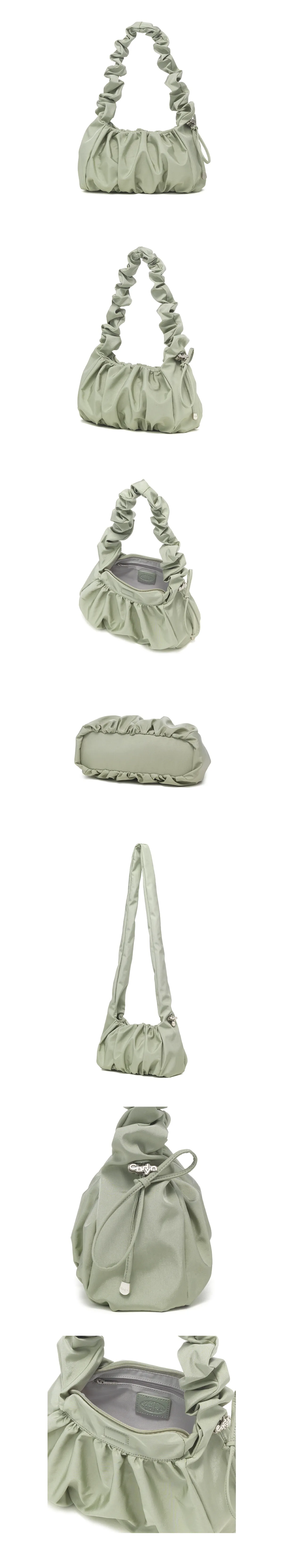 Carlyn026尼龍抽繩設計抓皺包(背帶長度可調) 米 粉 綠 黑