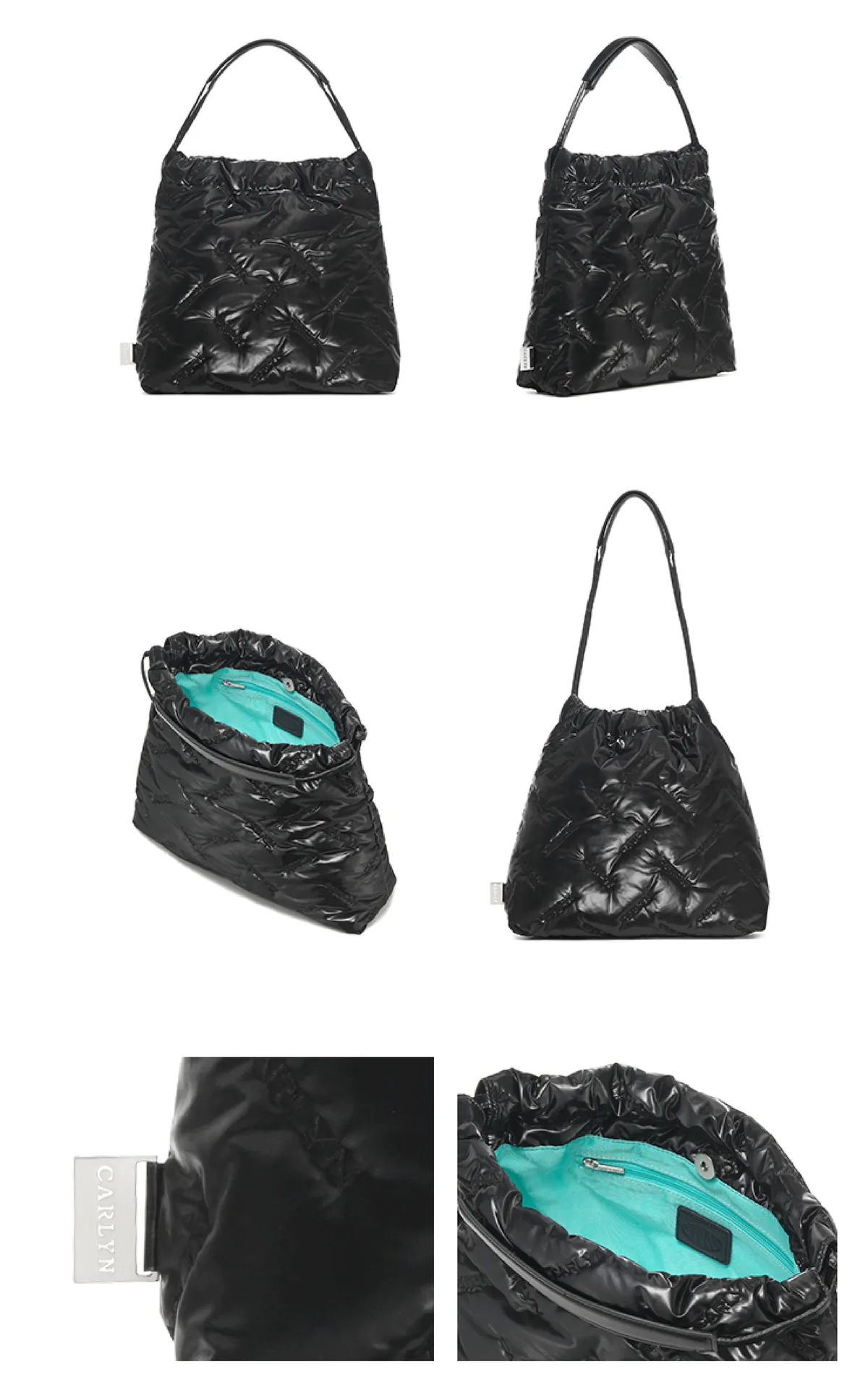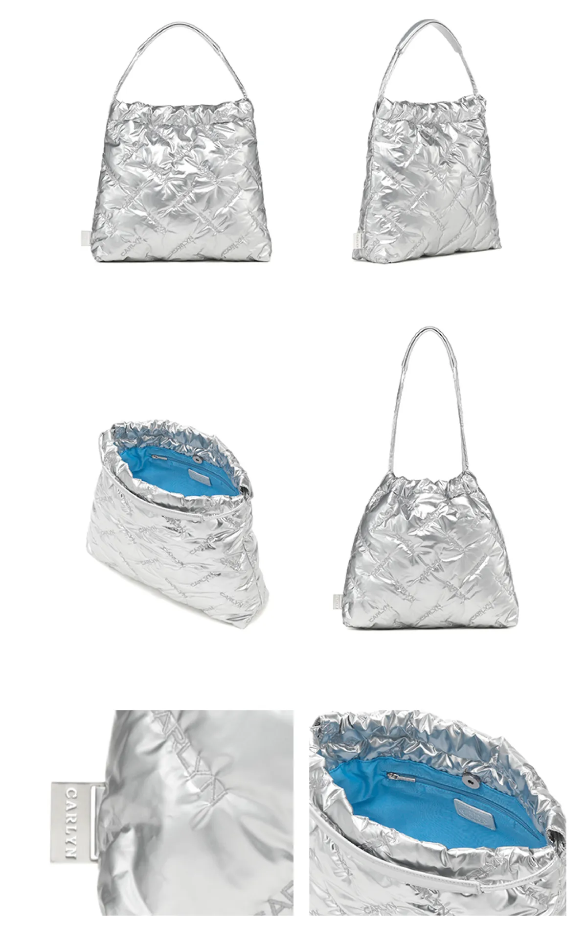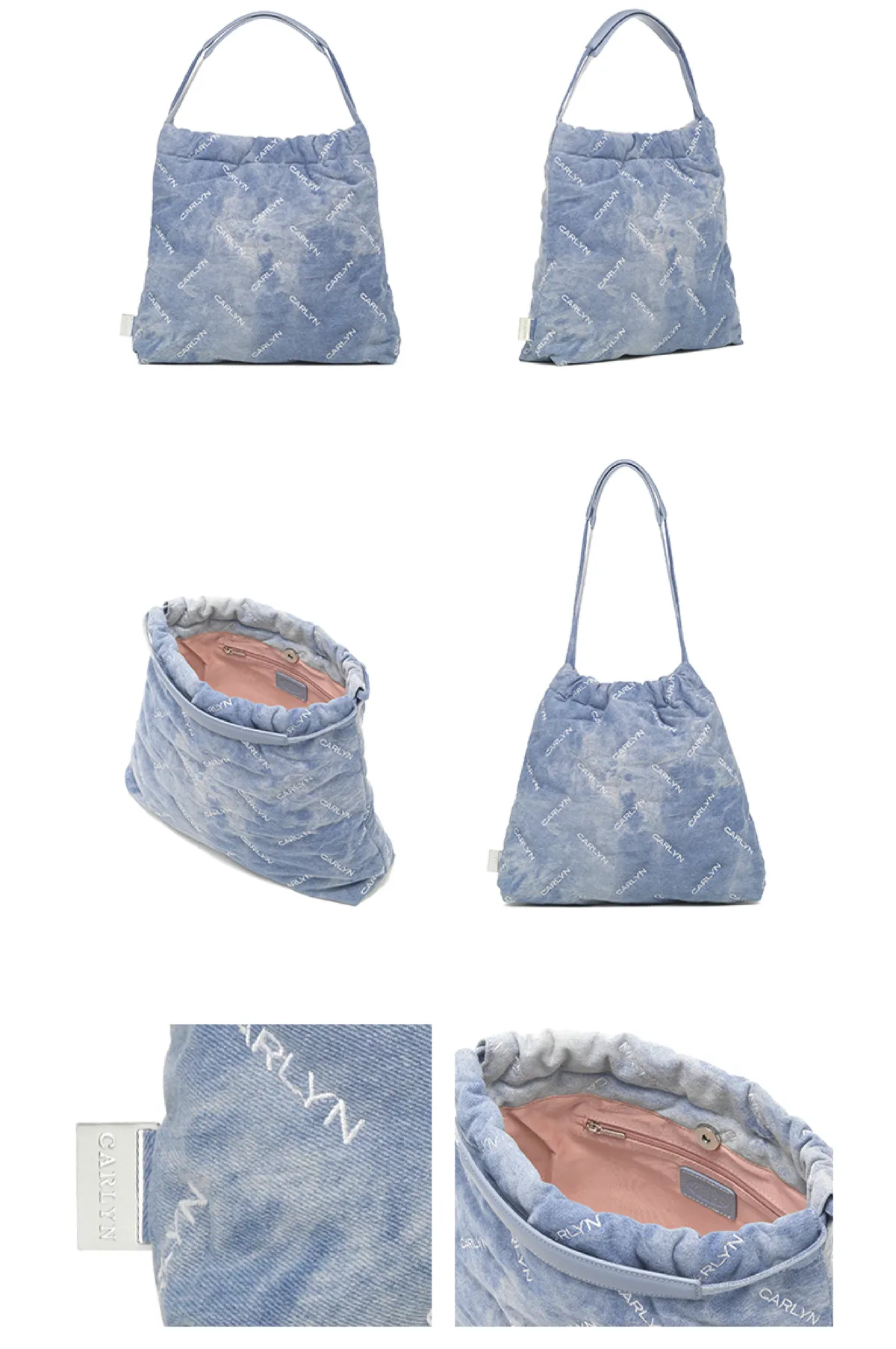 Carlyn030斜紋刺繡LOGO腋下包(大款)黑 銀 藍 白