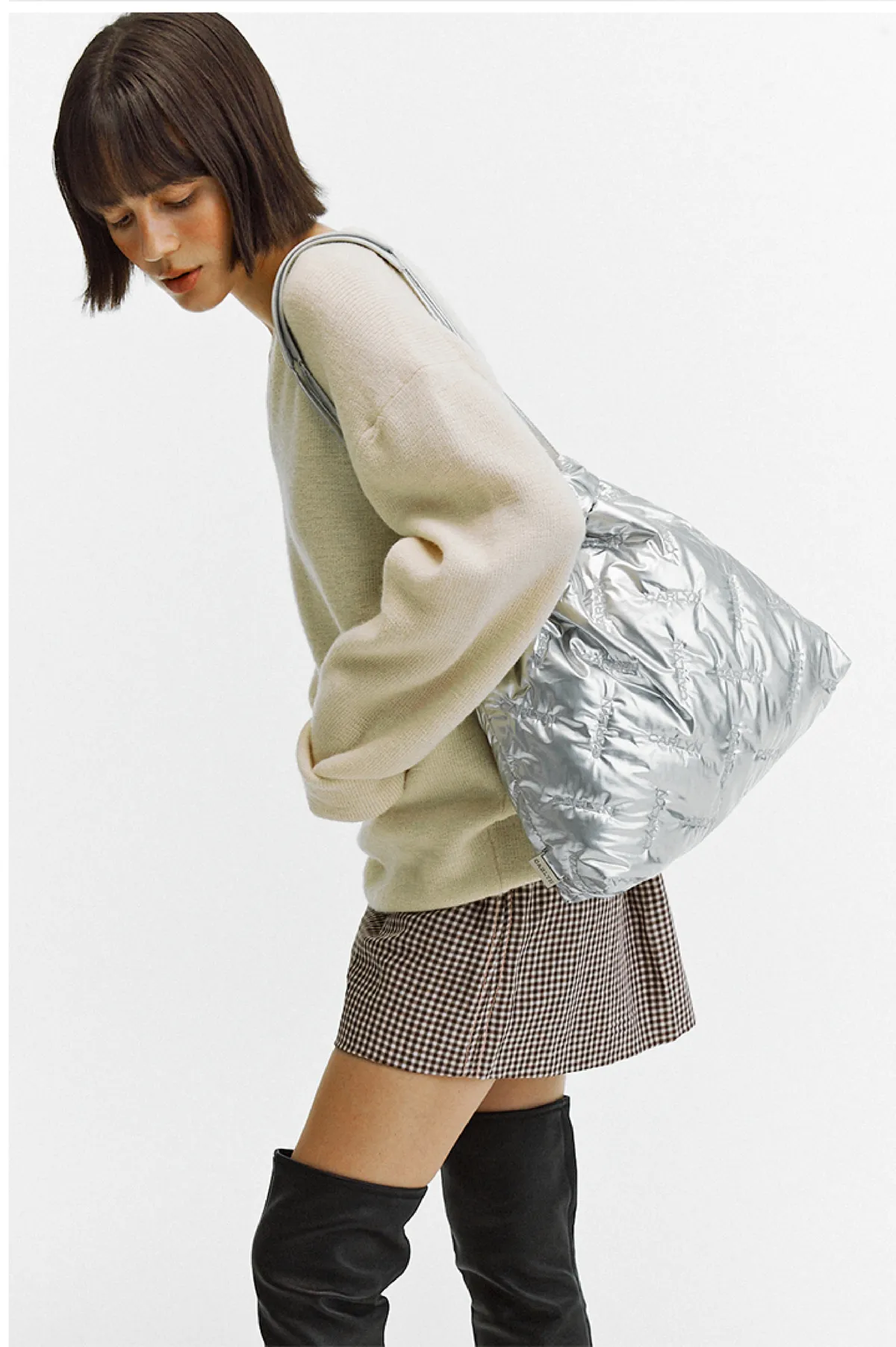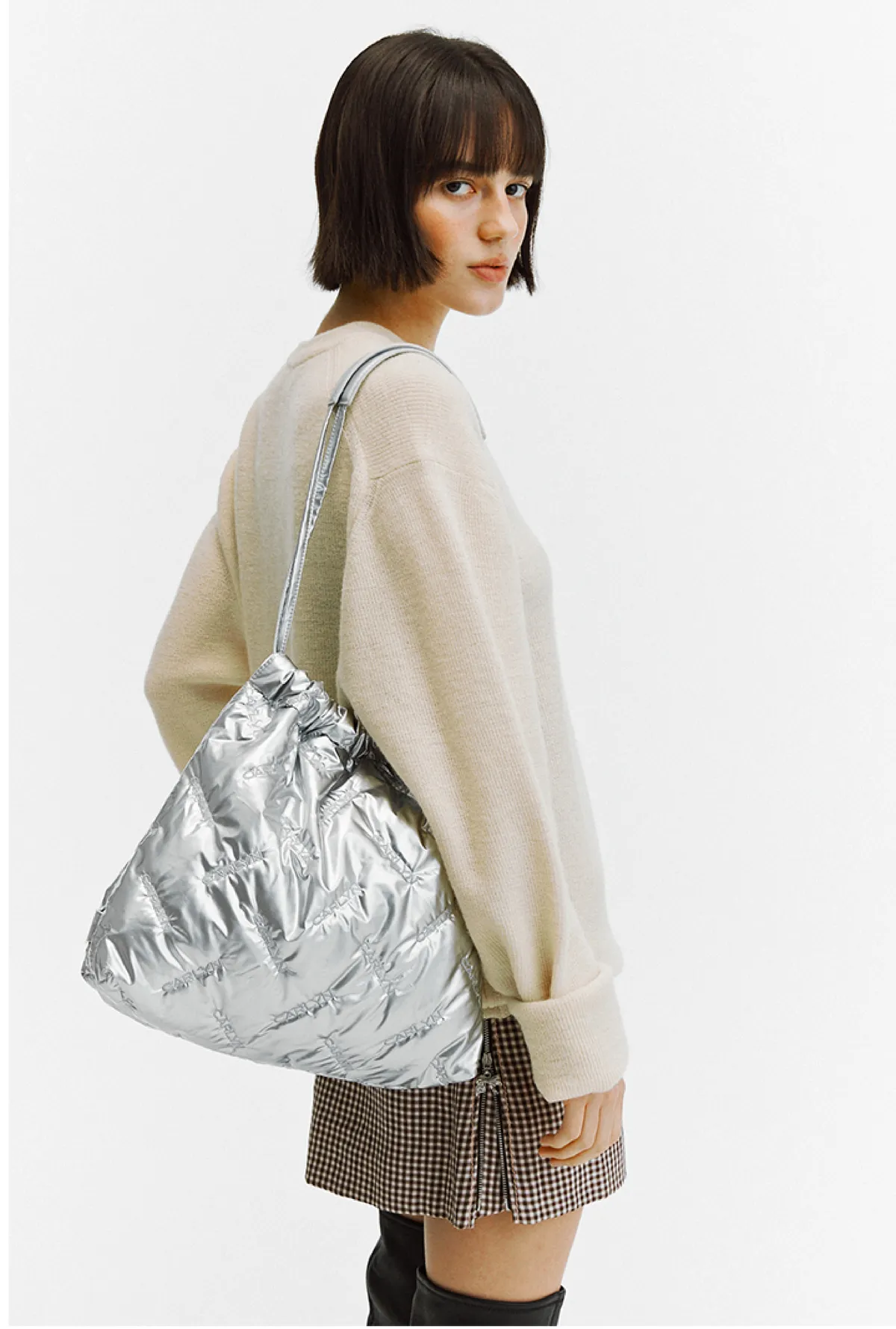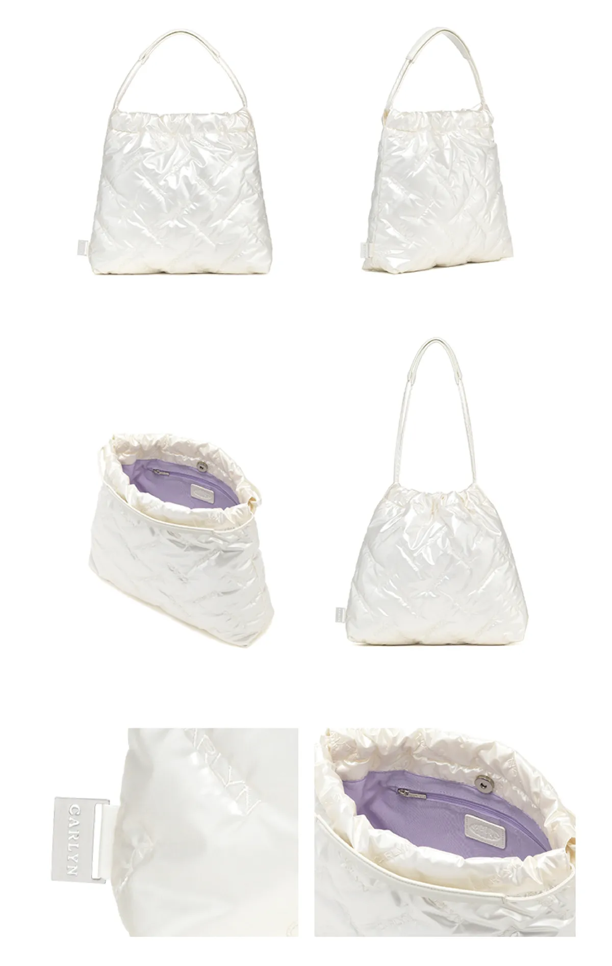 Carlyn030斜紋刺繡LOGO腋下包(大款)黑 銀 藍 白