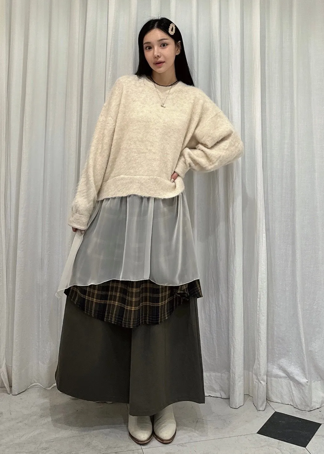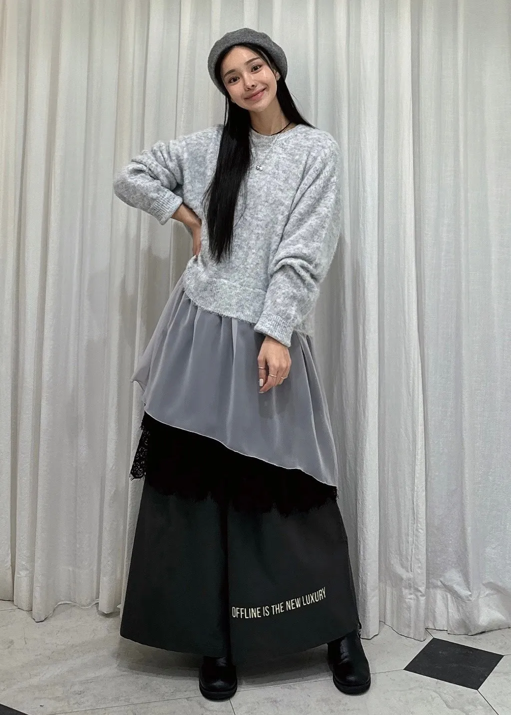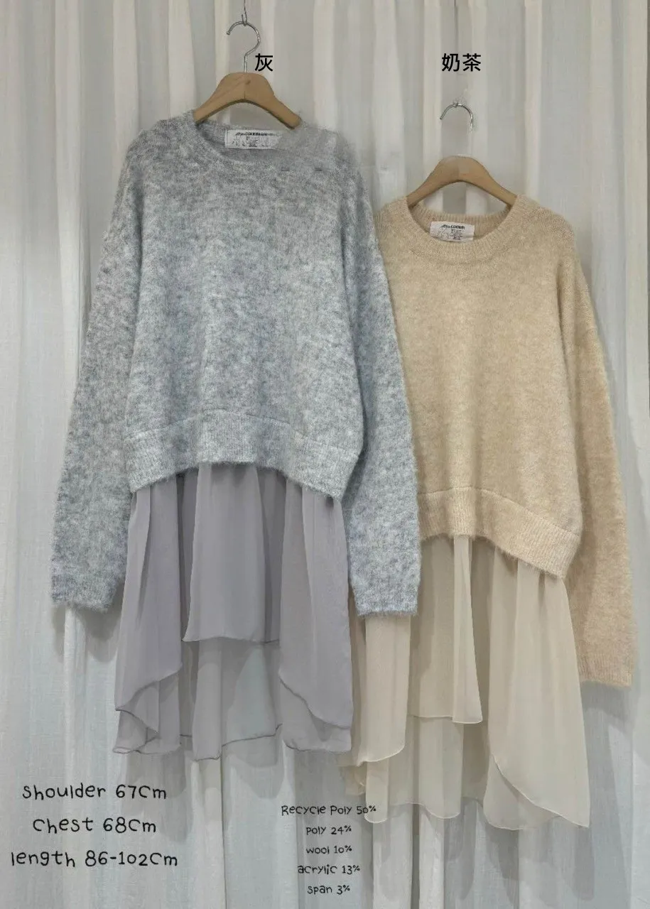 DC037柔軟毛毛透光雪仿下擺上衣 灰 奶茶 官網價$1580 線上價$1550