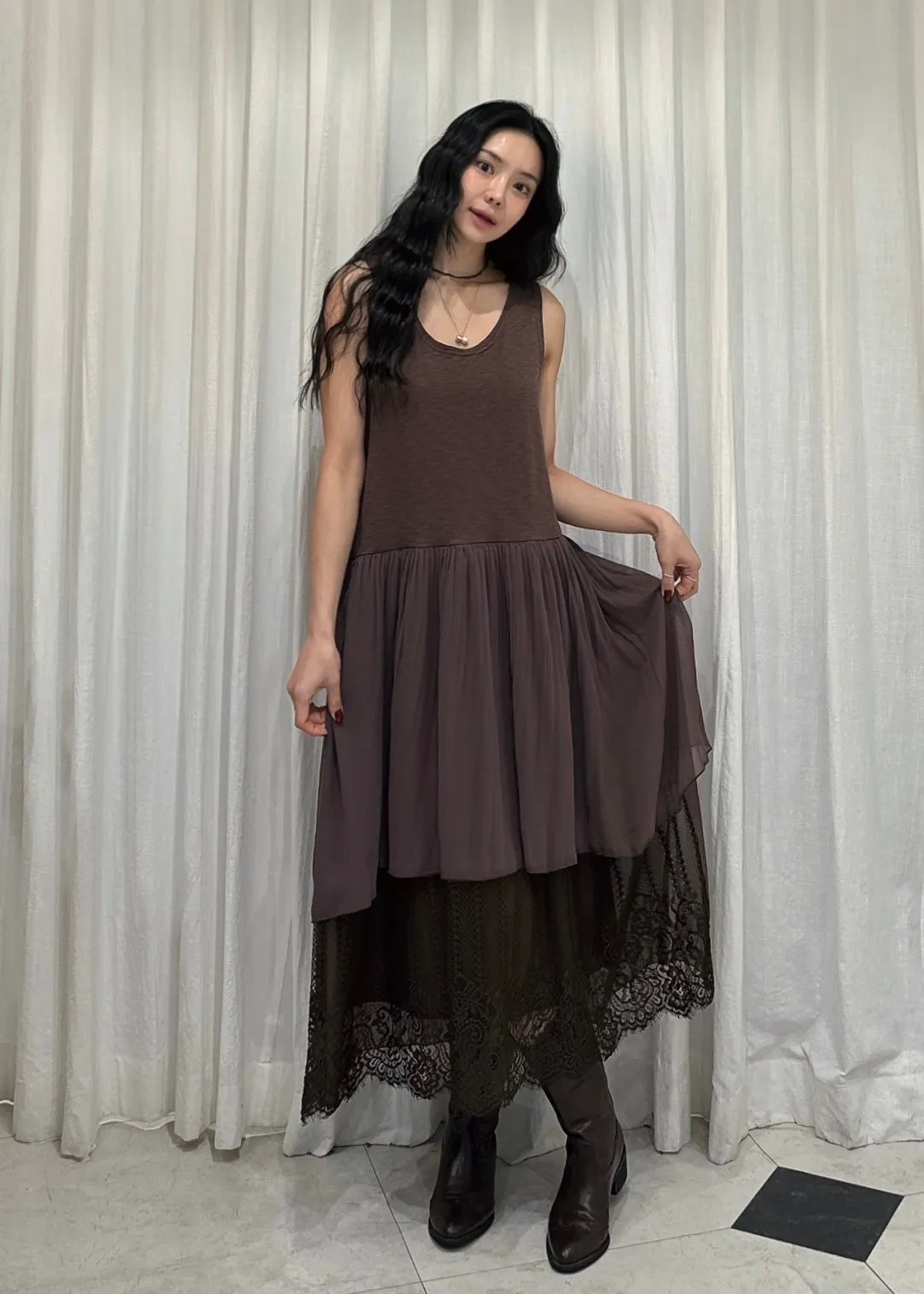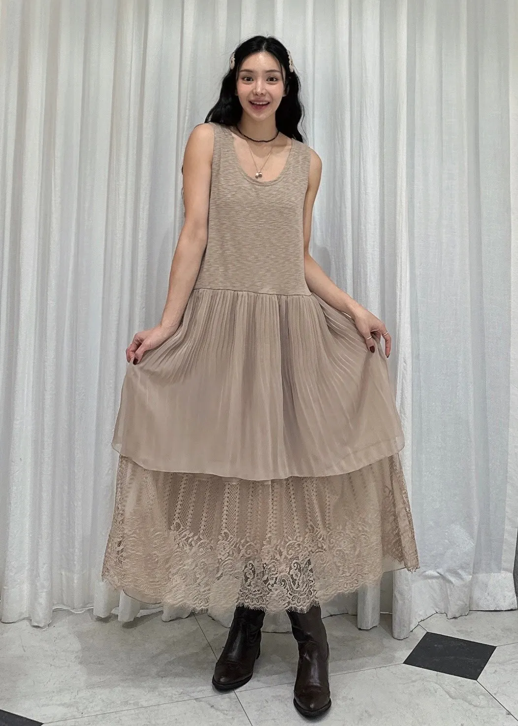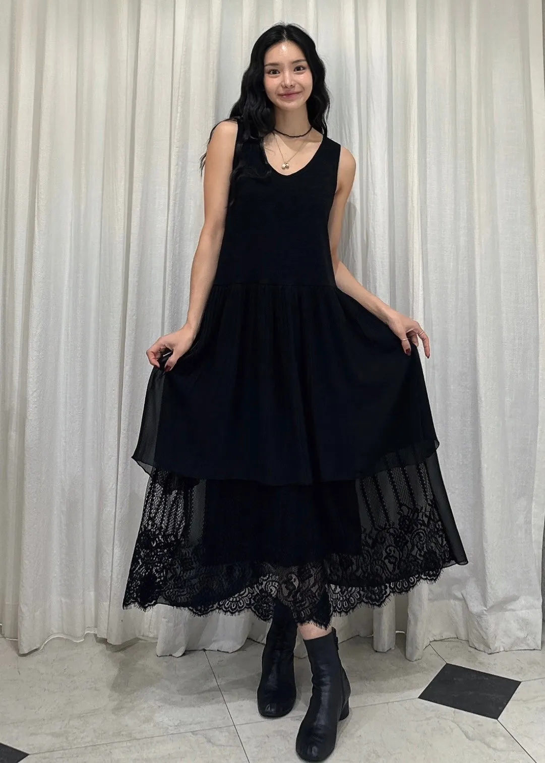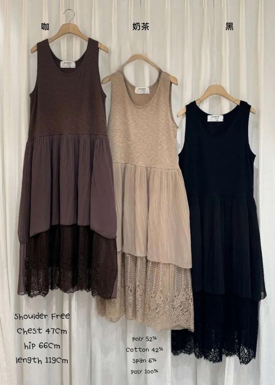 棉+聚酯+蕾絲 層次長裙 極美高雅蕾絲 薄款舒適 XL友善