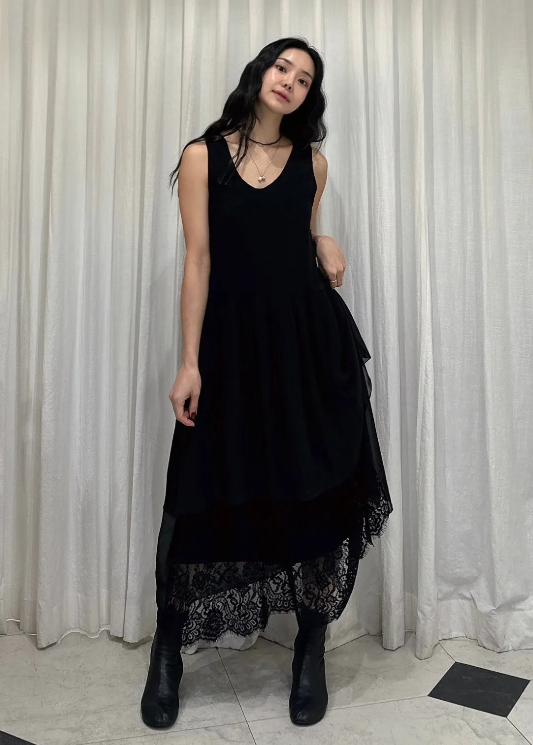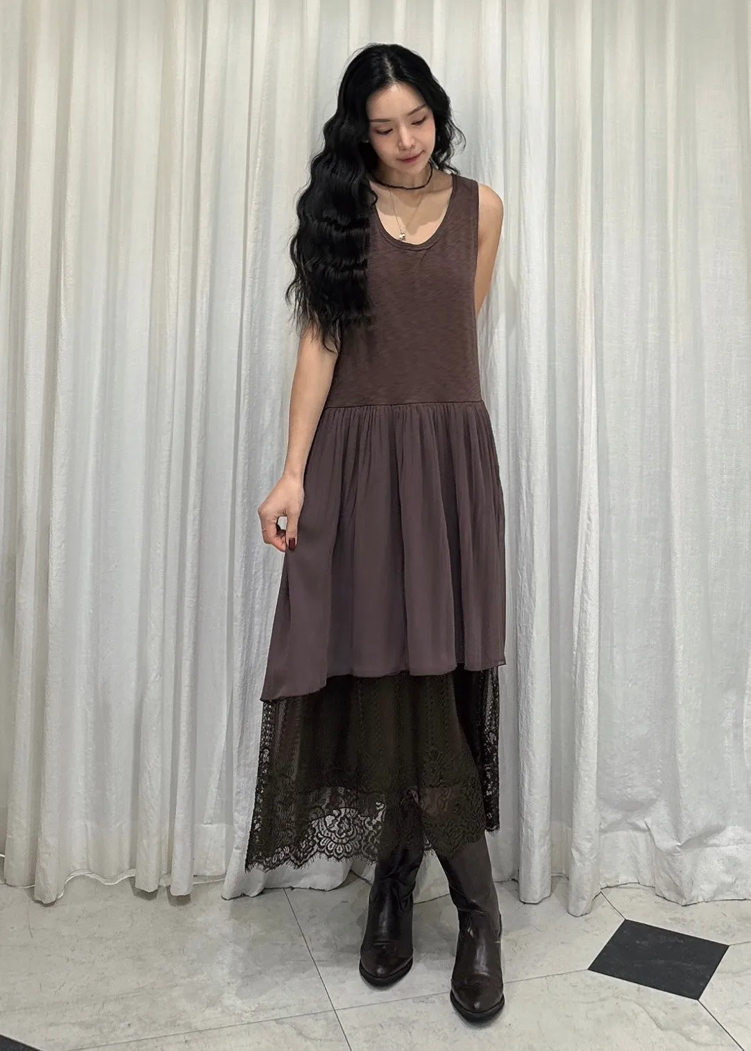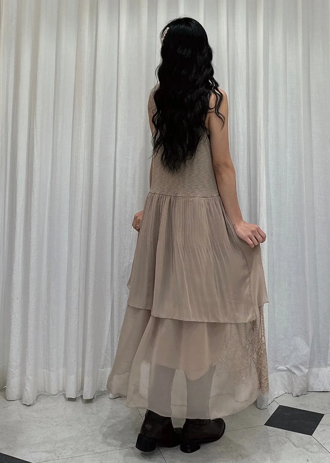 棉+聚酯+蕾絲 層次長裙 極美高雅蕾絲 薄款舒適 XL友善