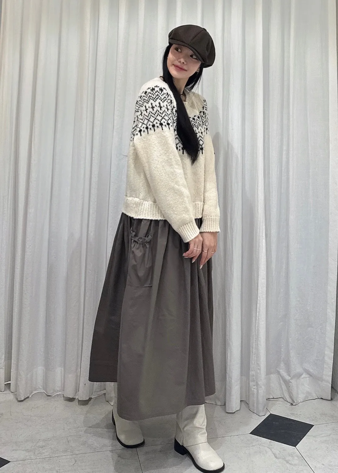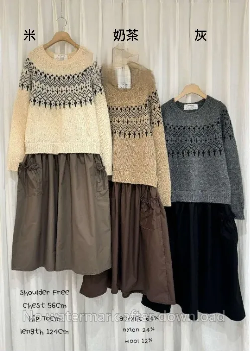 DC049經典圖騰毛衣裙洋裝 米 灰 奶茶 官網價$1520 線上價$1490