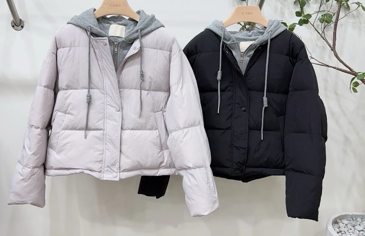 鴨絨85% 假兩件式 下擺抽繩 袖口無縮口