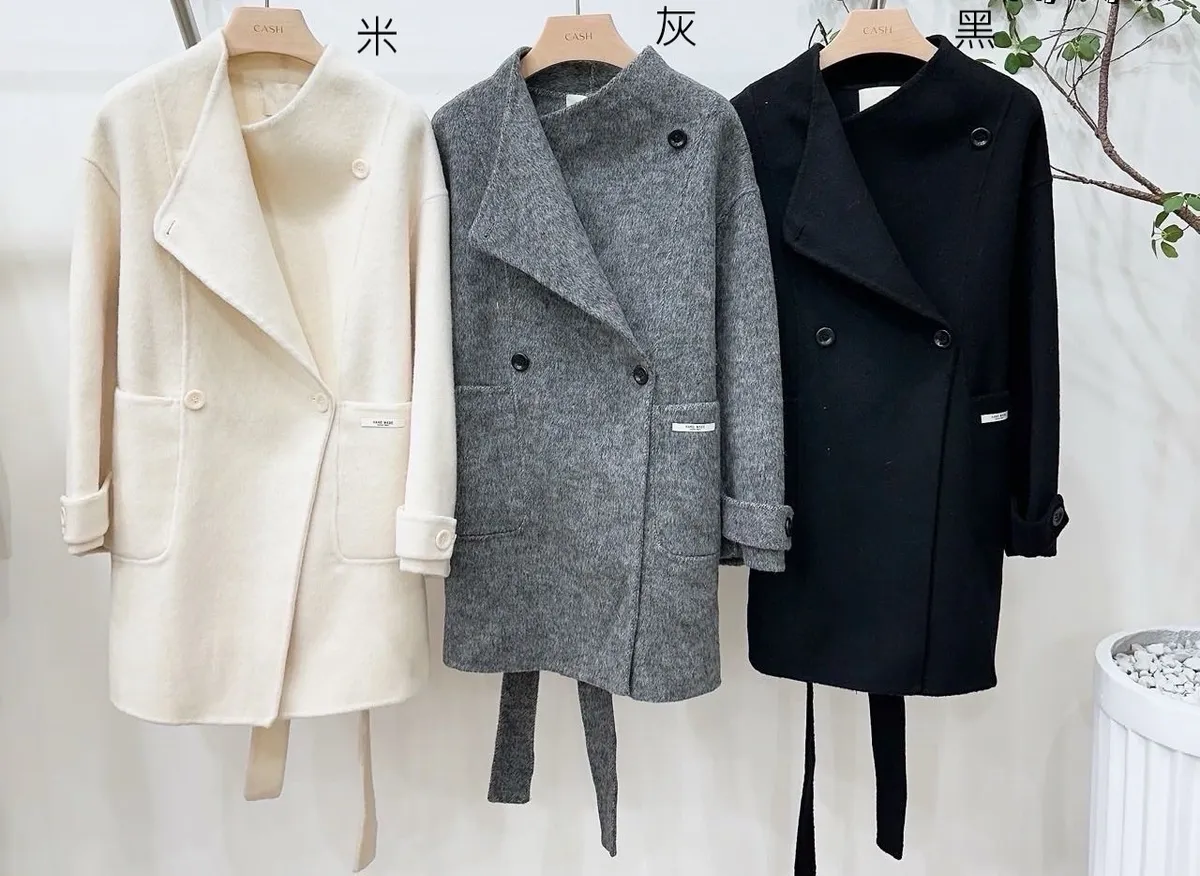 羊毛75%+聚酯 三種穿法 附腰帶 有口袋 輕盈不重 無內裡