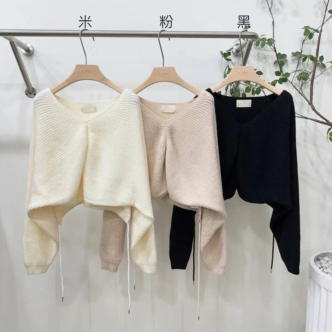 尼龍+壓克力 v領短版設計 下擺綁繩設計