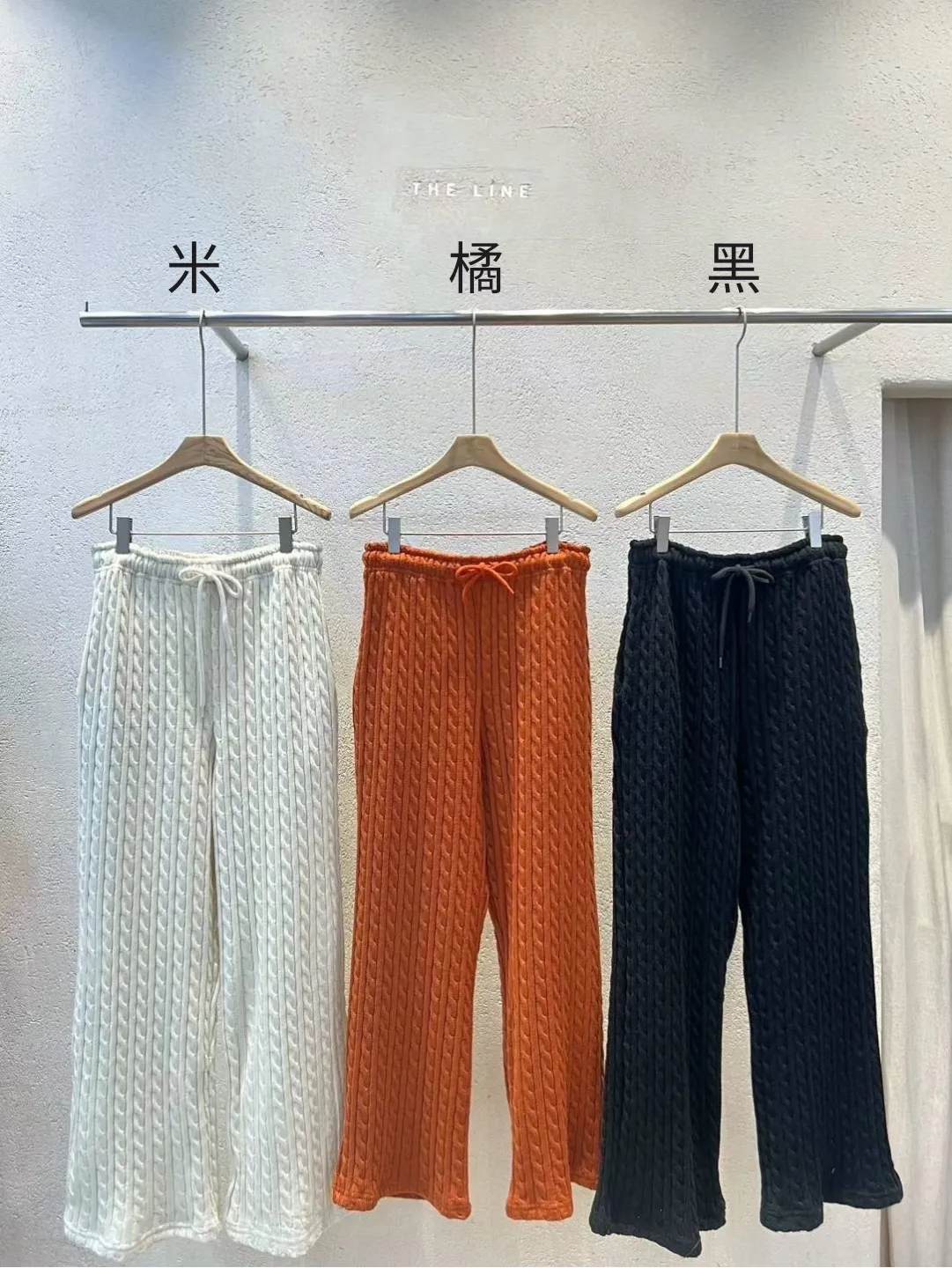 聚酯 體感舒適 腰有鬆緊抽繩 面料彈性 微微喇叭褲