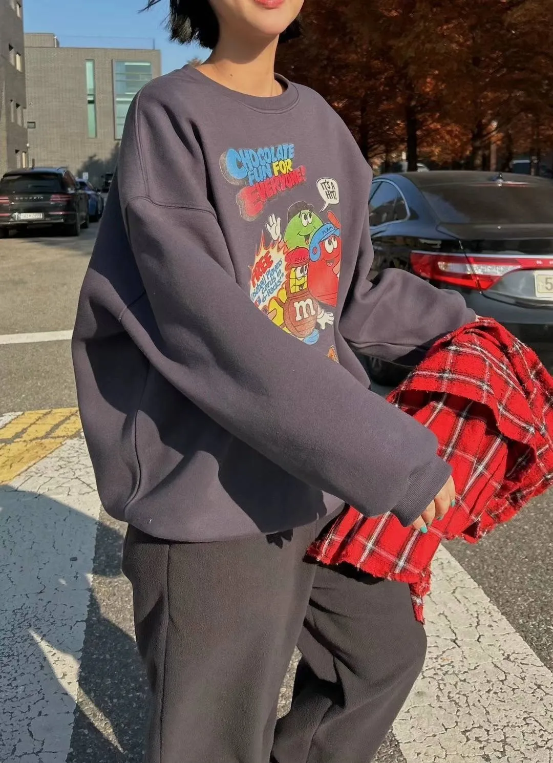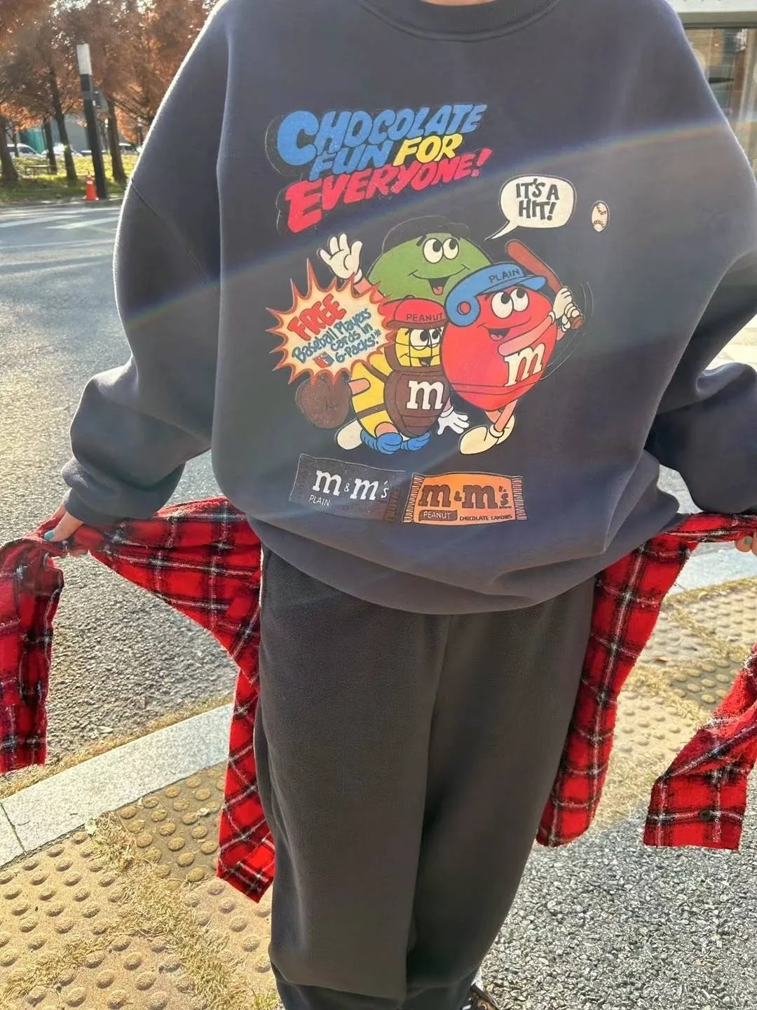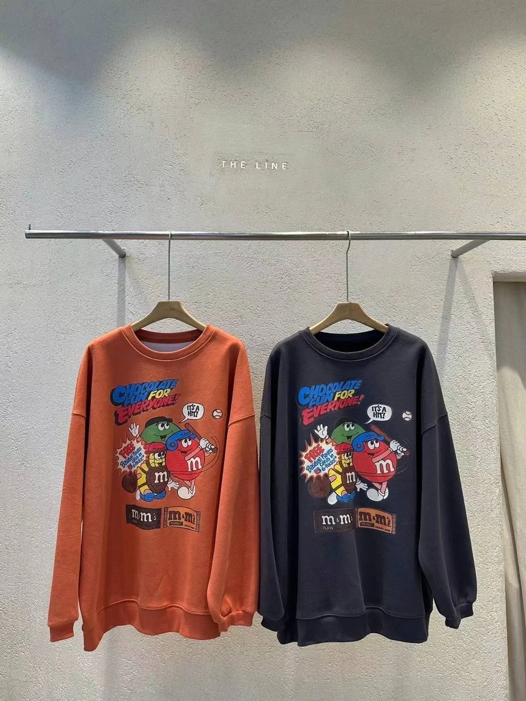 棉,繽紛MM巧克力 美式風格 落肩款 內襯無刷毛 XL友善