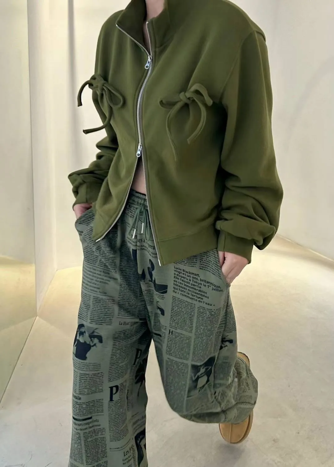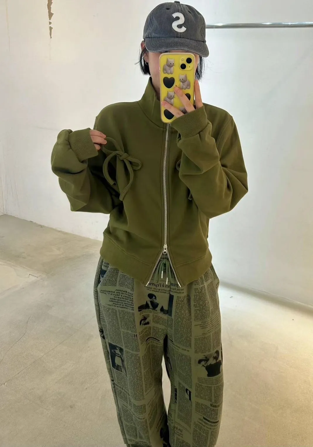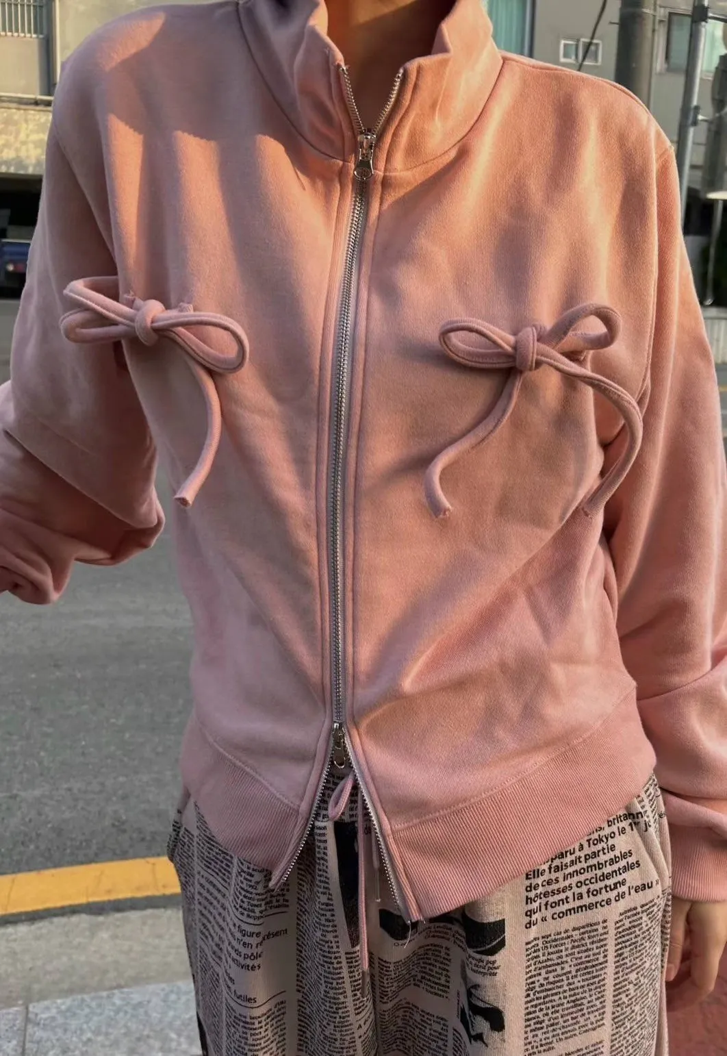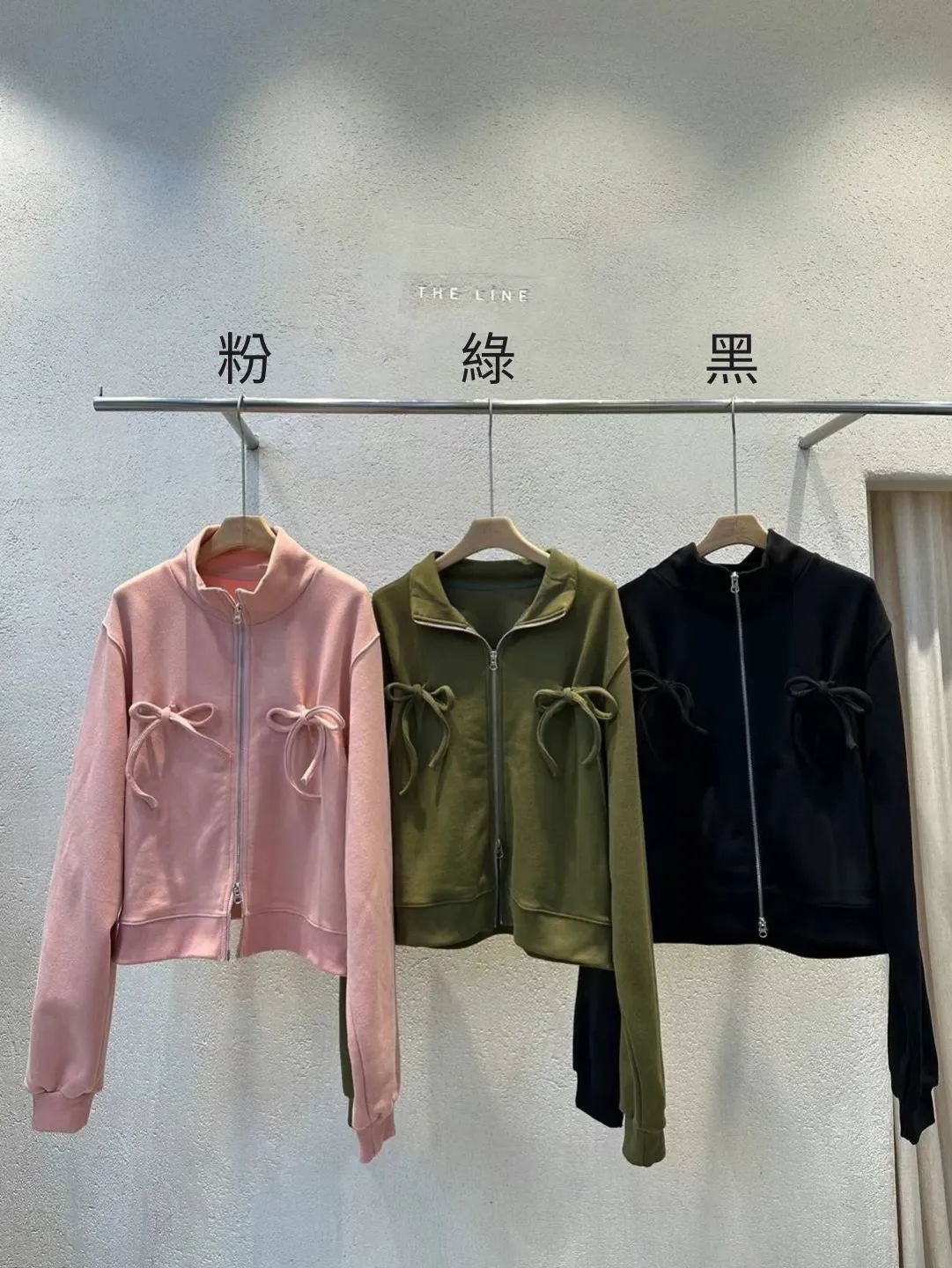 DC122特價蝴蝶結拉鍊外套 粉 綠 黑 原價$1380 特價$720
