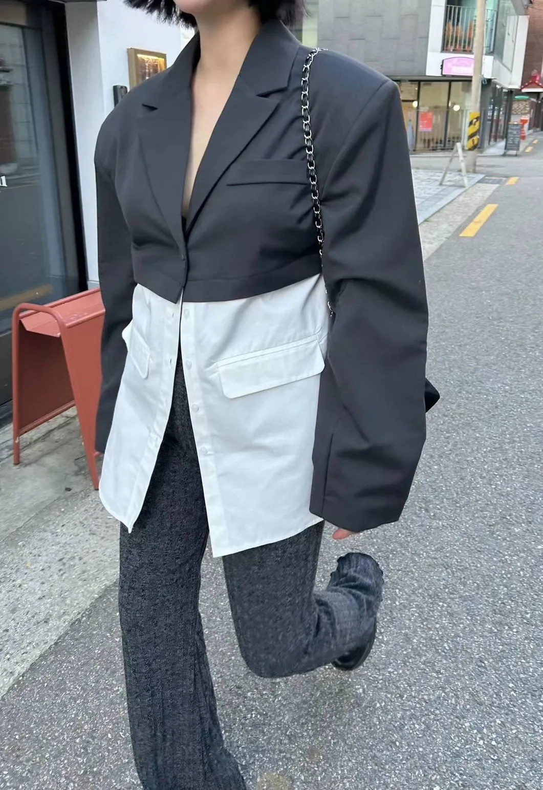 DC128特價拼接西裝外套 灰 黑 原價$1980 特價$1299