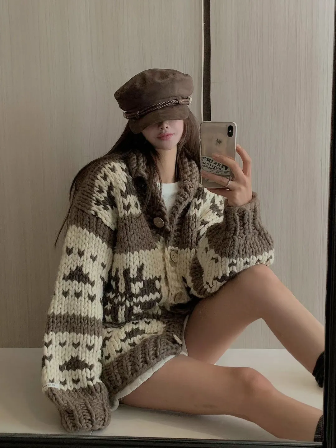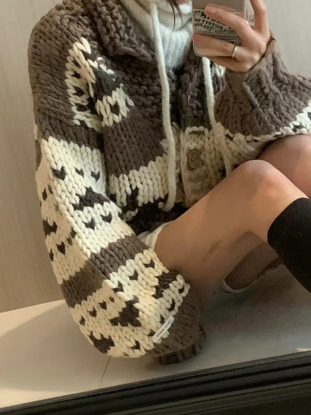 羊毛100% 軟Q羊毛 木頭釦 冬季經典粗勾織 有口袋有暖度 L友善