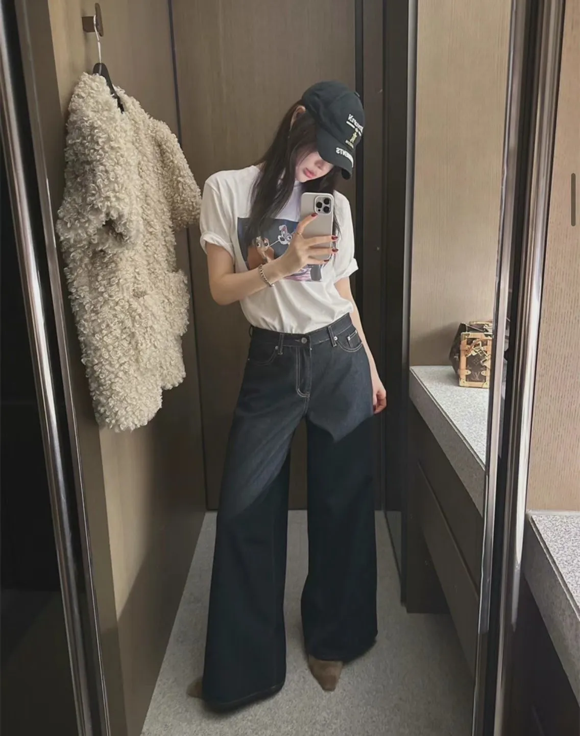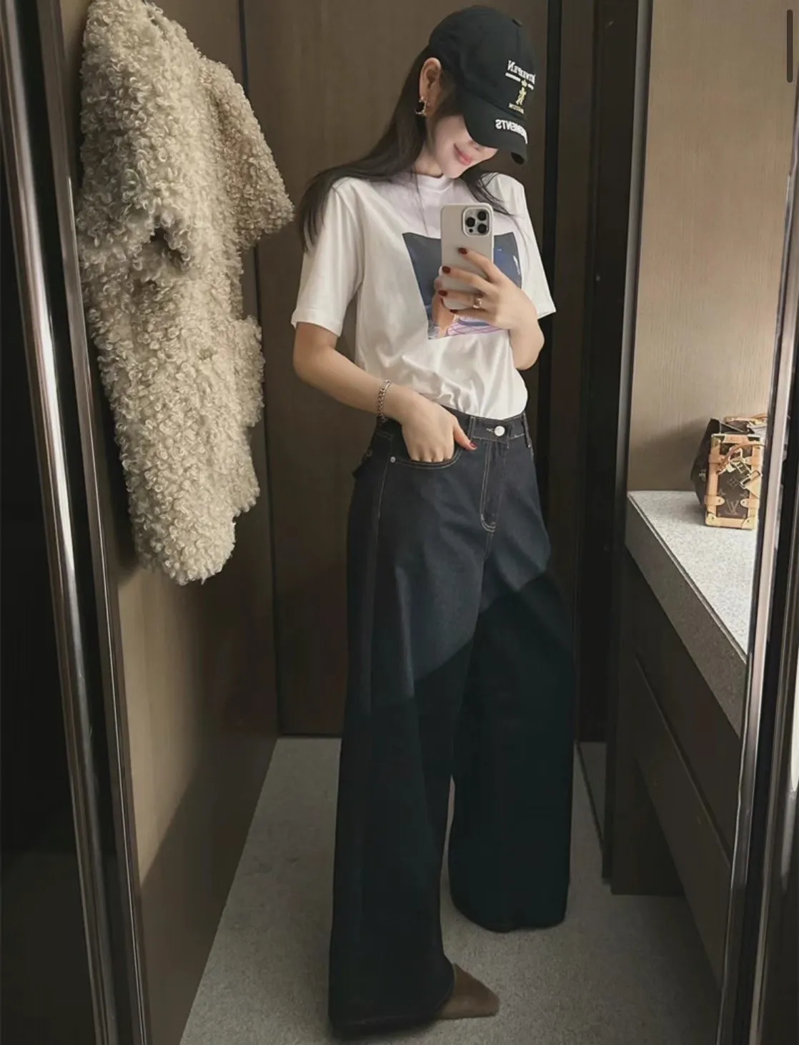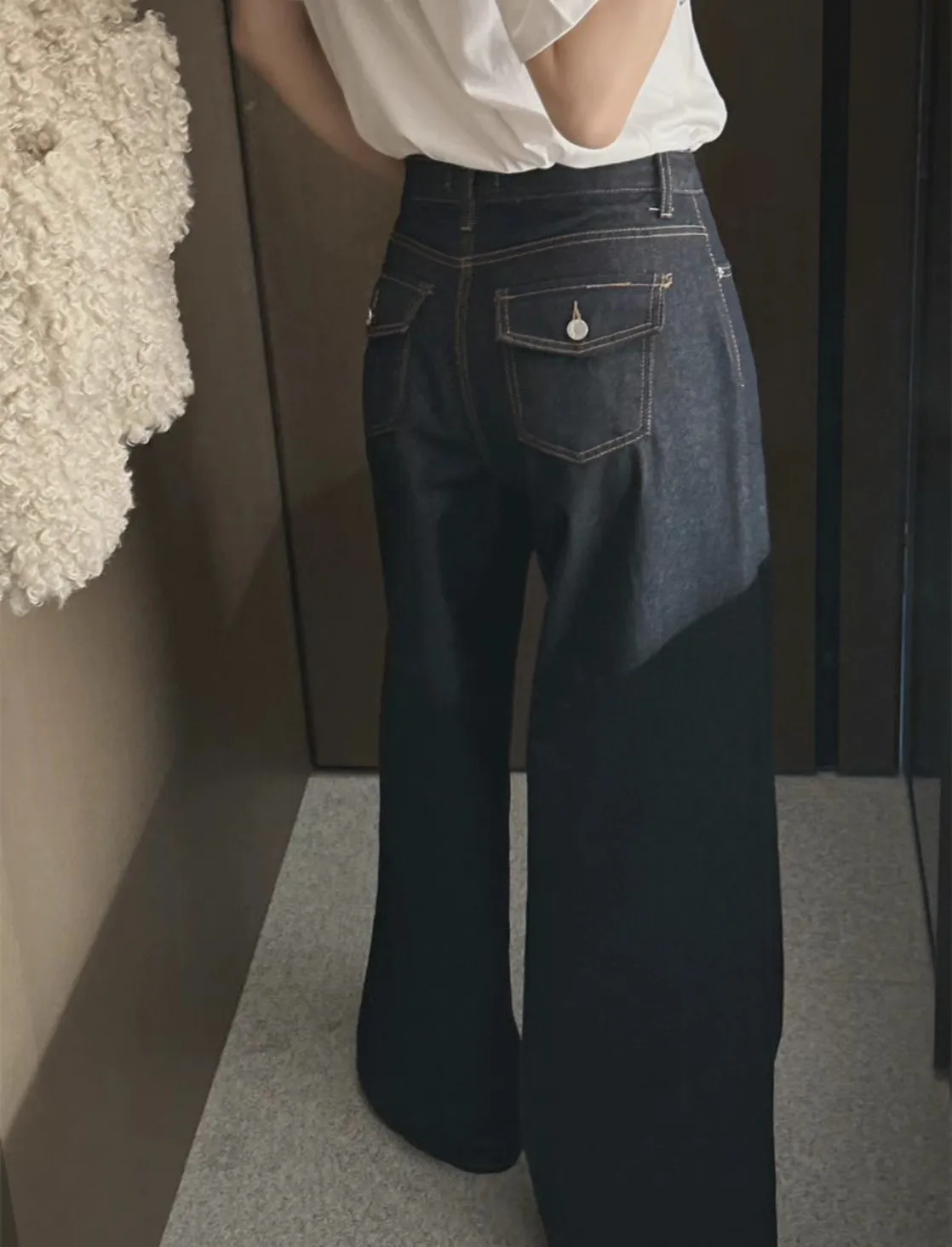 牛仔 釦鍊穿脫 有口袋 寬寬褲管
