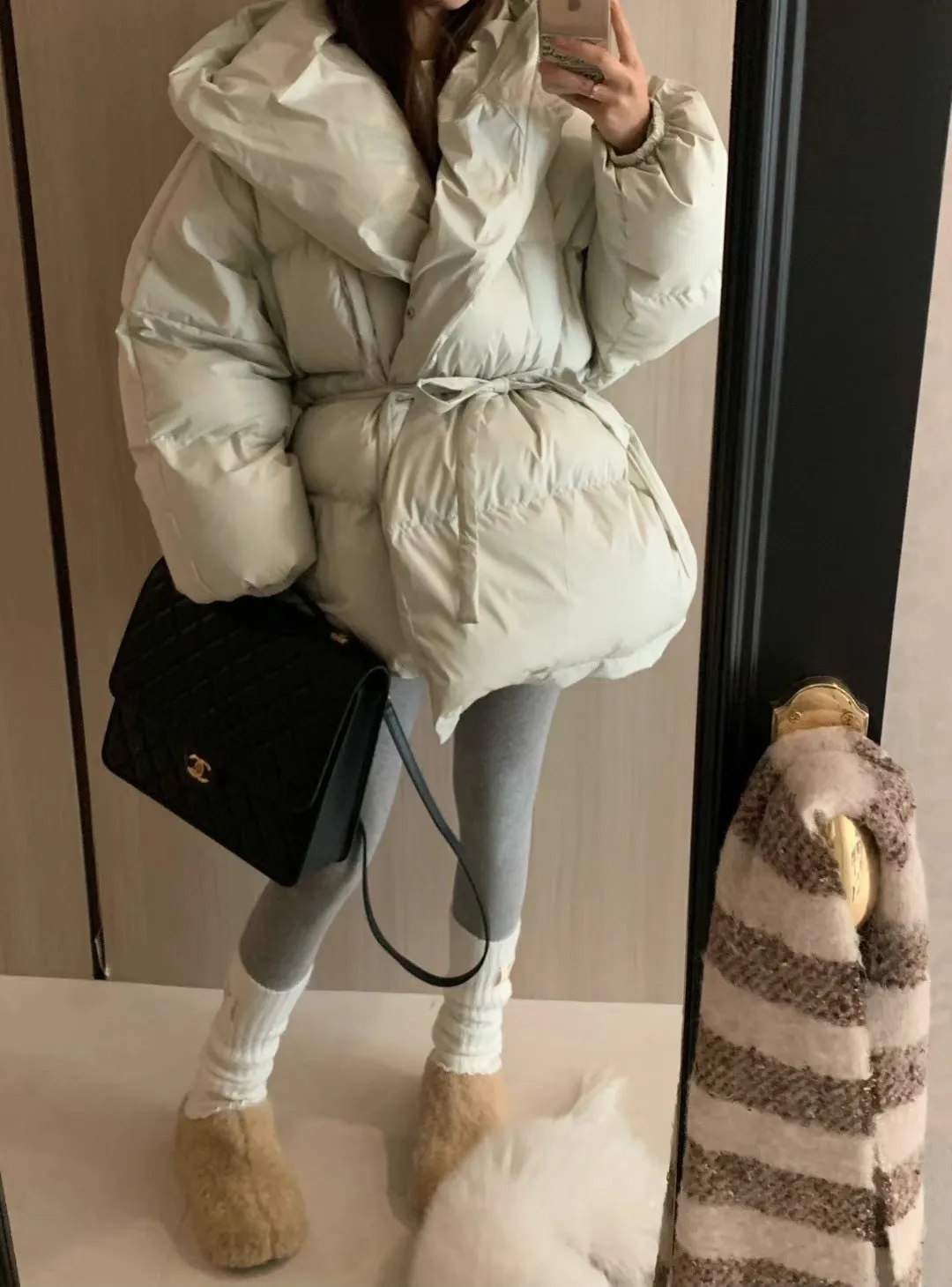 鴨絨100%,極度空氣包覆感 釦子穿脫 腰有綁帶 黑色斷貨