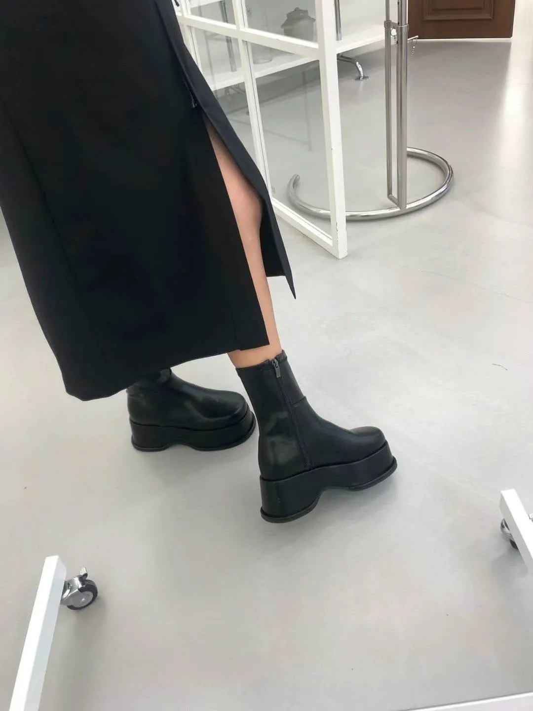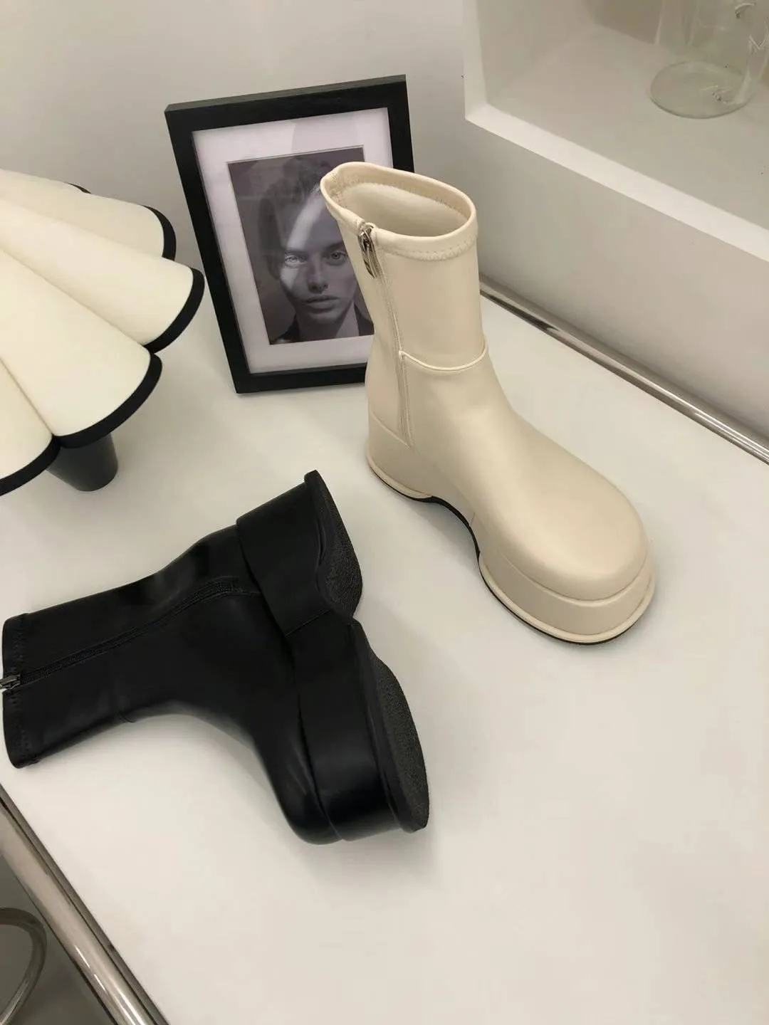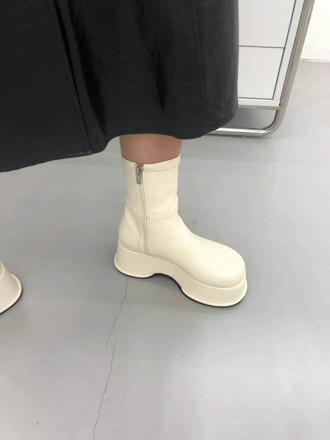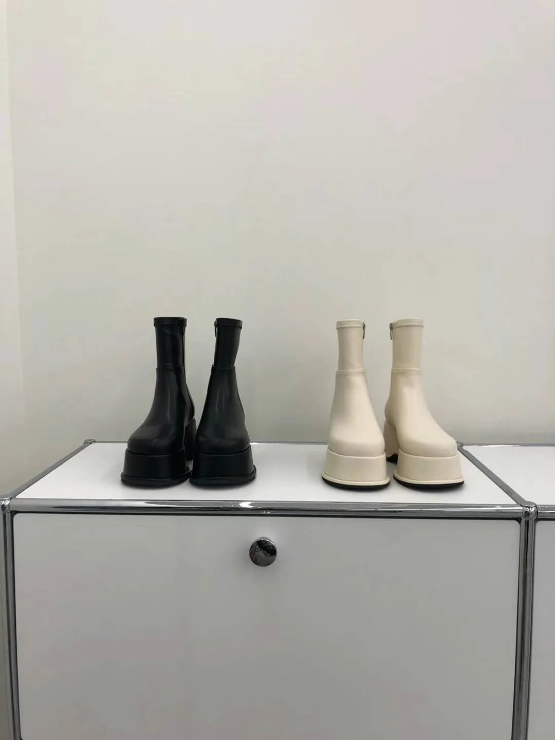 DC171經典細腿好比例厚底皮靴 白 黑 225-250(有半號) $1250