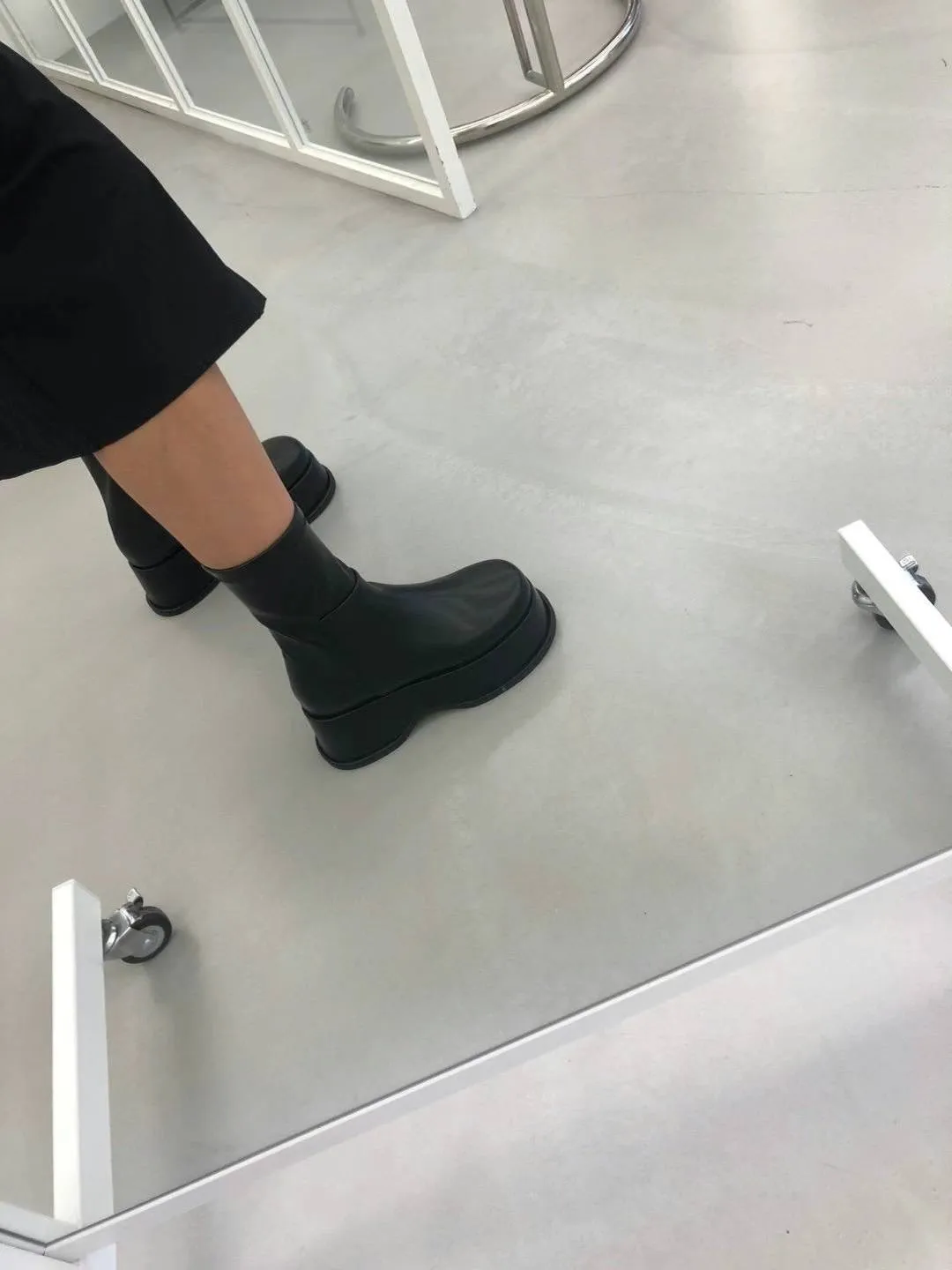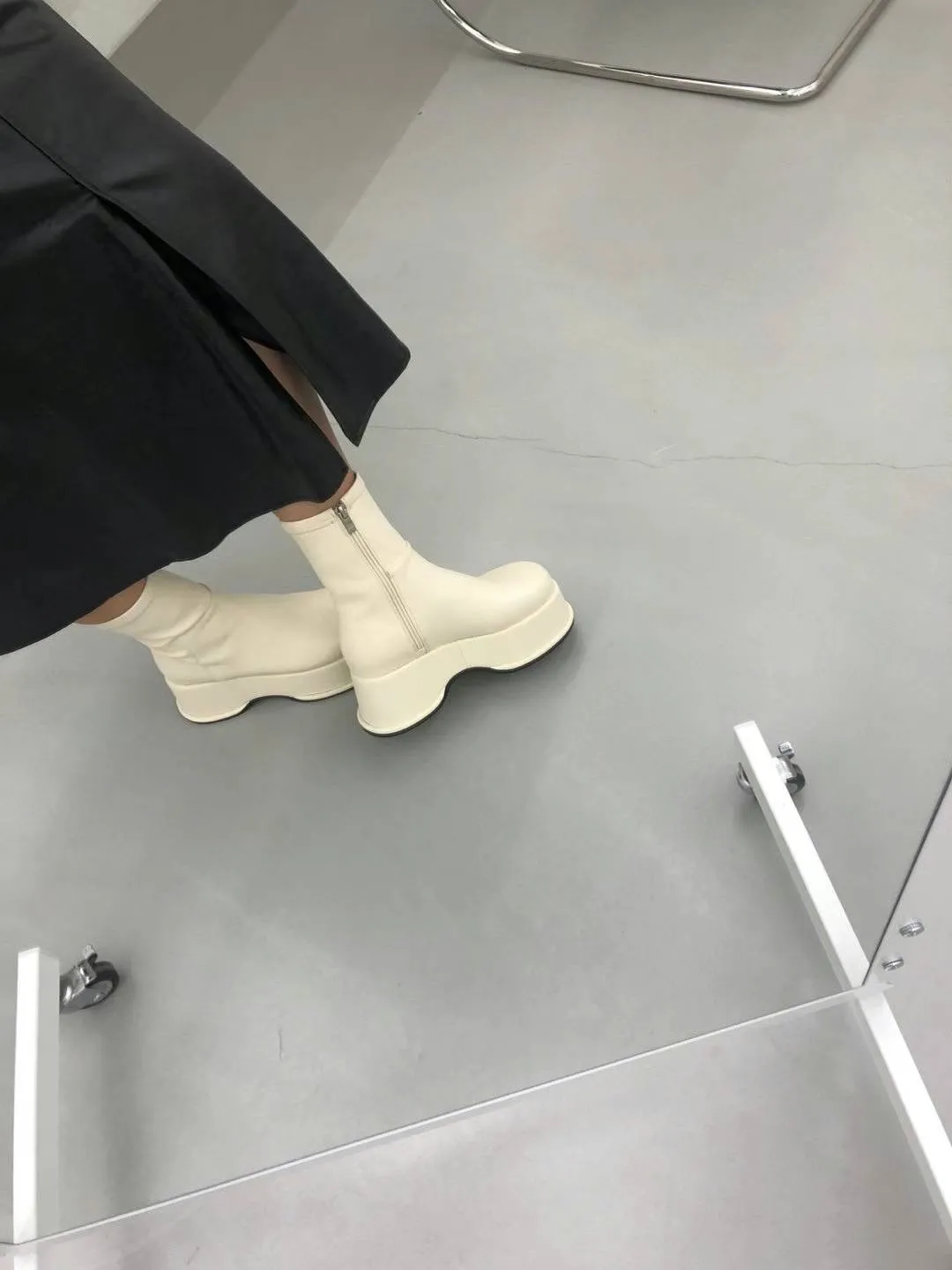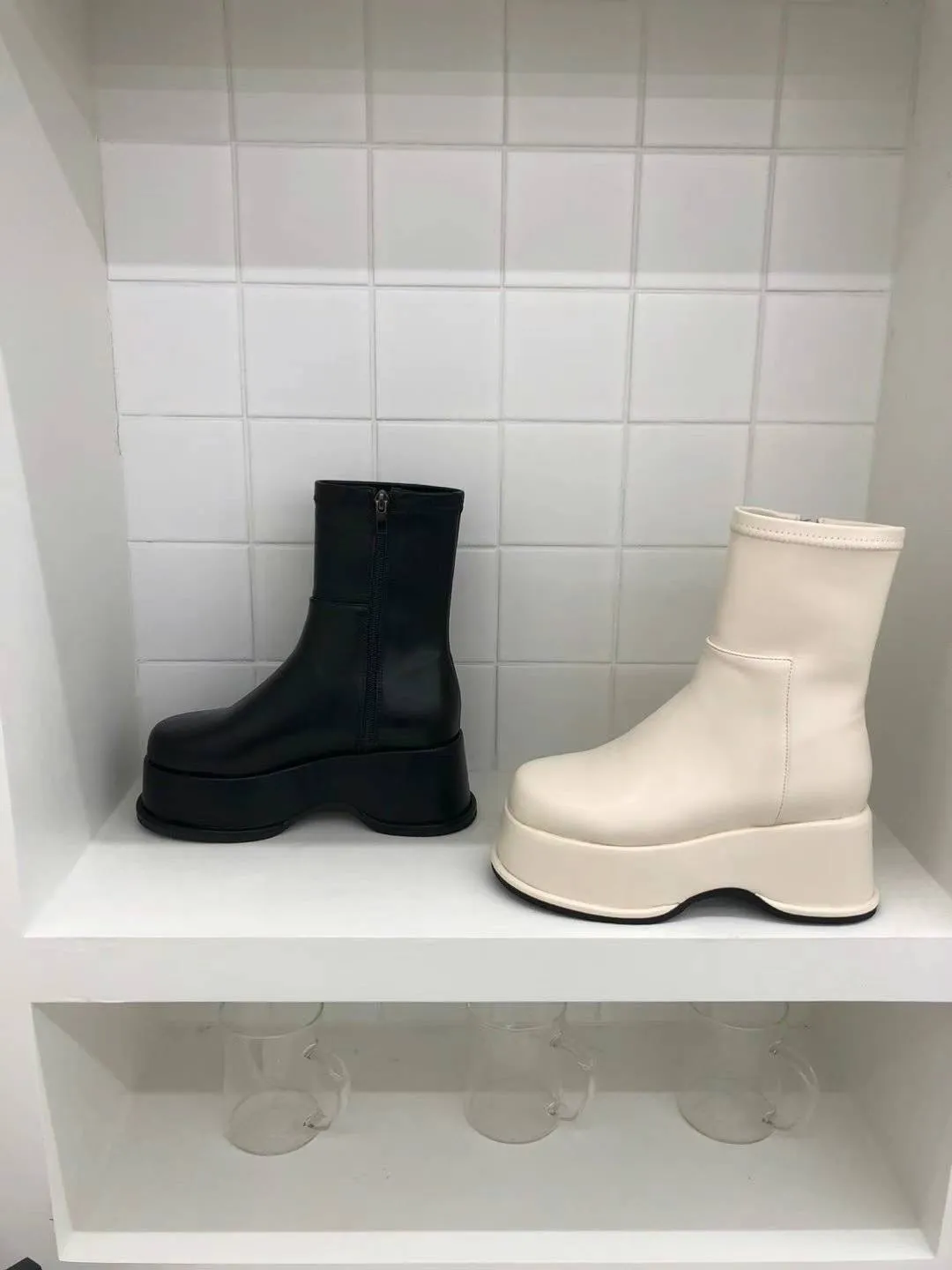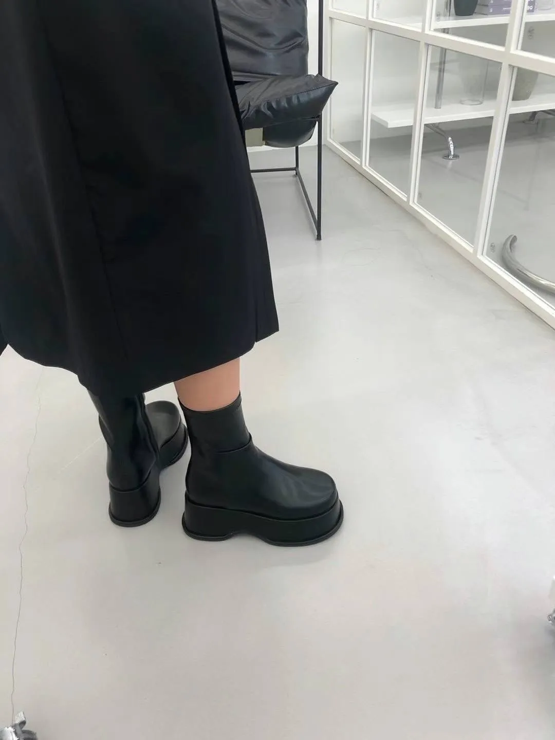 DC171經典細腿好比例厚底皮靴 白 黑 225-250(有半號) $1250