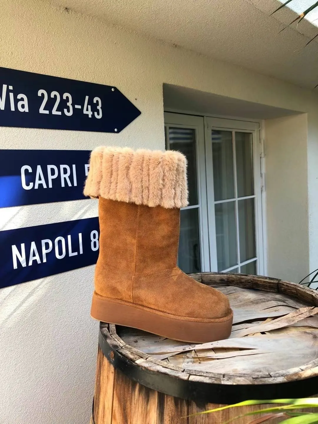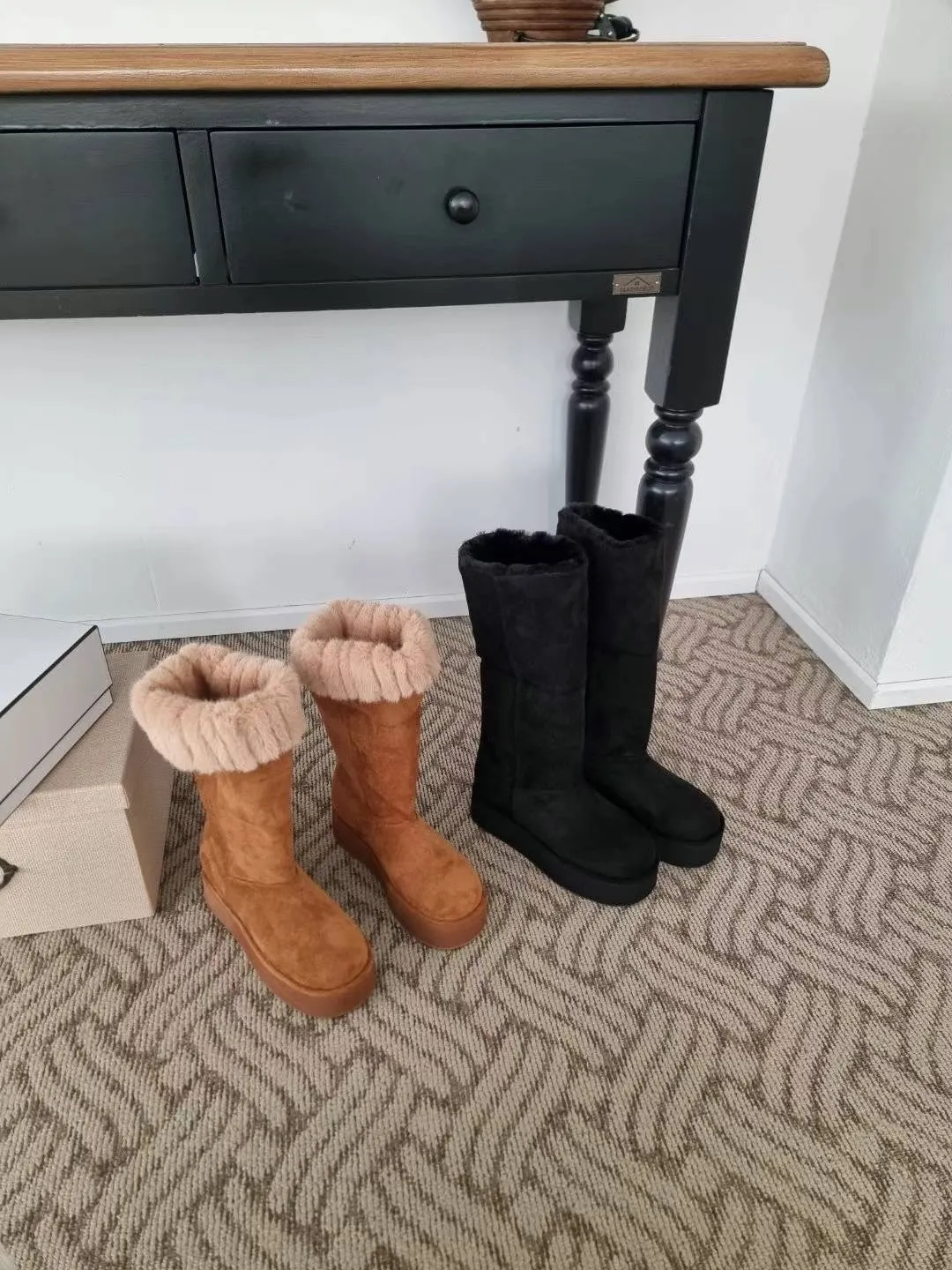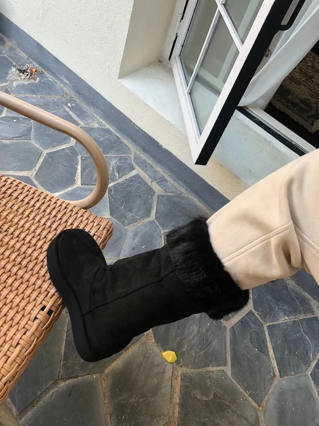 DC173推薦款可反摺條紋毛毛麂皮靴 黑 奶茶 230-250(有半號) $1420