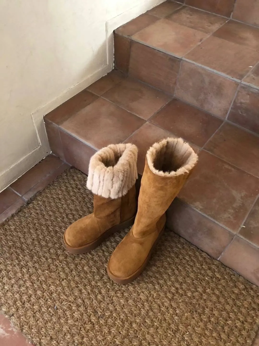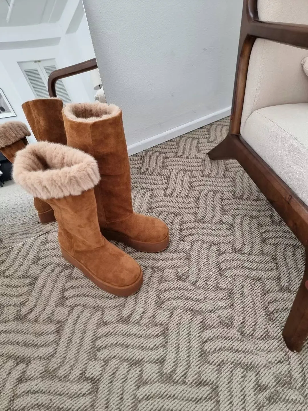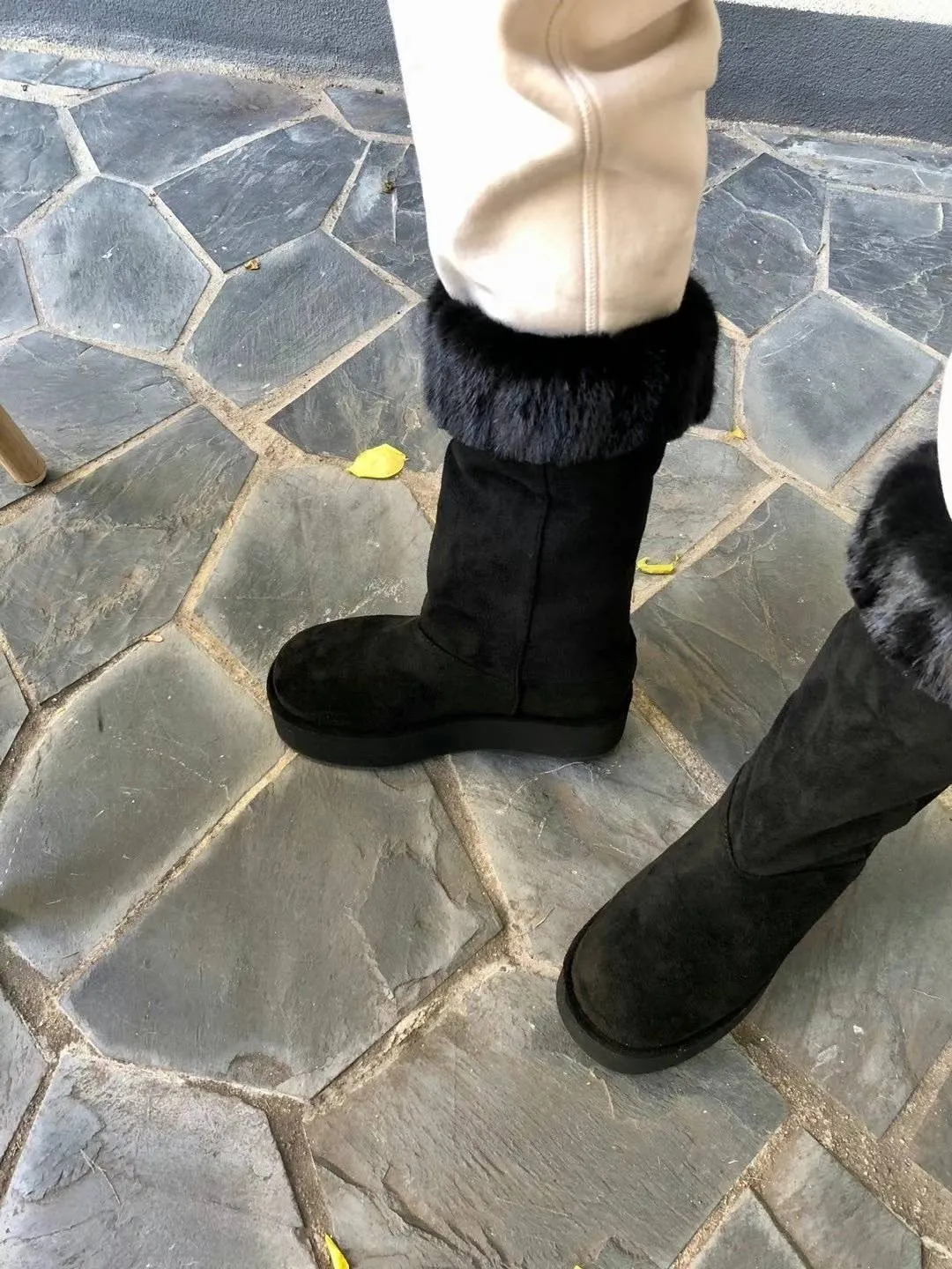 DC173推薦款可反摺條紋毛毛麂皮靴 黑 奶茶 230-250(有半號) $1420