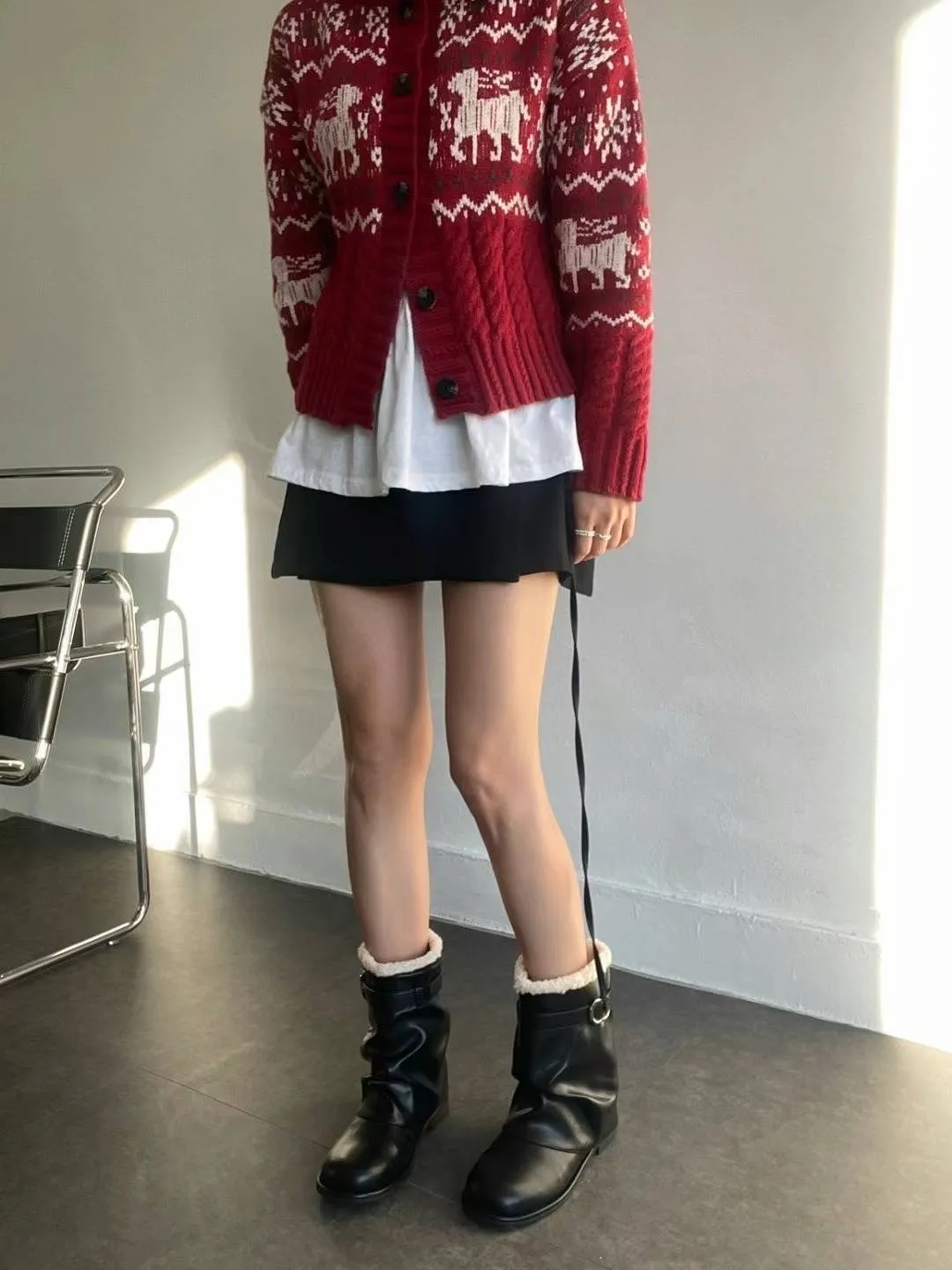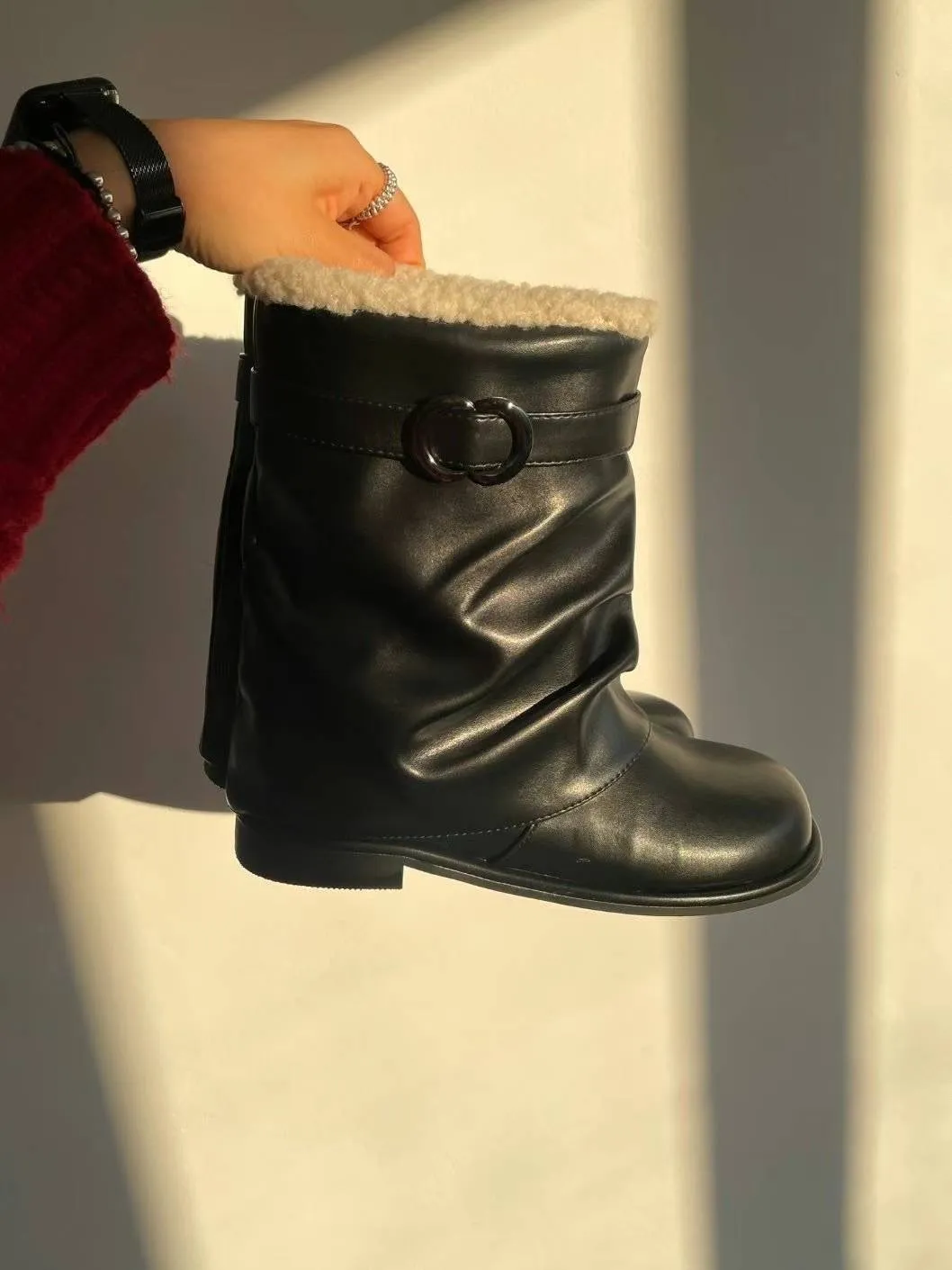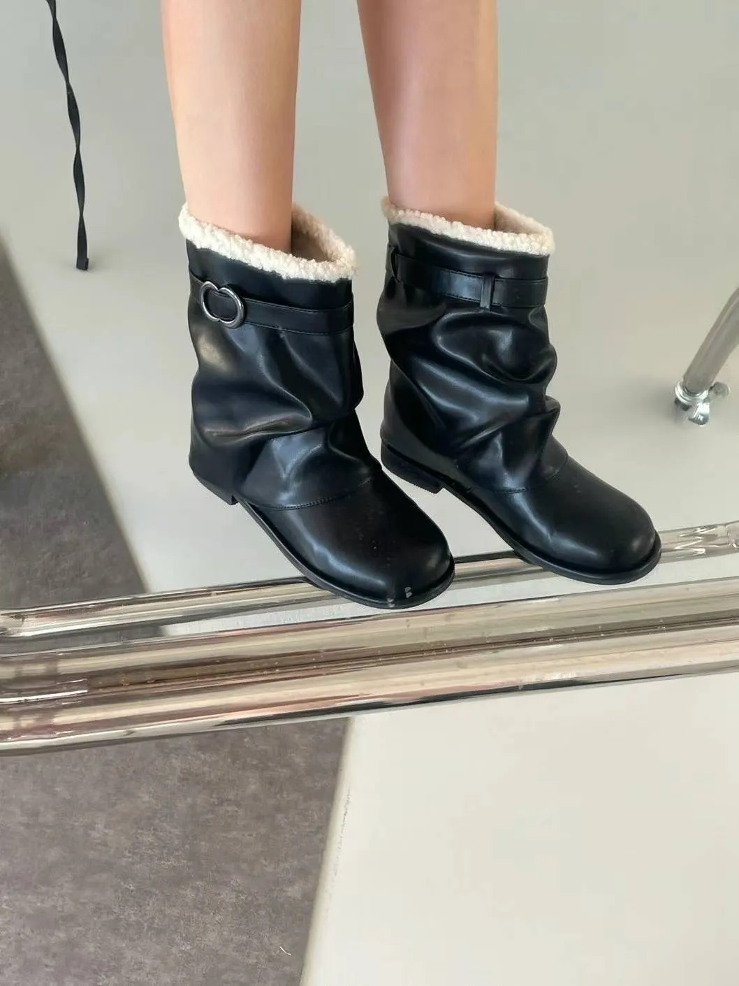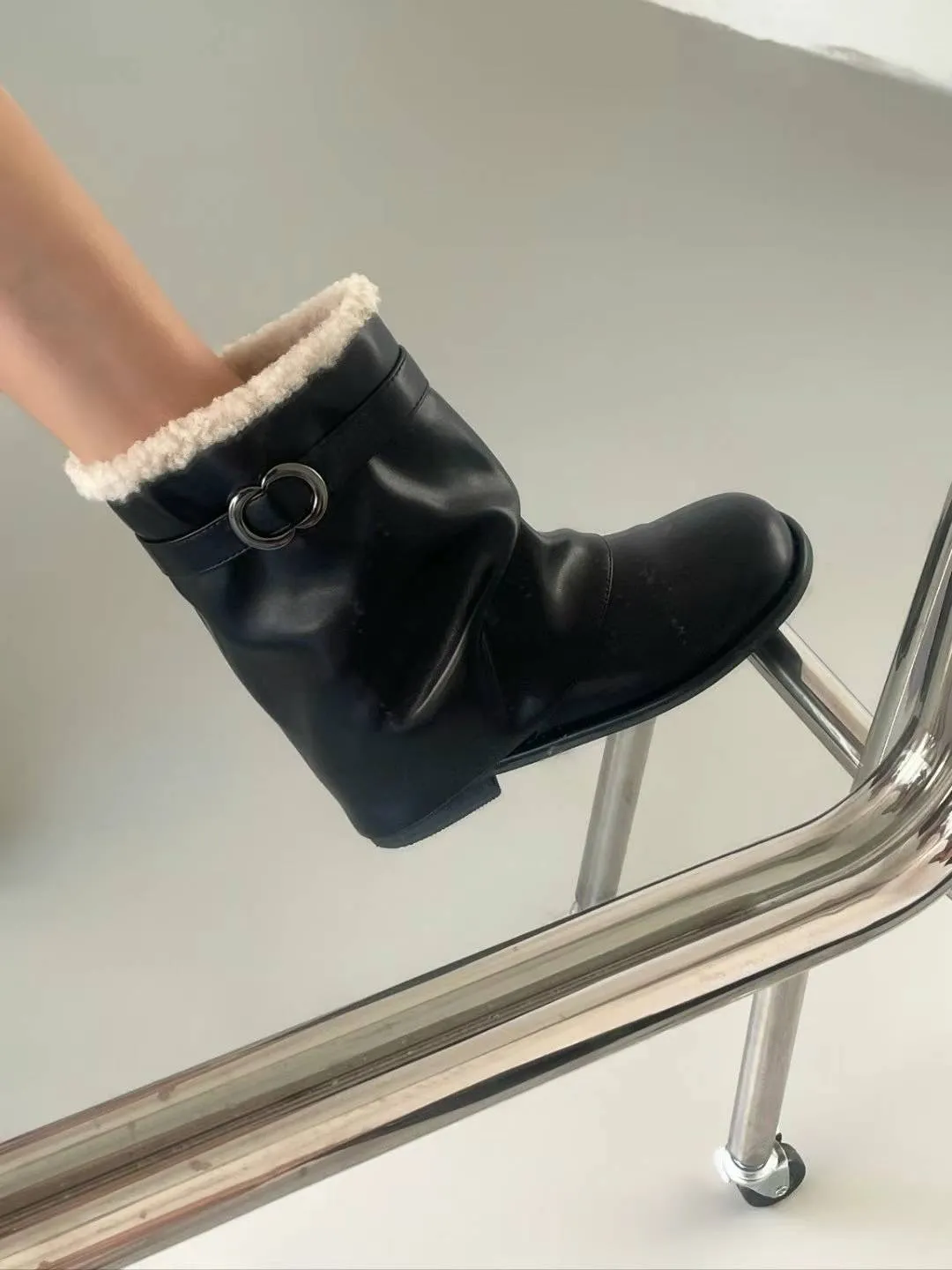 DC174側亮銀圈圈黑色皮革短靴 230-250(有半號) $1350