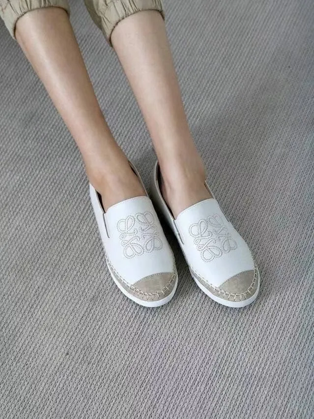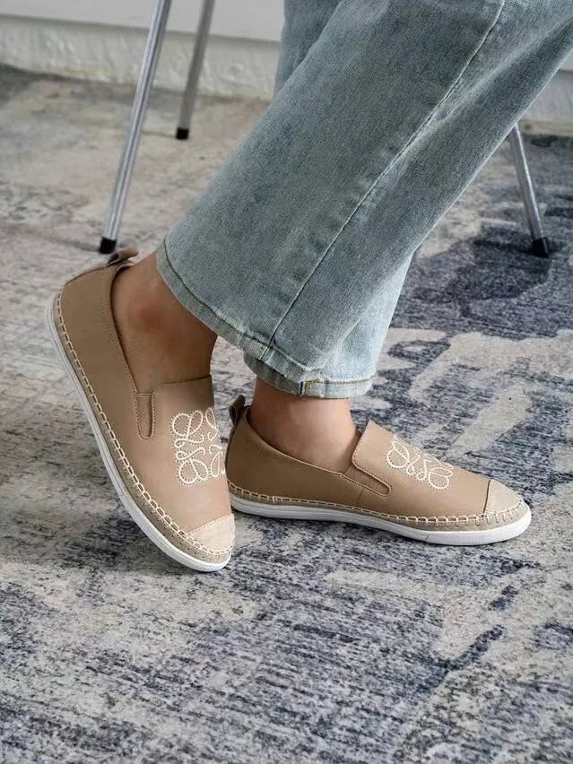 DC189牛皮刺繡圖騰懶人鞋 白 灰 黑 奶茶 230-250(有半號) $1040