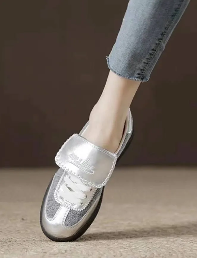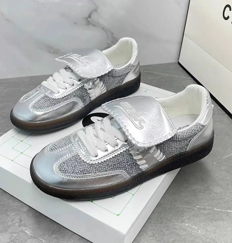 DC201翻蓋刺繡運動鞋 白 銀 225-250(有半號) $1190