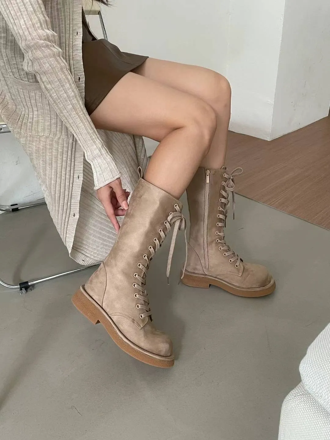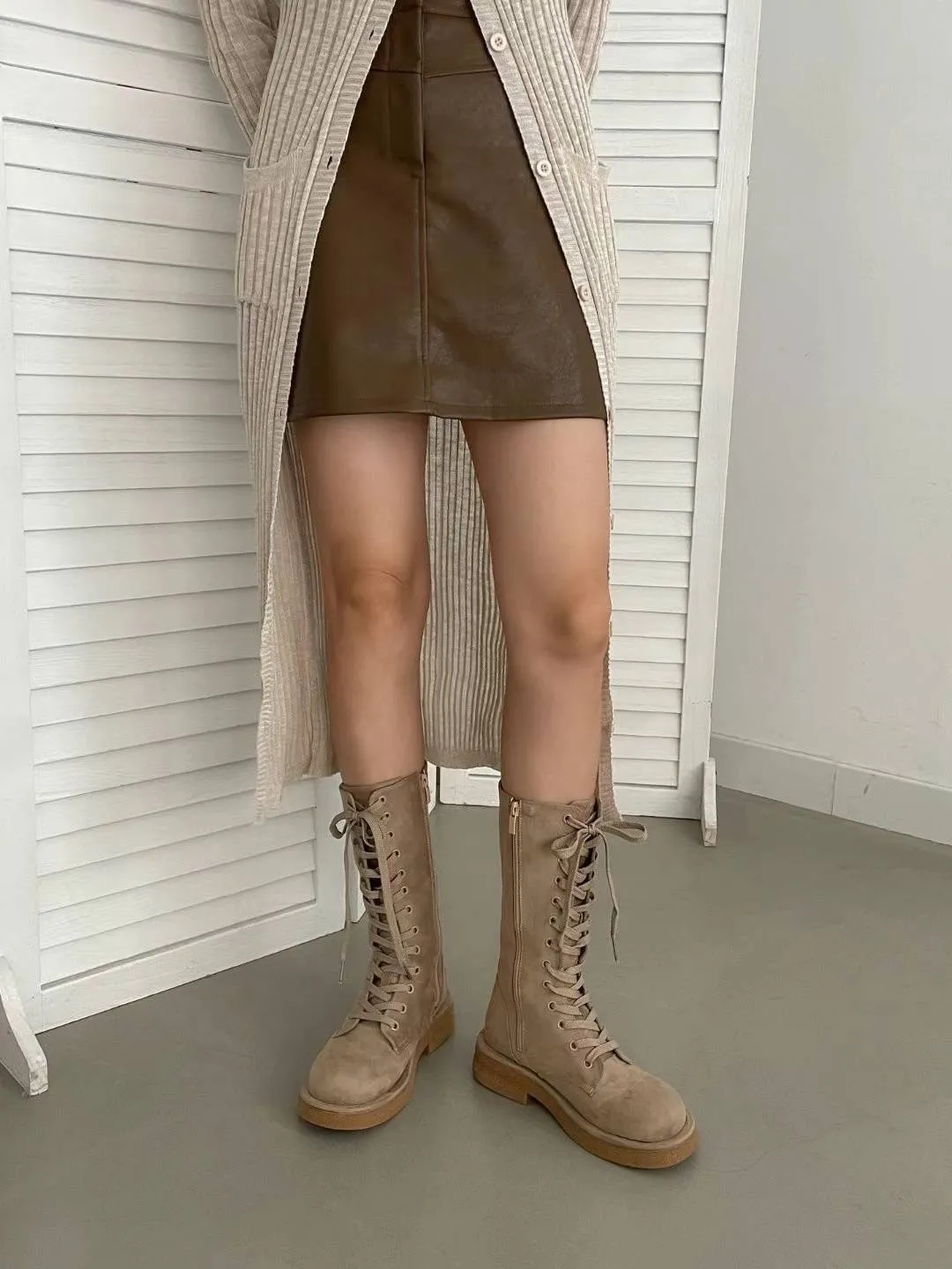 DC208綁帶大地色系靴子 225-250(有半號) $1280