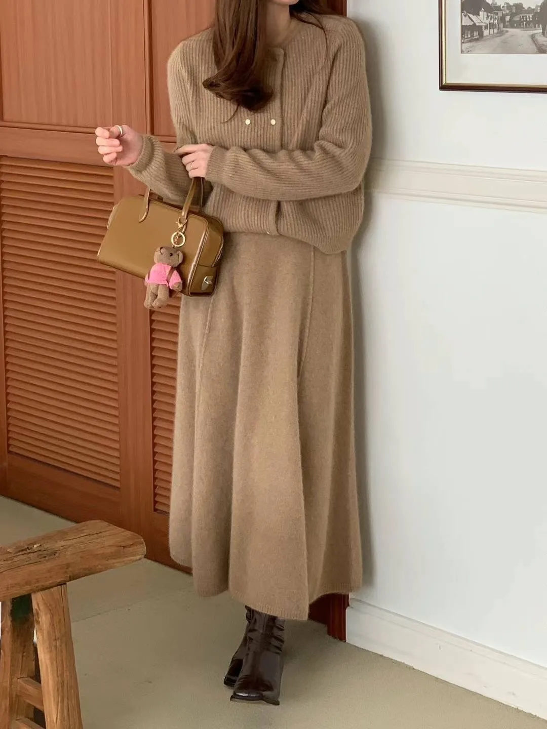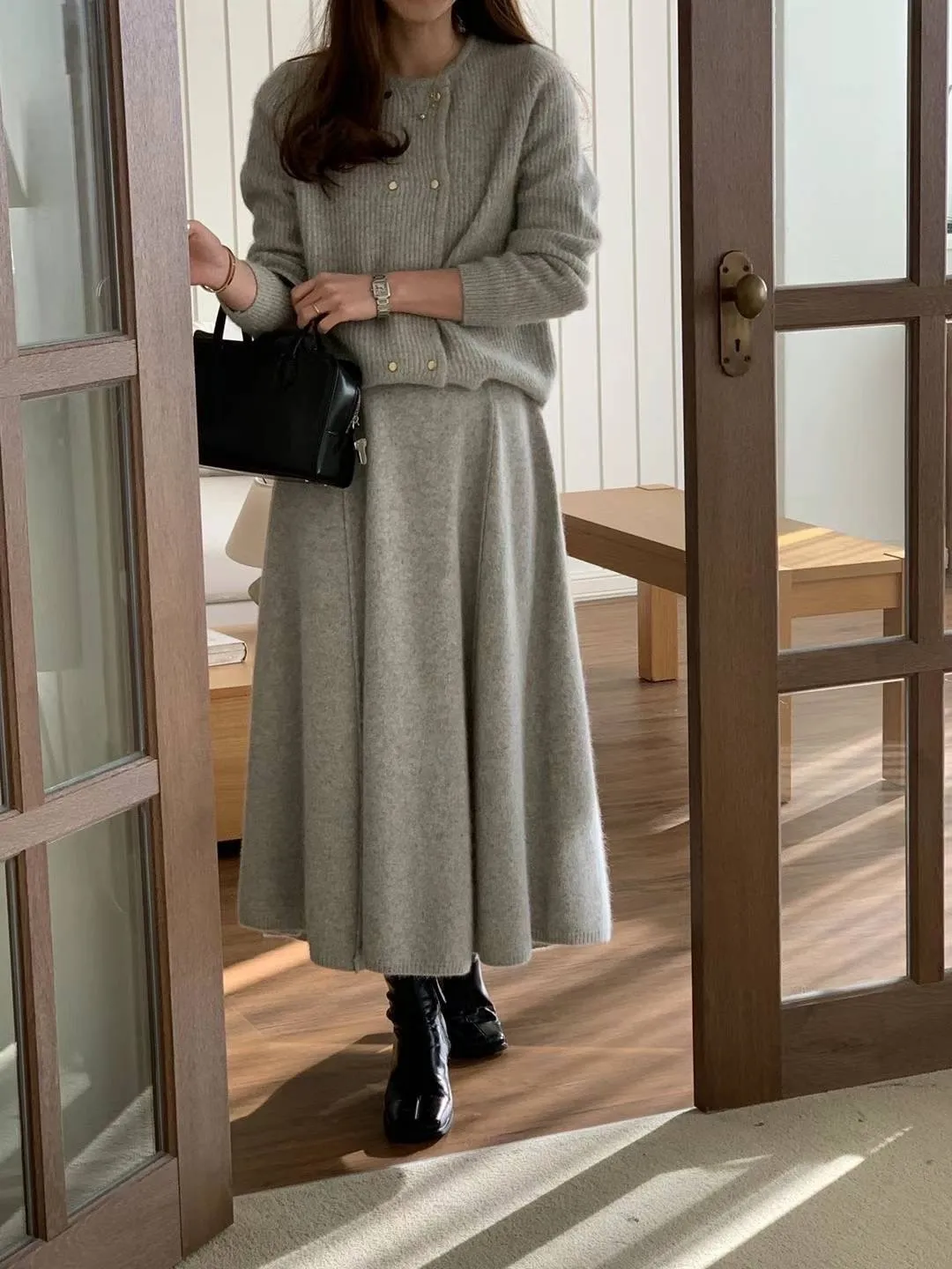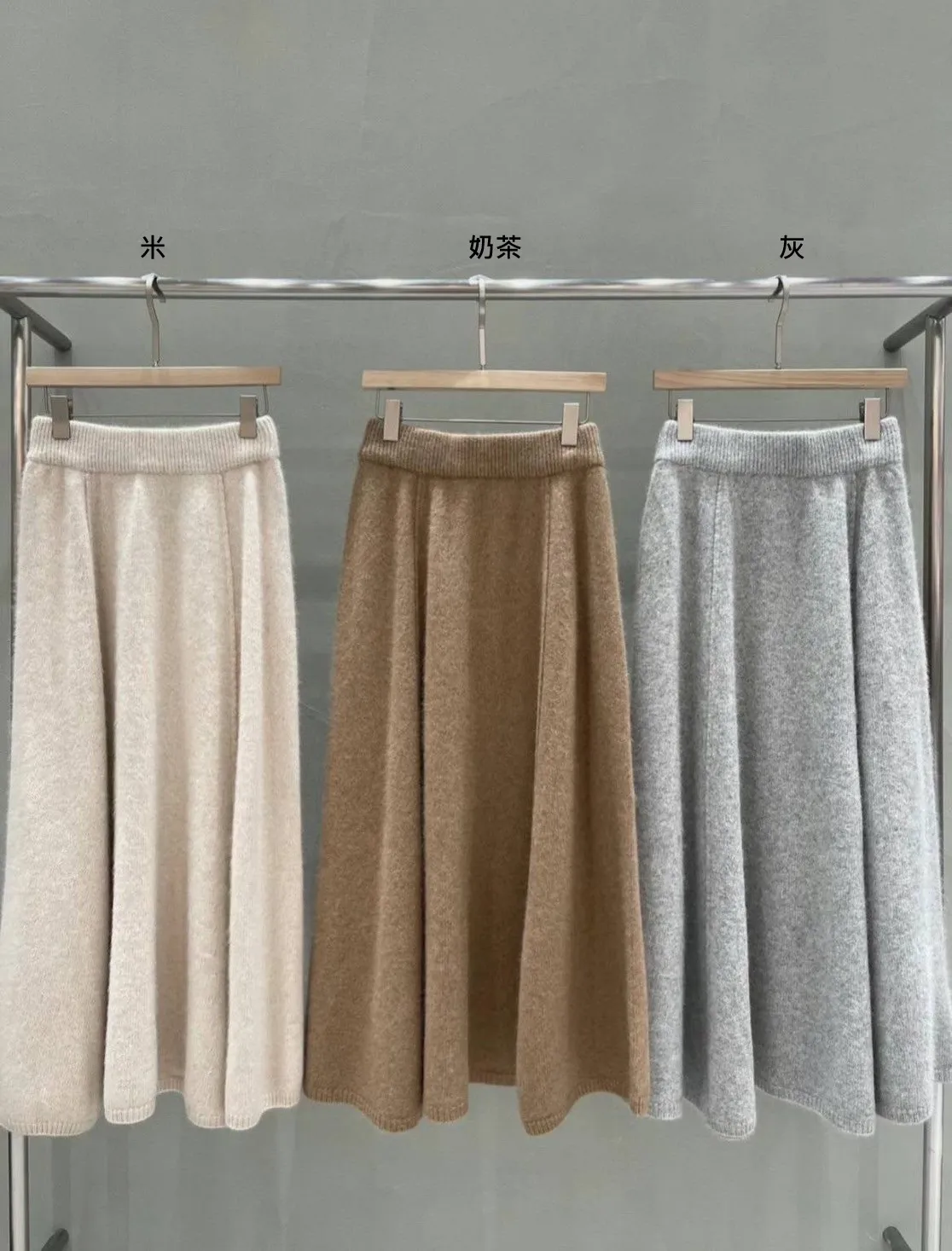 DC235氣質針織傘擺長裙 灰 米 奶茶 官網價$2120 線上價$2090
