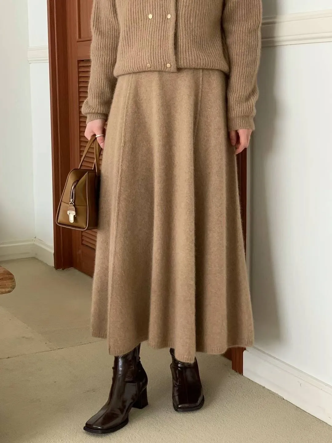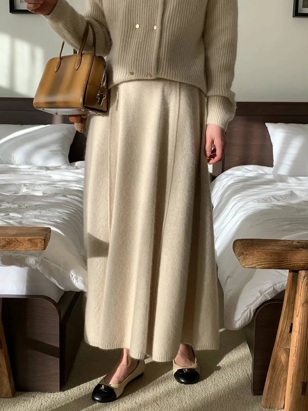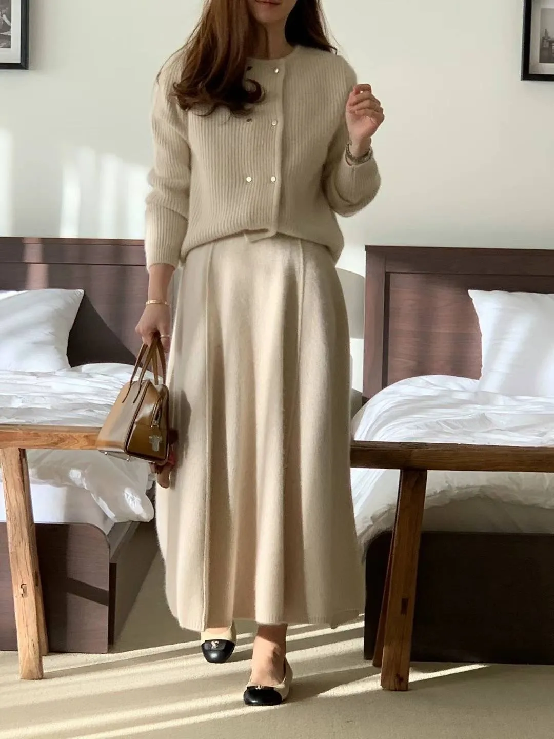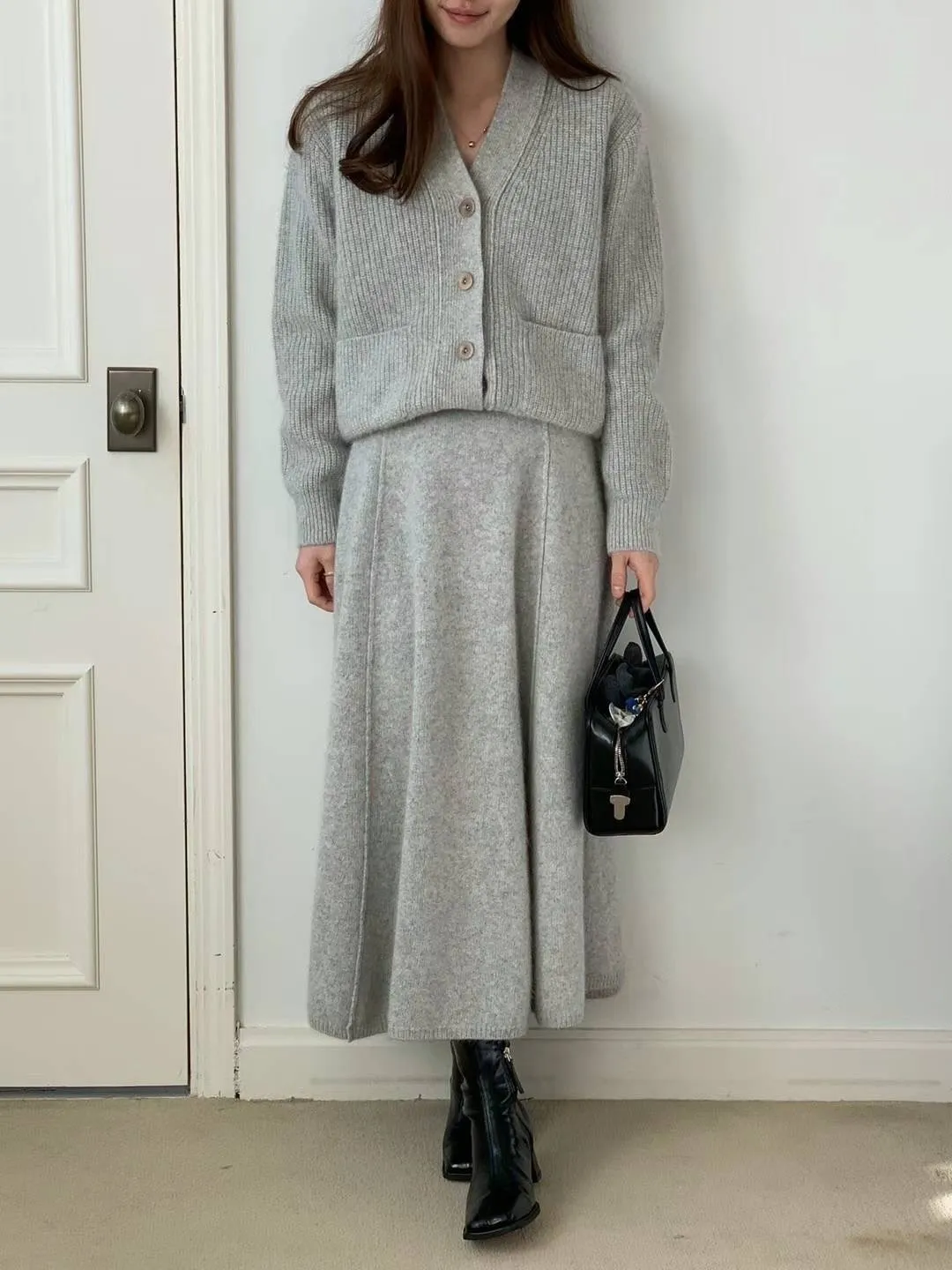 DC235氣質針織傘擺長裙 灰 米 奶茶 官網價$2120 線上價$2090