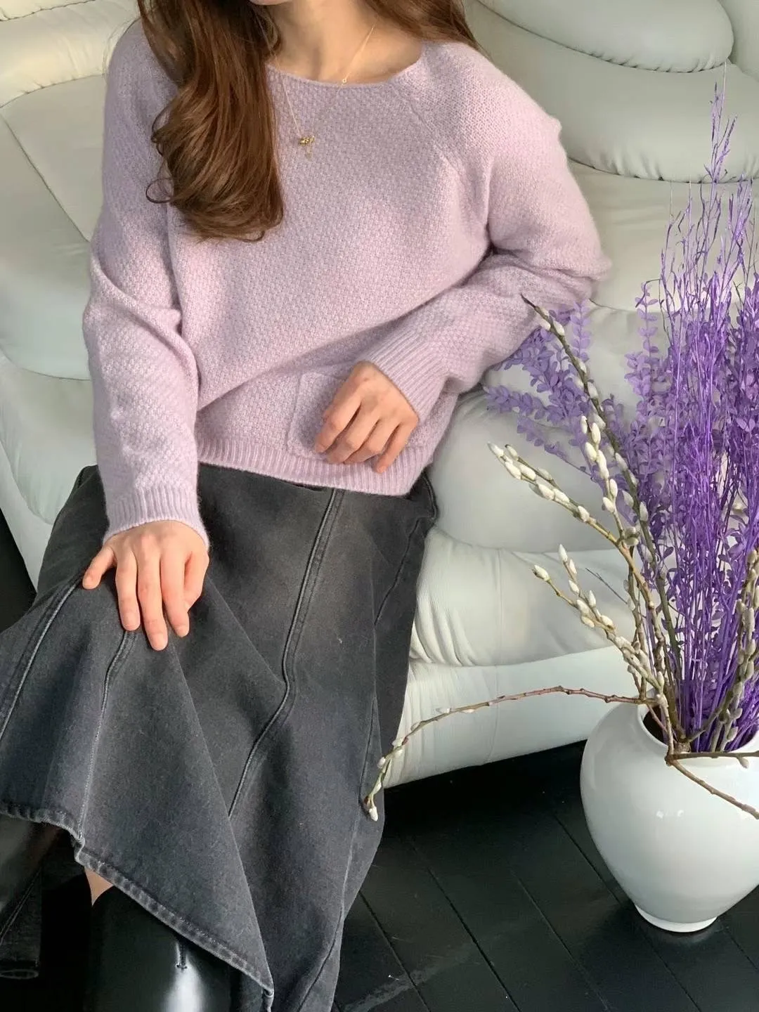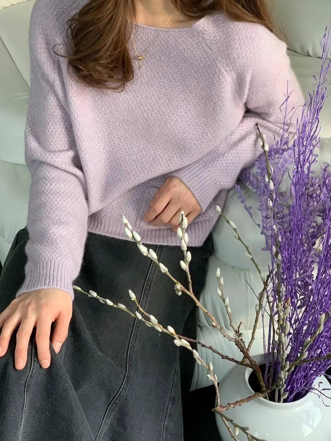 浣熊毛+羊毛+尼龍 緊密蜂巢針織 短版落肩版型 宋宋推紫