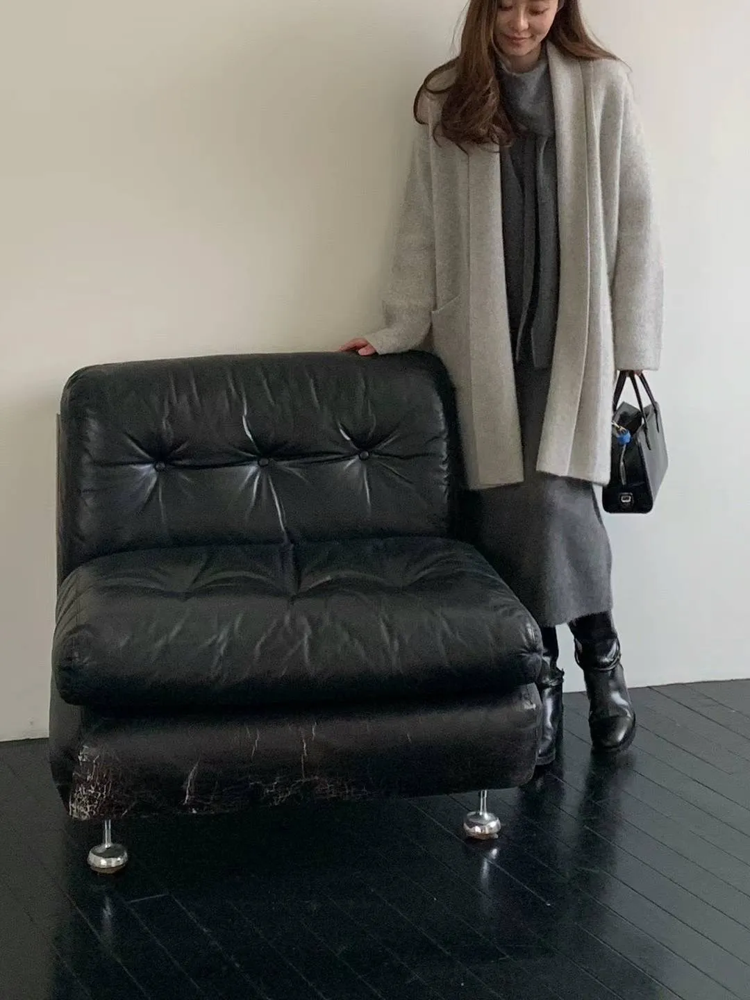 浣熊毛+狐狸毛+羊毛+壓克力 袖口反摺撞色設計 落肩版 密針織 有份量感