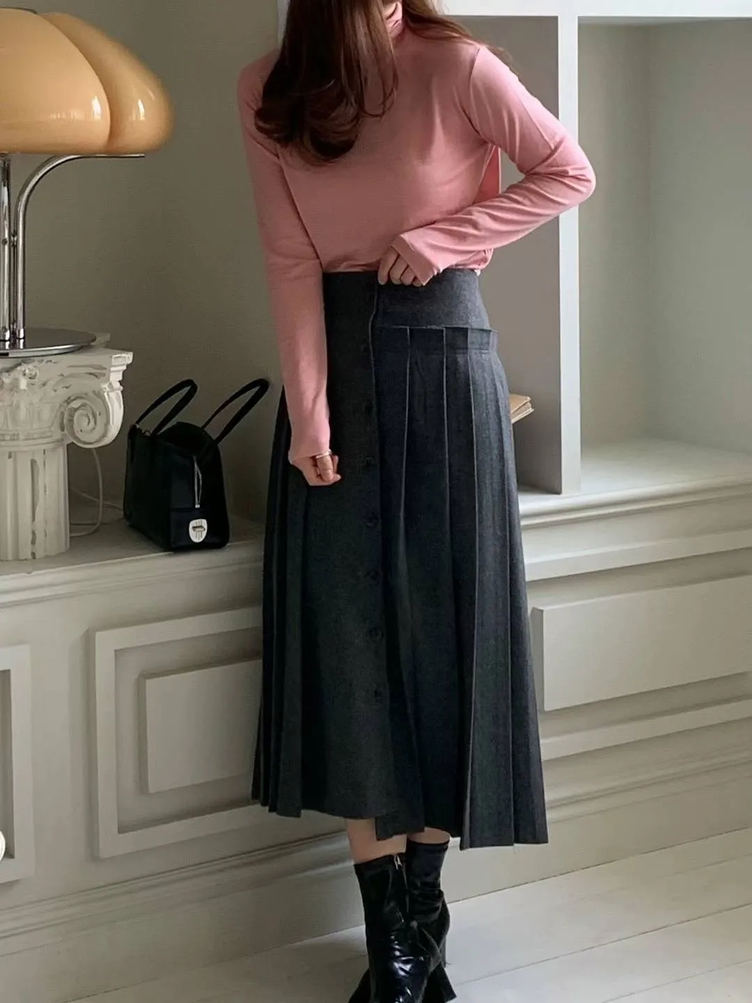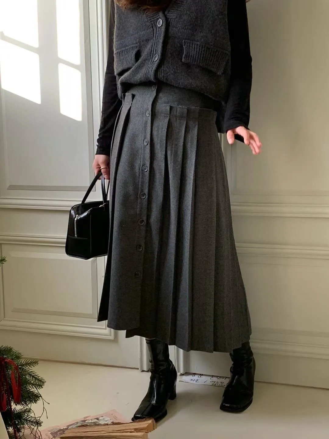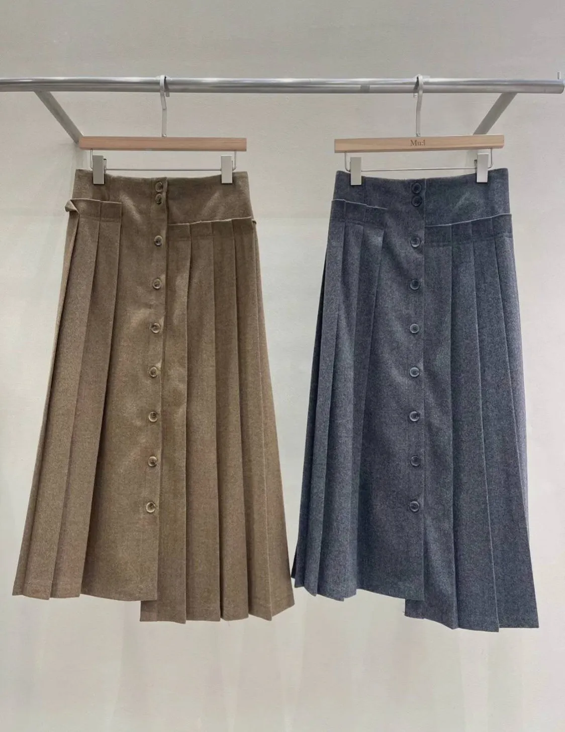 DC251設計感百褶羊毛長裙 咖 灰 S M L 官網價$1890 線上價$1860