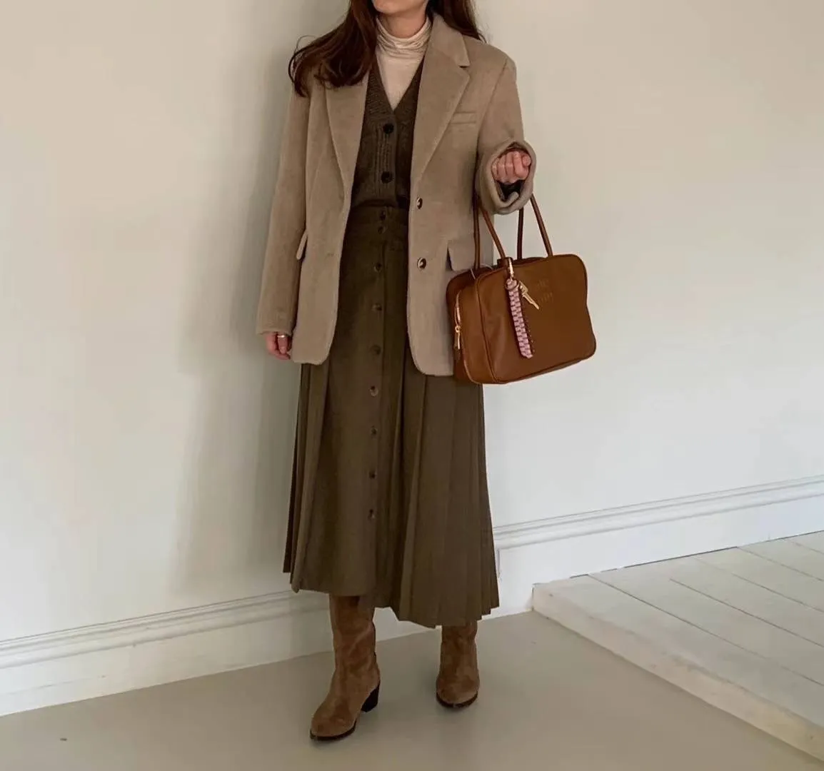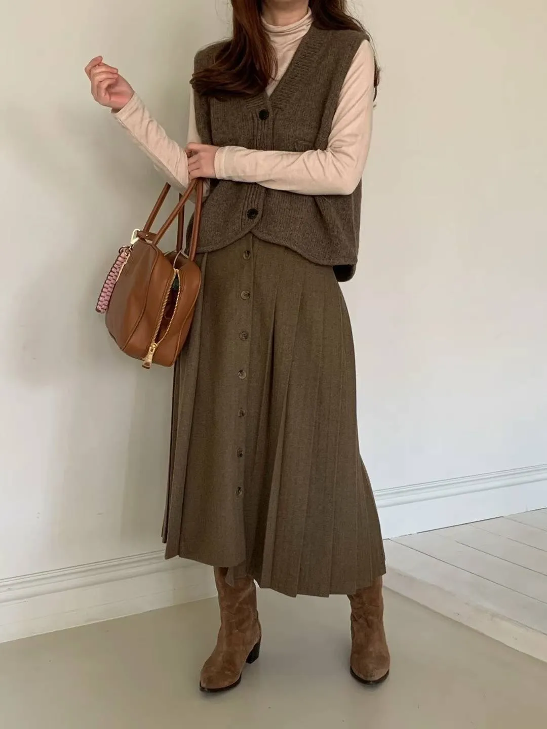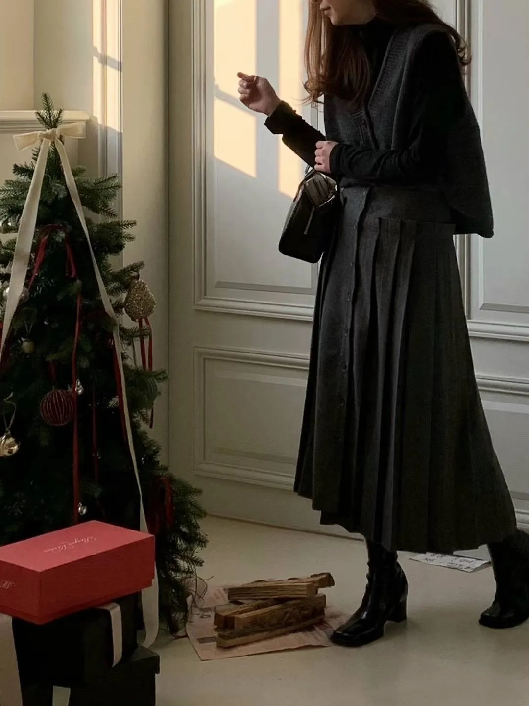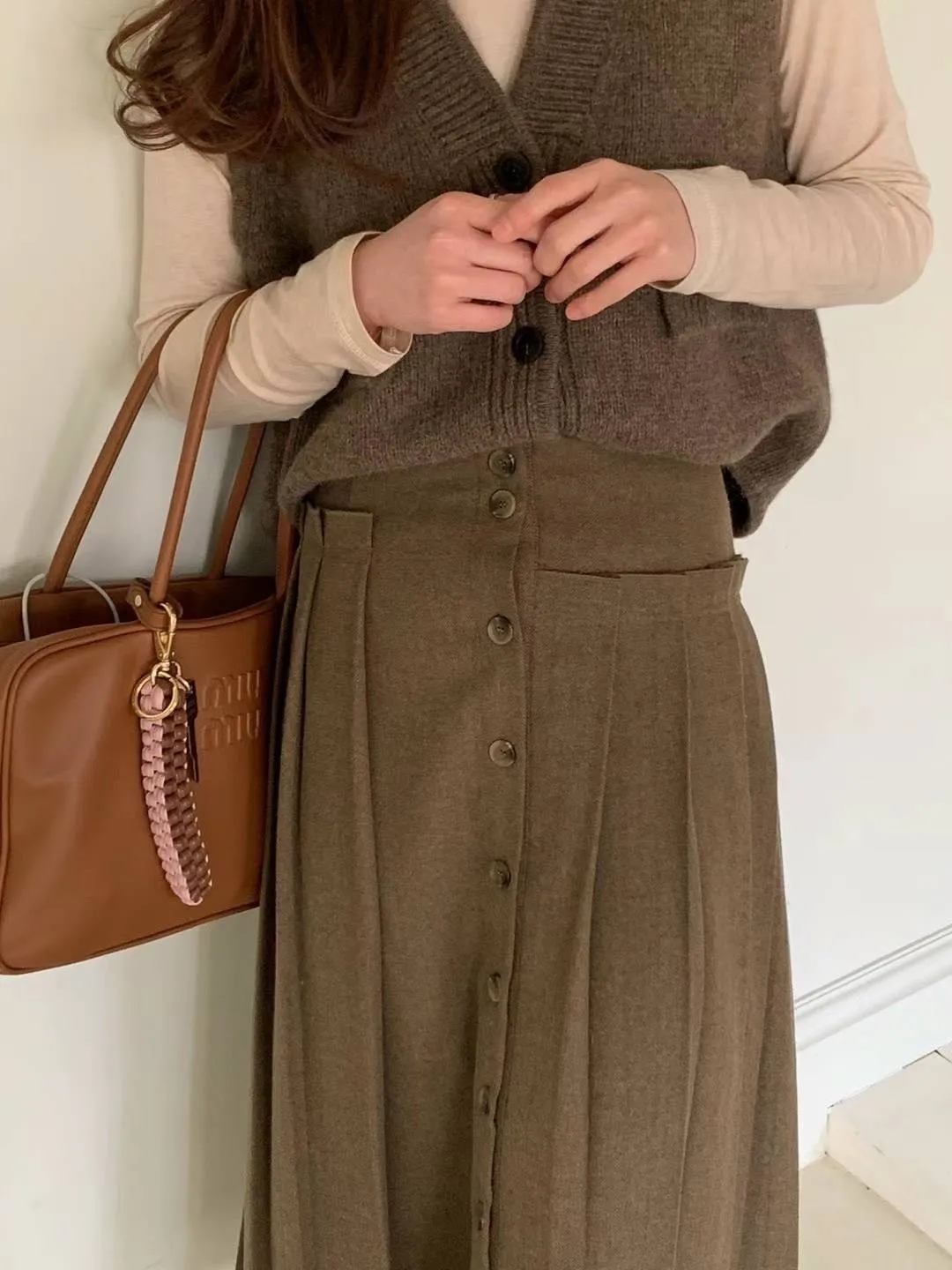DC251設計感百褶羊毛長裙 咖 灰 S M L 官網價$1890 線上價$1860
