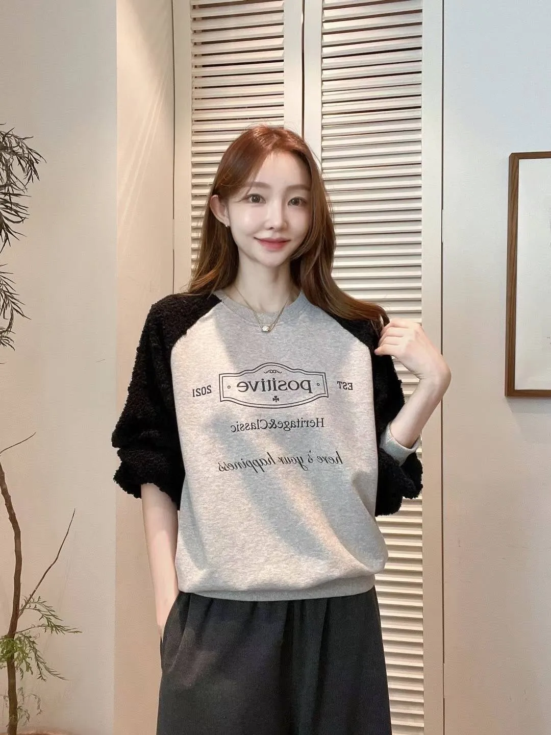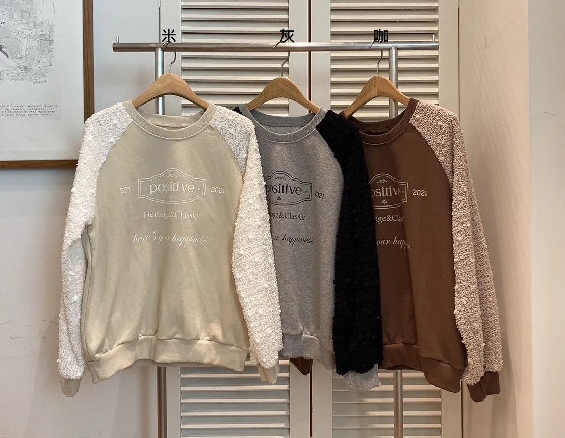 聚酯+彈力,立體面料拼接美袖 手袖下擺鬆緊 灰色高級感 米色溫柔