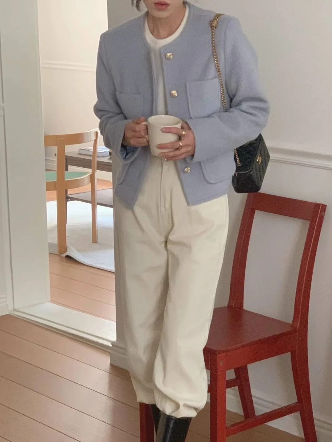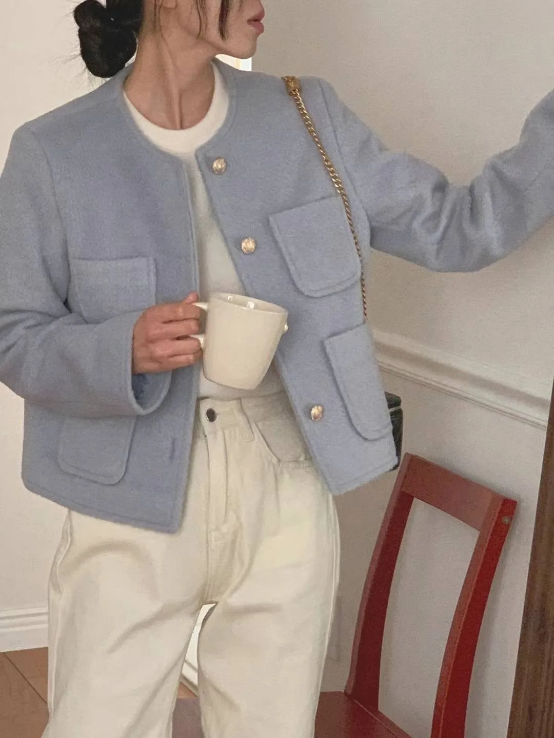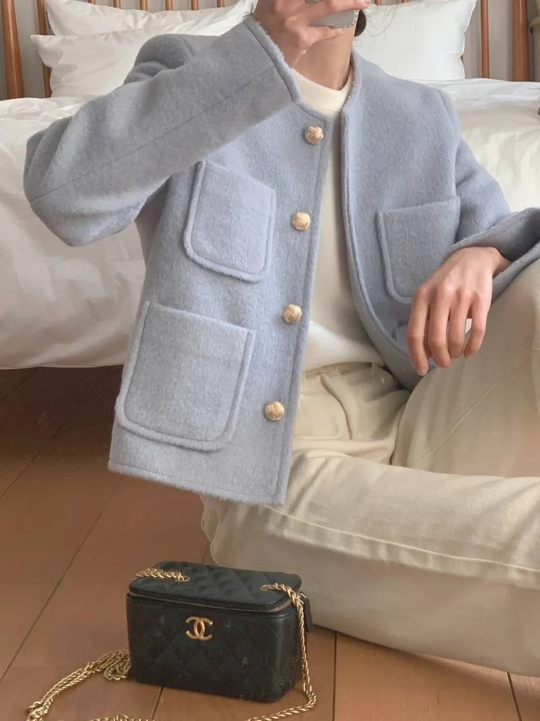 羊毛60% 薄款輕盈不重 觸感滑順適合台灣天氣 有墊肩