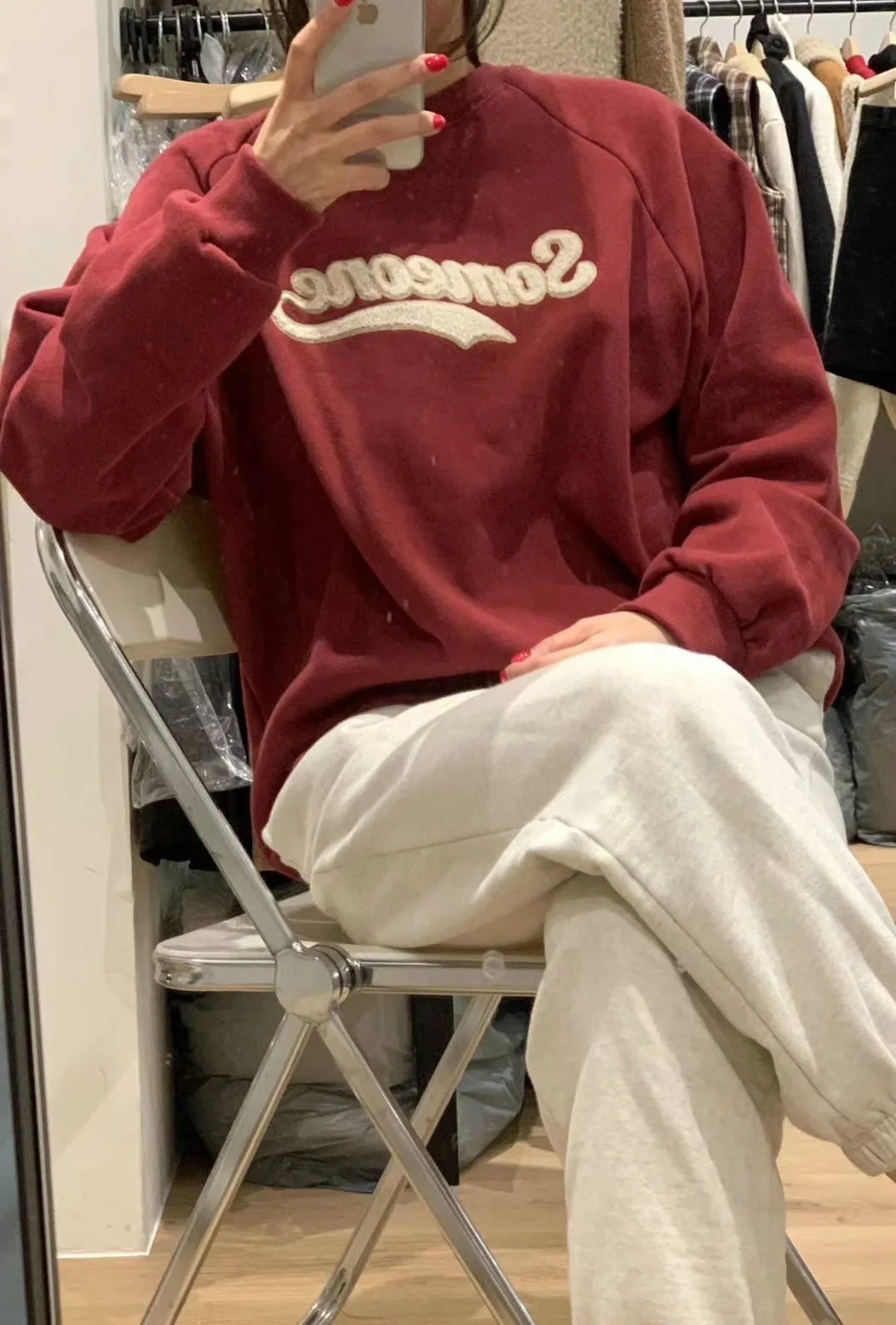 DC363立體英文Someone大學T 紅 燕麥 深藍 淺灰 官網價$1190 線上價$1160棉 內襯磨毛 外層細細毛絨感 立體QQ毛英文 肩寬45胸寬67臂寬27袖長58袖口10全長68以下深藍色穿搭👇 以下紅色穿搭👇 以下淺灰色穿搭👇 以下燕麥色穿搭👇 以下顏色,淺灰>燕麥 以下顏色,紅>深藍