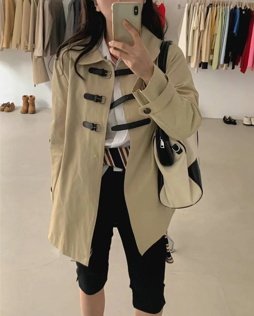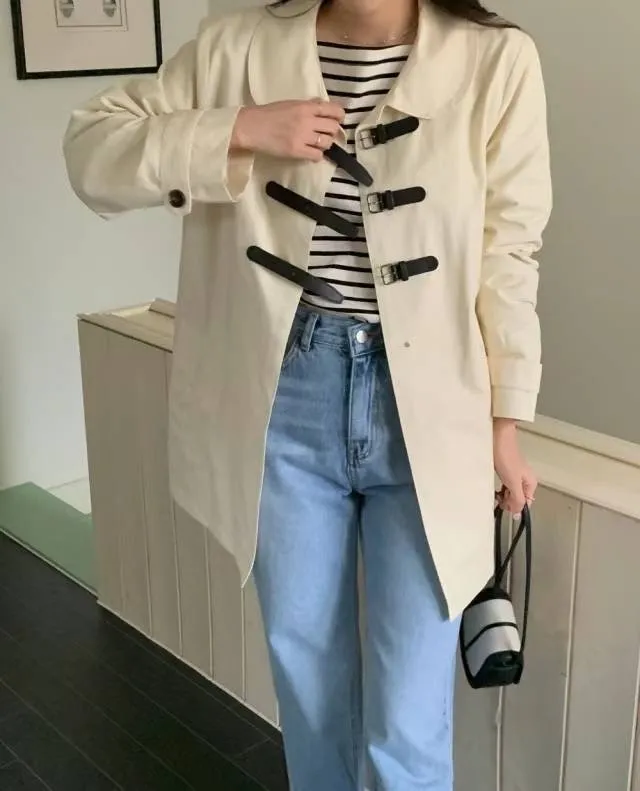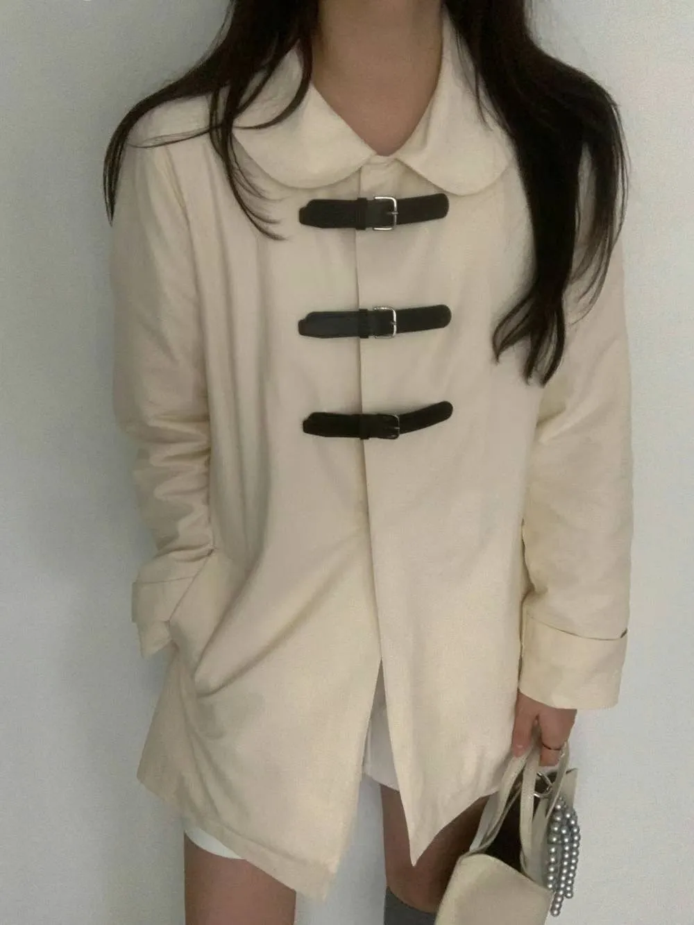 DC379特價皮帶設計款外套 米 奶茶 特價$1850