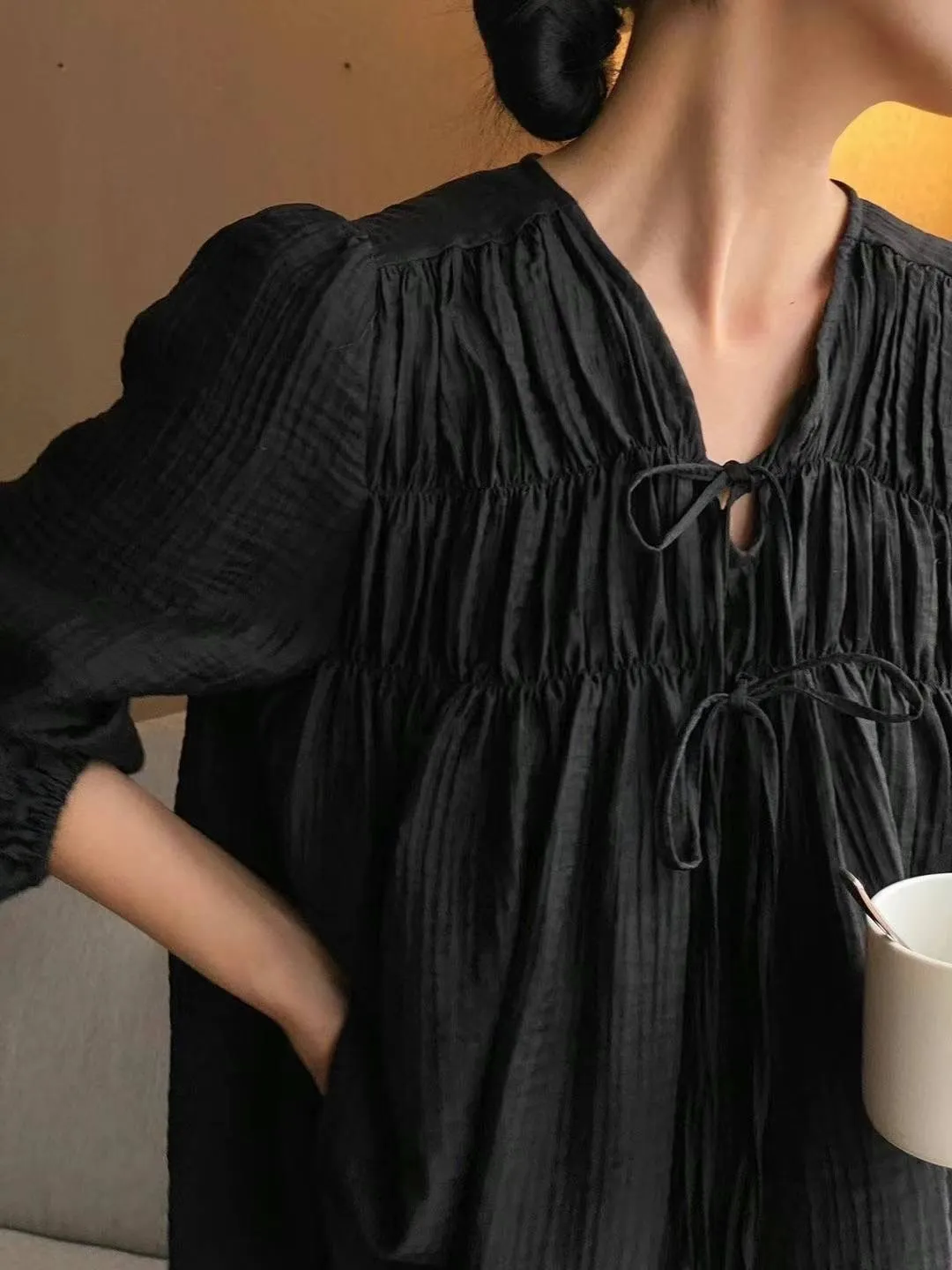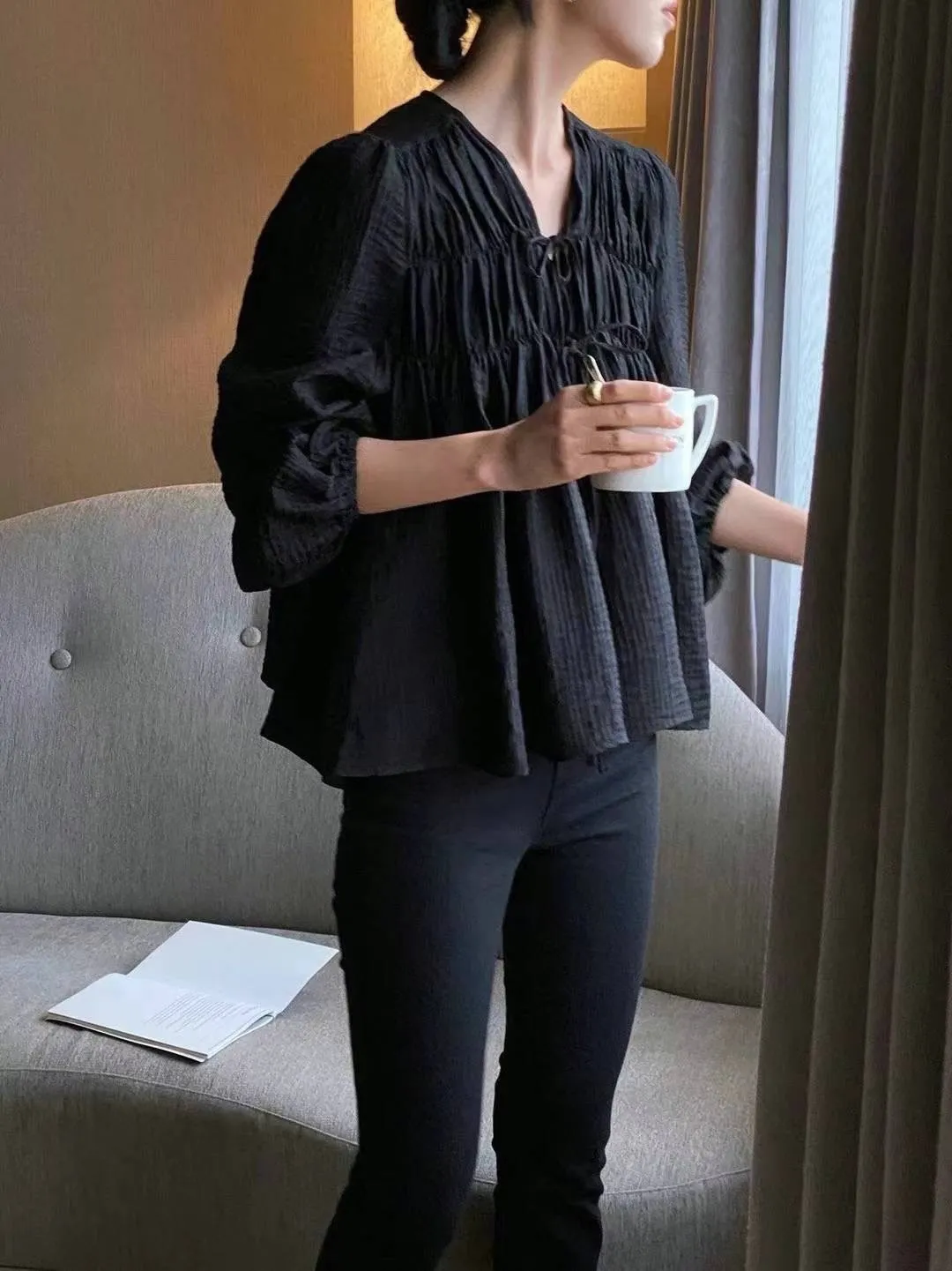 DC387特價胸抓皺綁帶黑色小洋裝上衣 特價$960