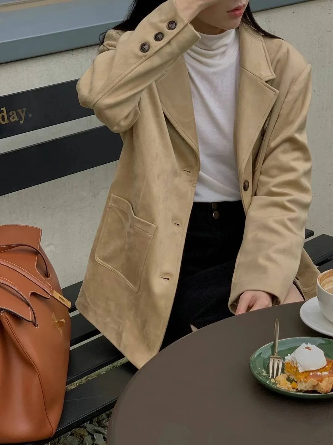聚酯 薄款 類似麂皮 類似蜜桃絨 有口袋 有內裡