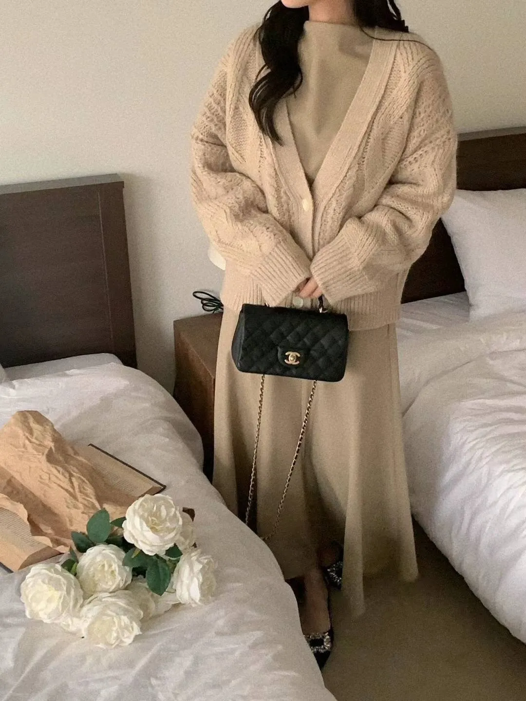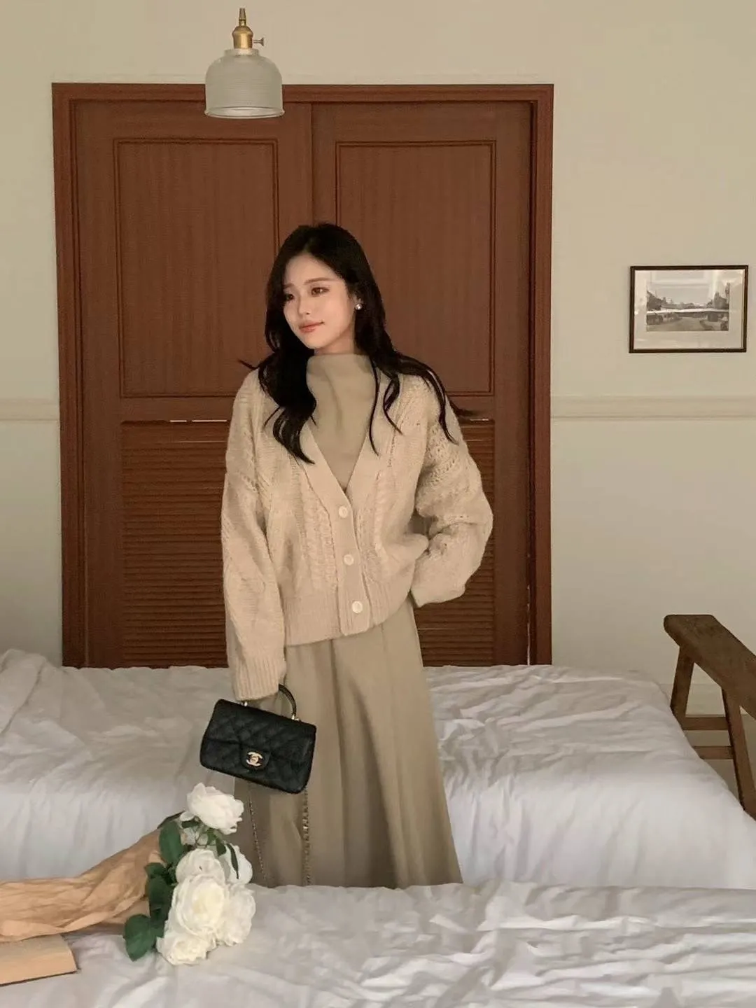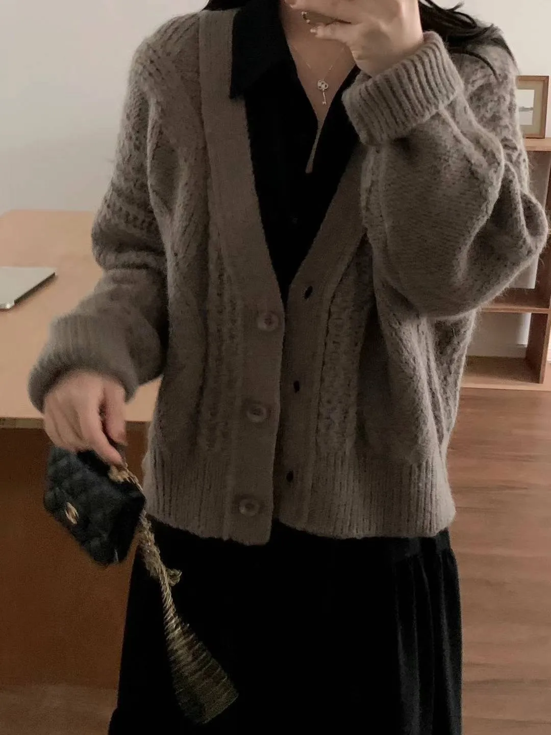 DC436羊毛三釦針織上衣外套 米 可可 原價$1770 永恆甜甜價$1720