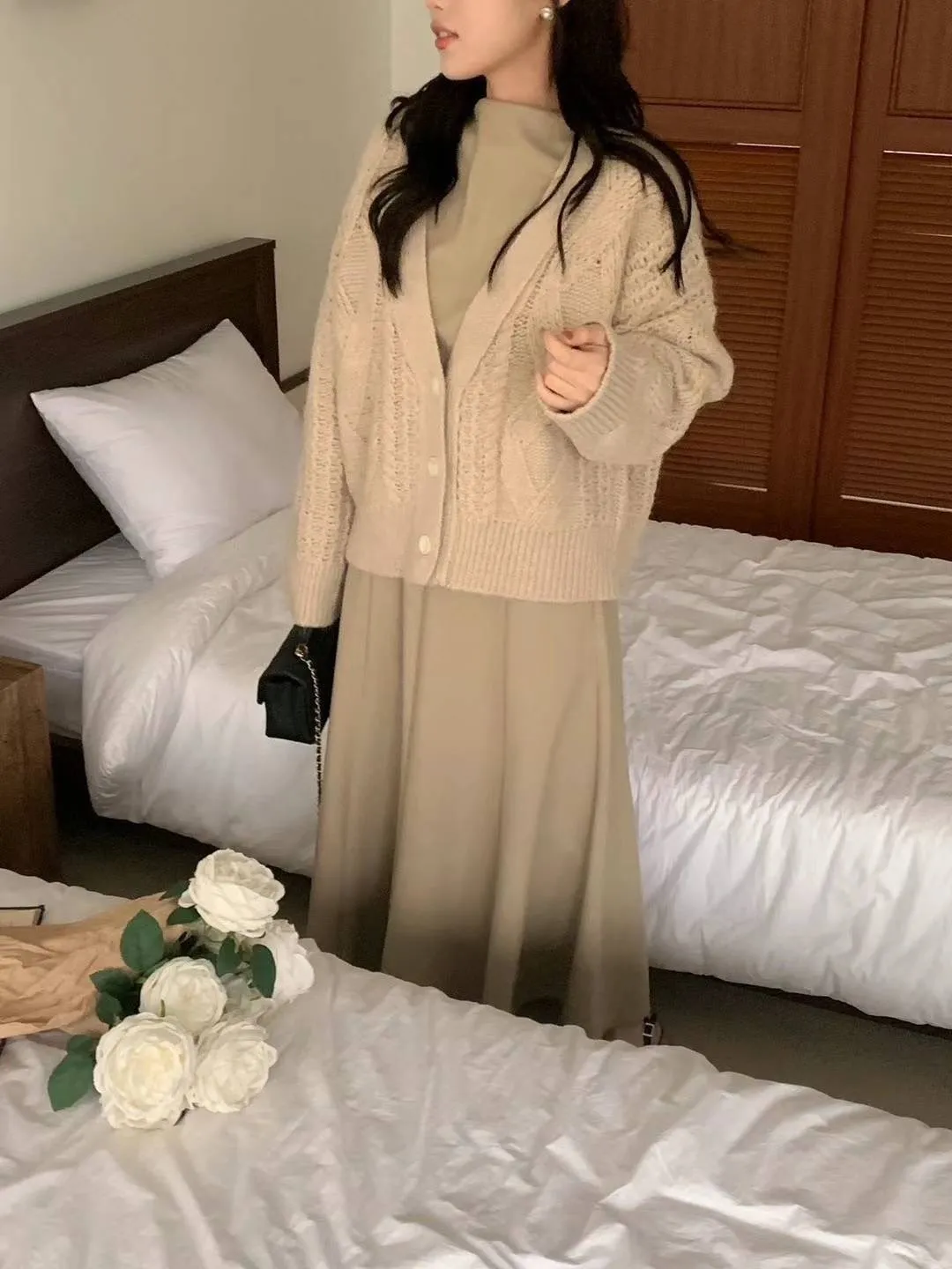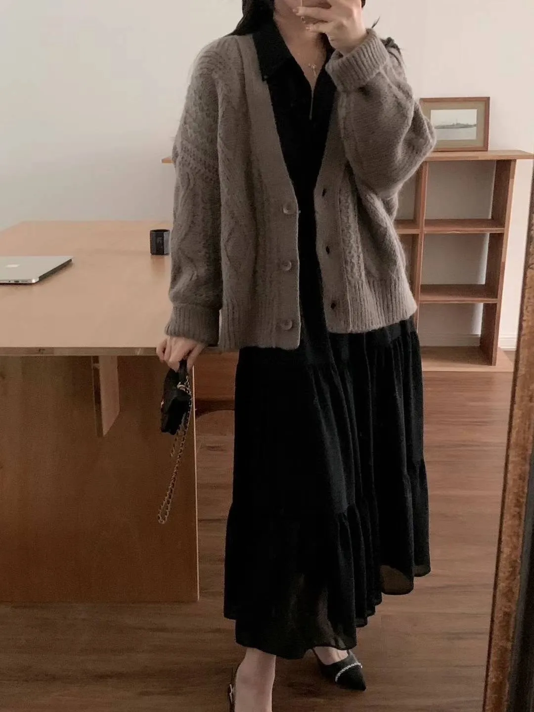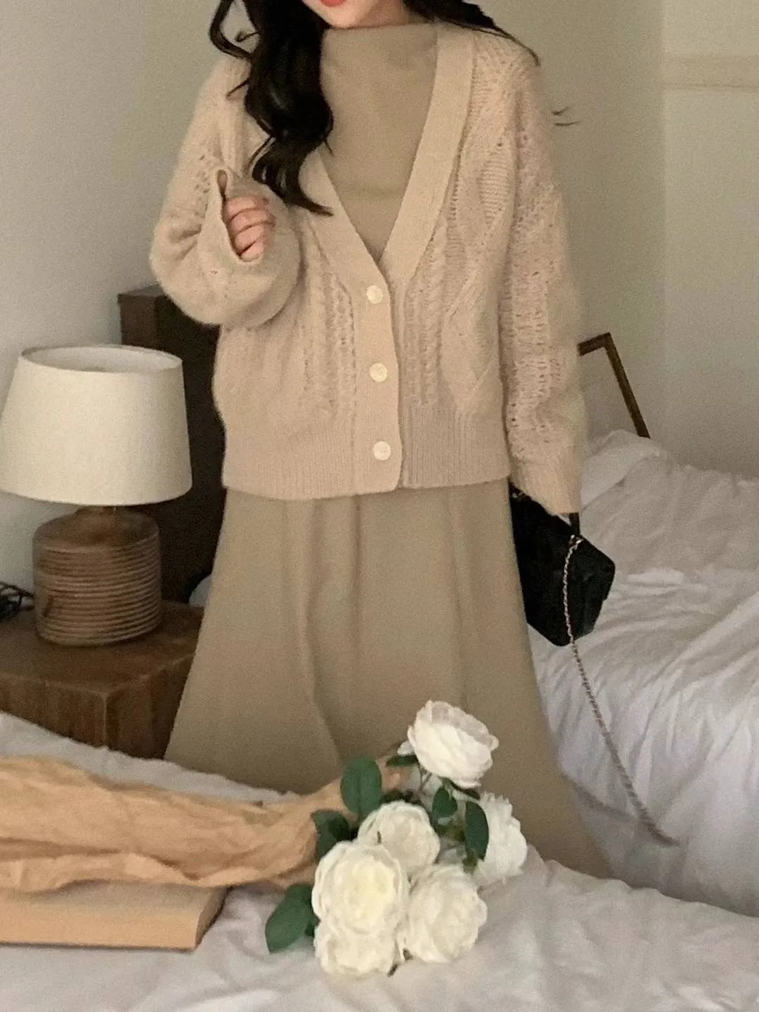 DC436羊毛三釦針織上衣外套 米 可可 原價$1770 永恆甜甜價$1720