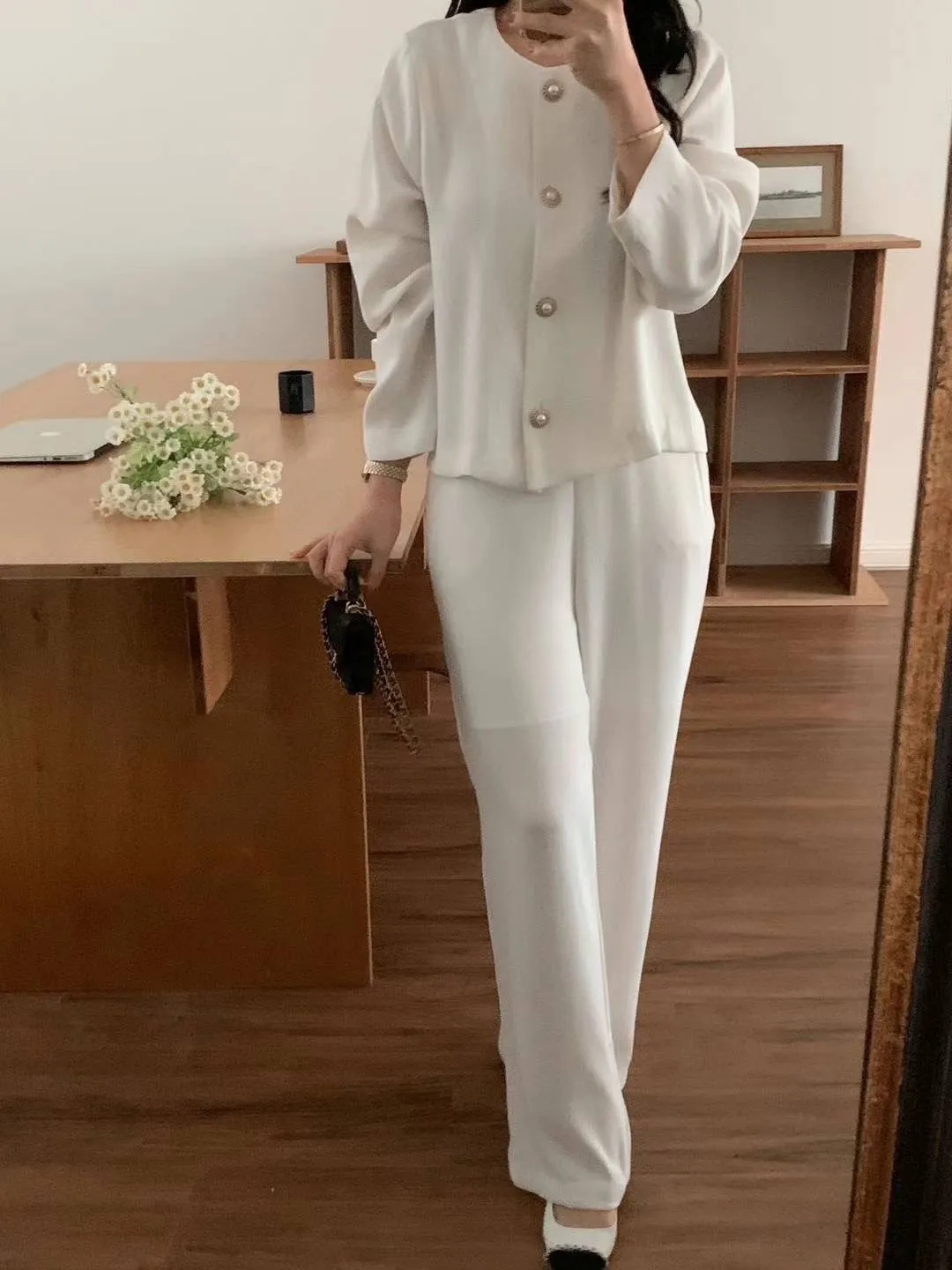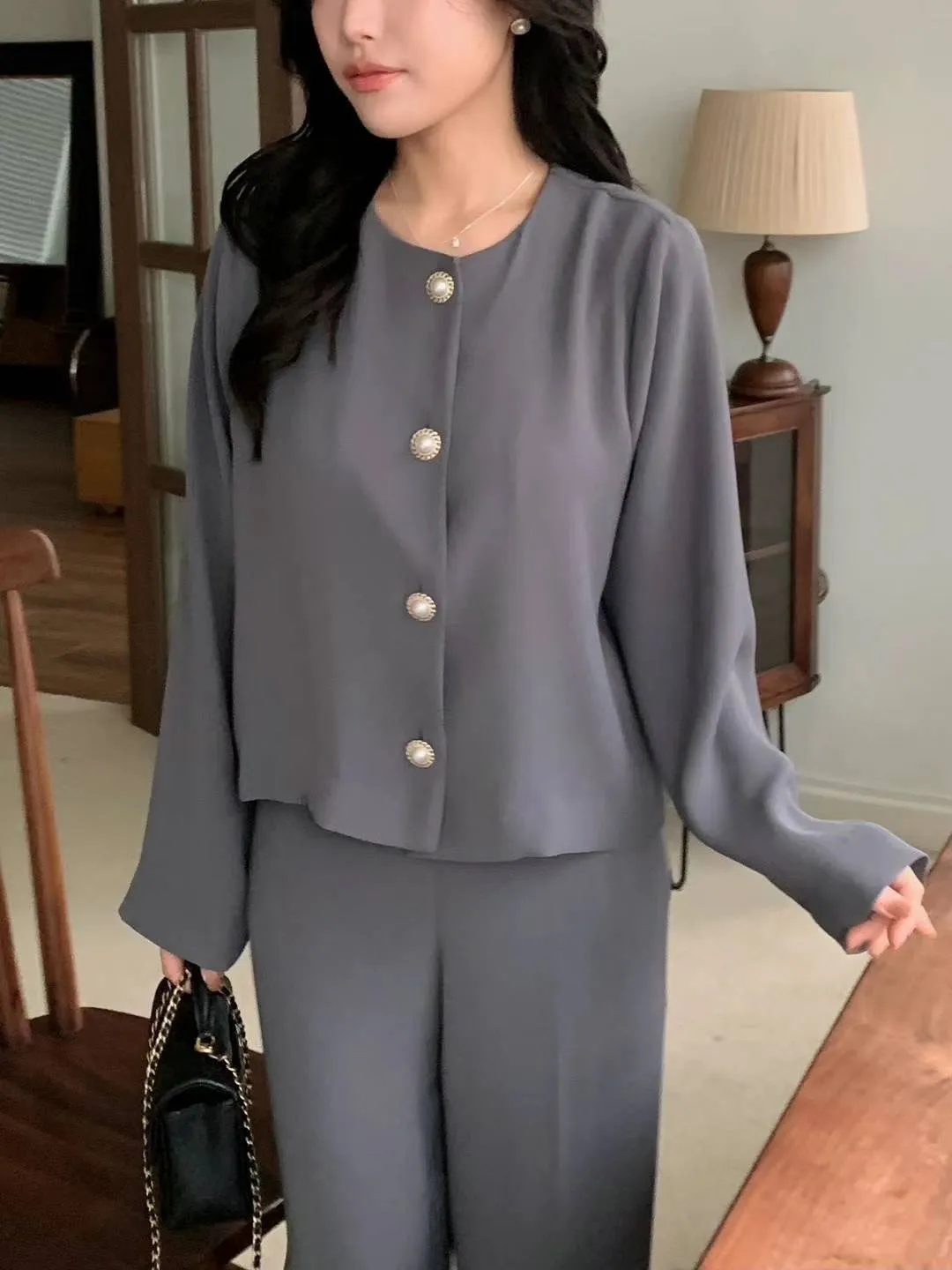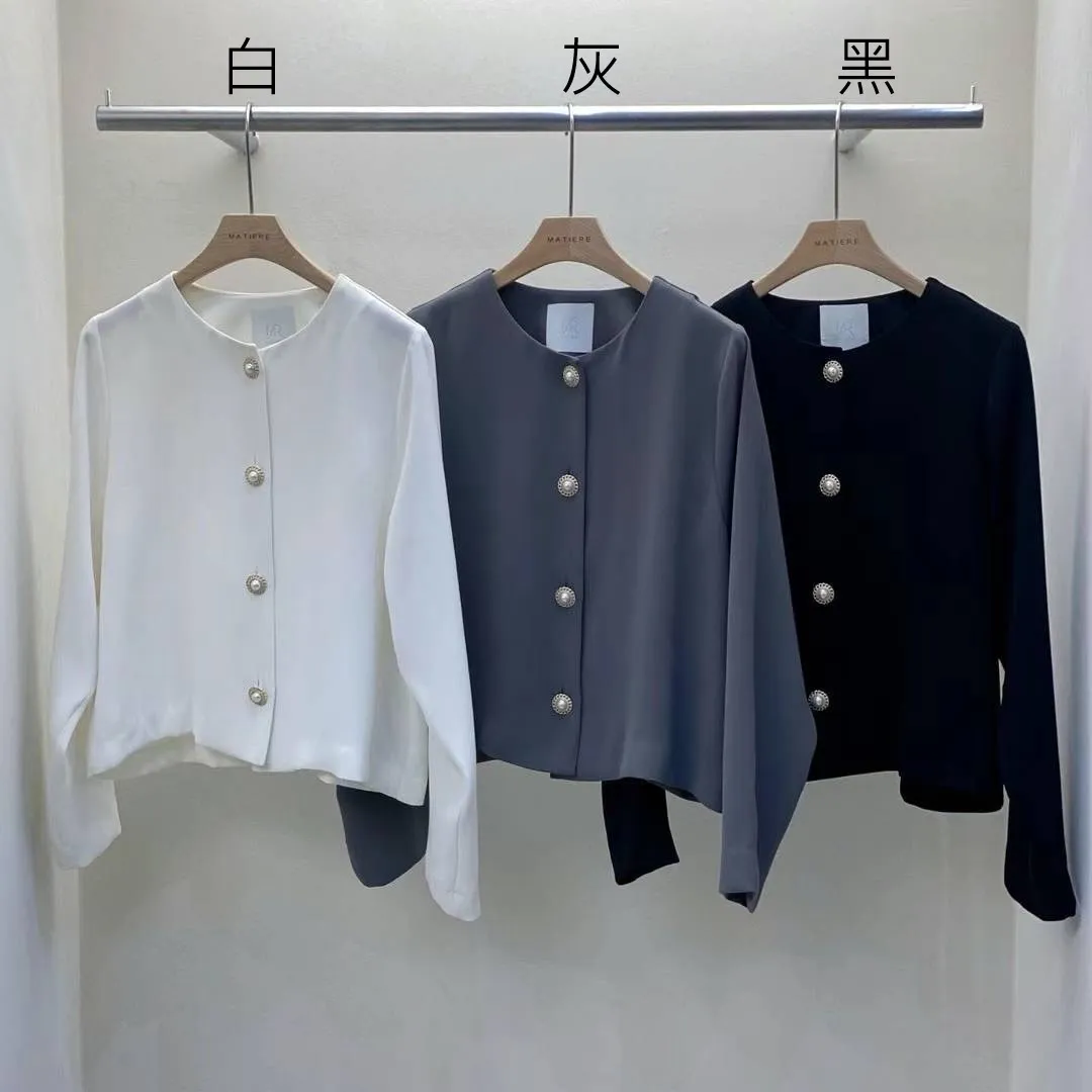 DC445質感冰絲雪紡美釦氣質上衣 白 灰 黑 原價$1270 永恆甜甜價$1220