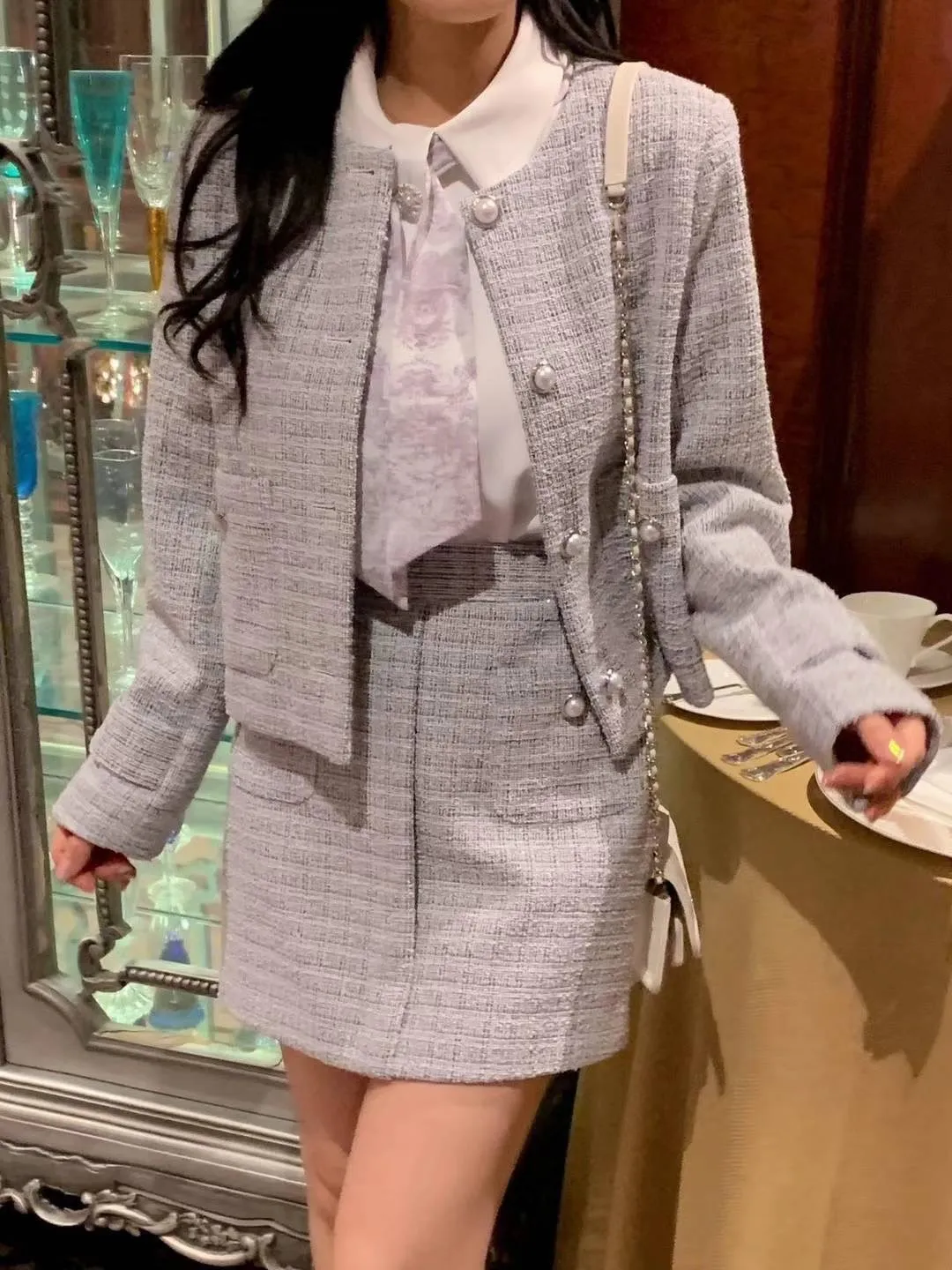 DC451套裝的小香風褲裙 粉 藍 原價$1270 永恆甜甜價$1220