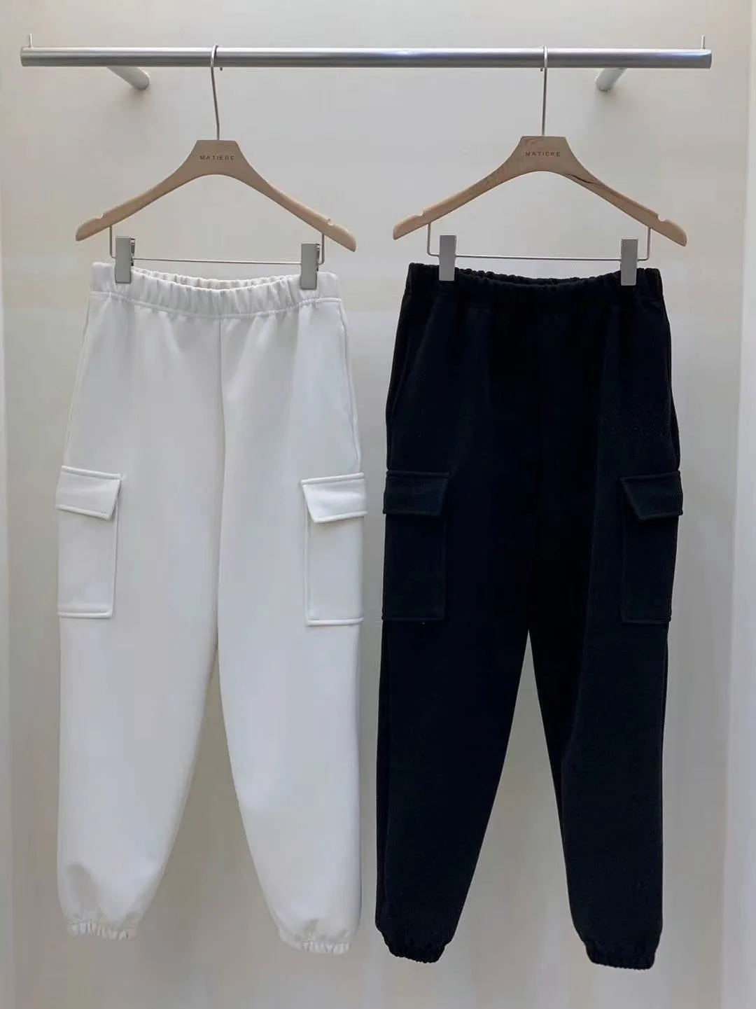 DC456套裝熱銷款雙側口袋工裝長褲 米 黑 原價$1070 永恆甜甜價$1020