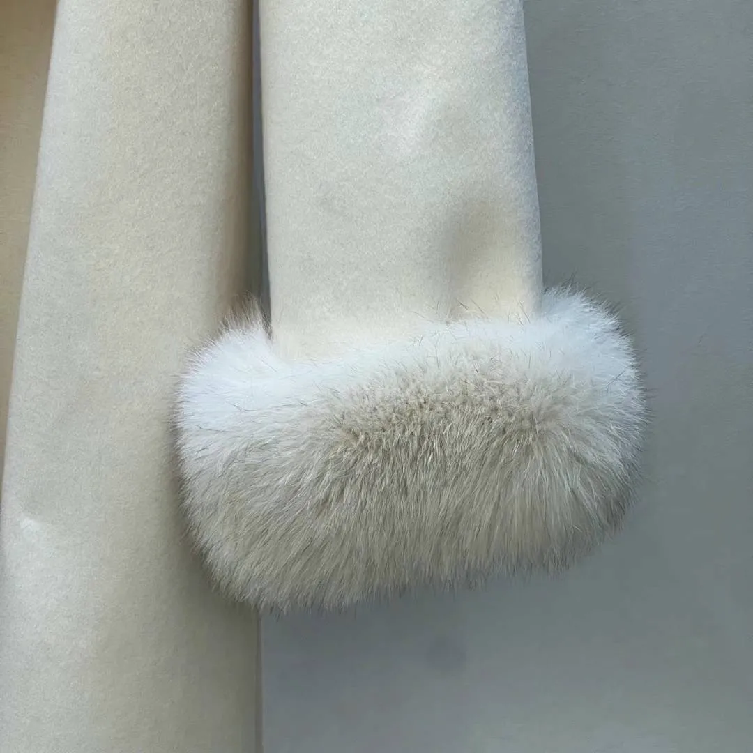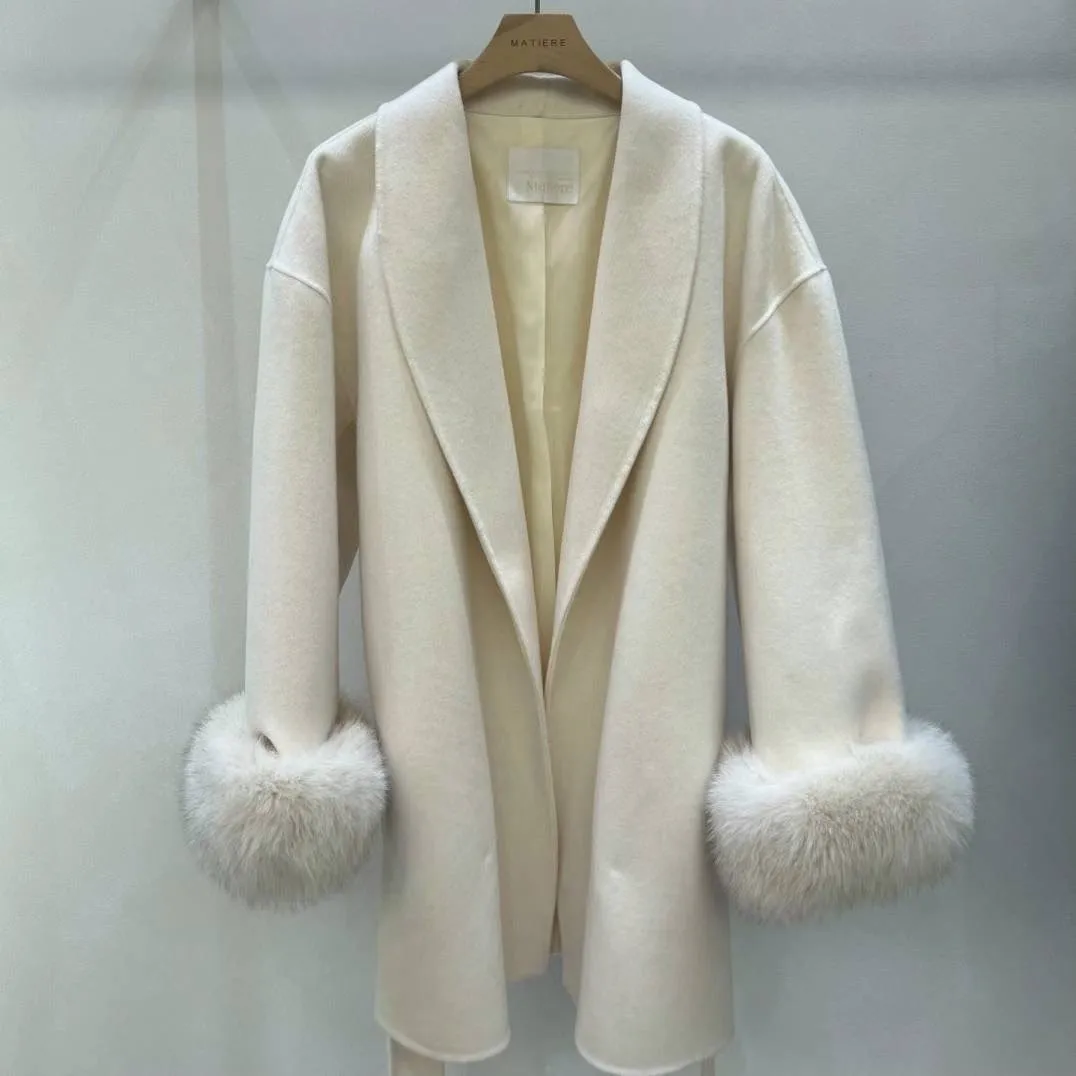 喀什米爾10%+羊毛90% 有內裡 袖子是狐狸毛 有口袋
