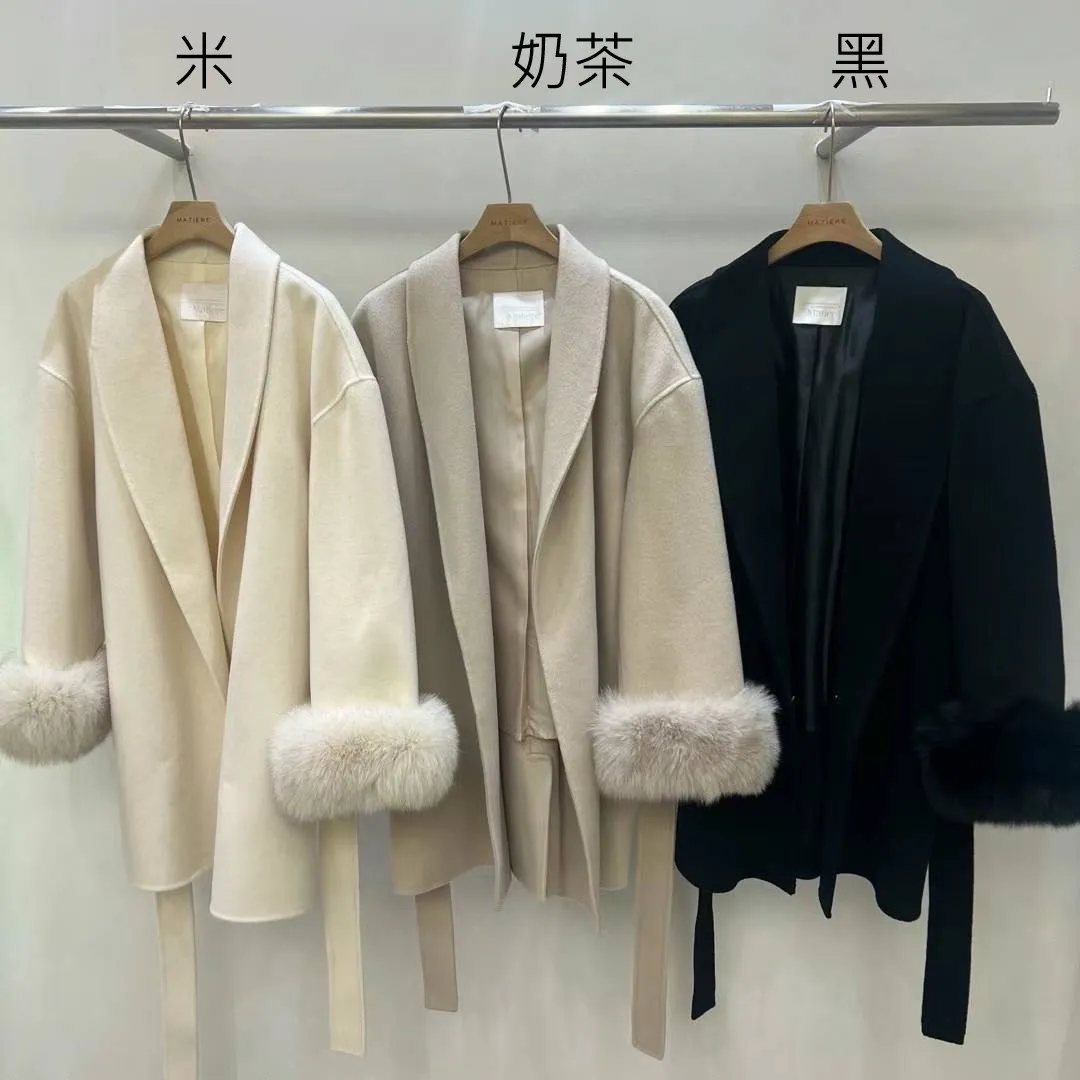 DC463特價貴氣狐狸手袖羊毛外套(附綁帶) 米 奶茶 黑 特價$3200