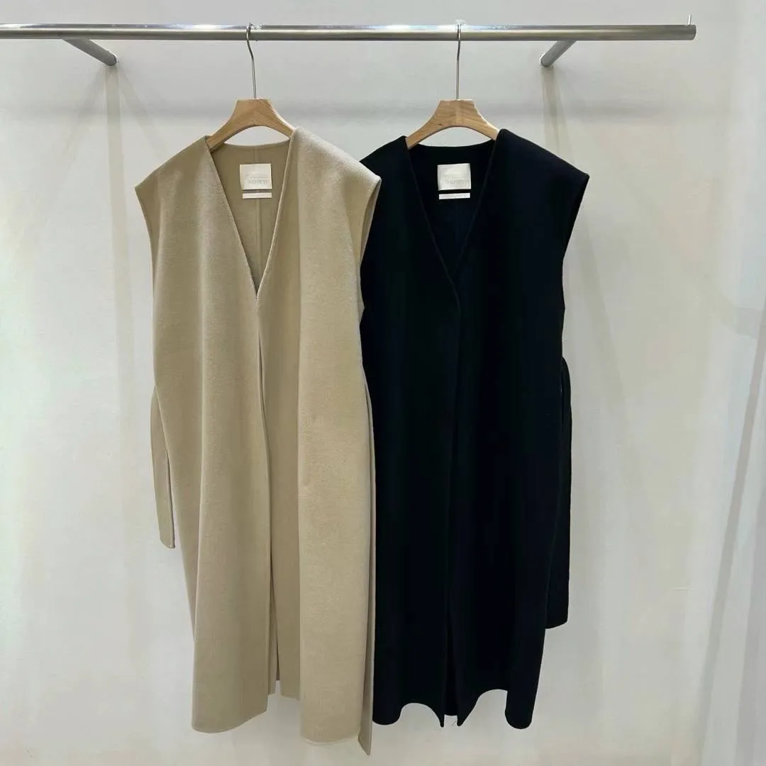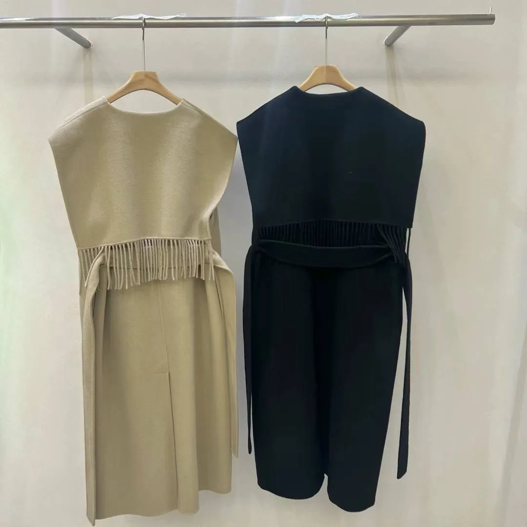 DC464特價後翻領手工羊毛無袖披肩(附綁帶) 奶茶 黑 原價$4980 特價$2990