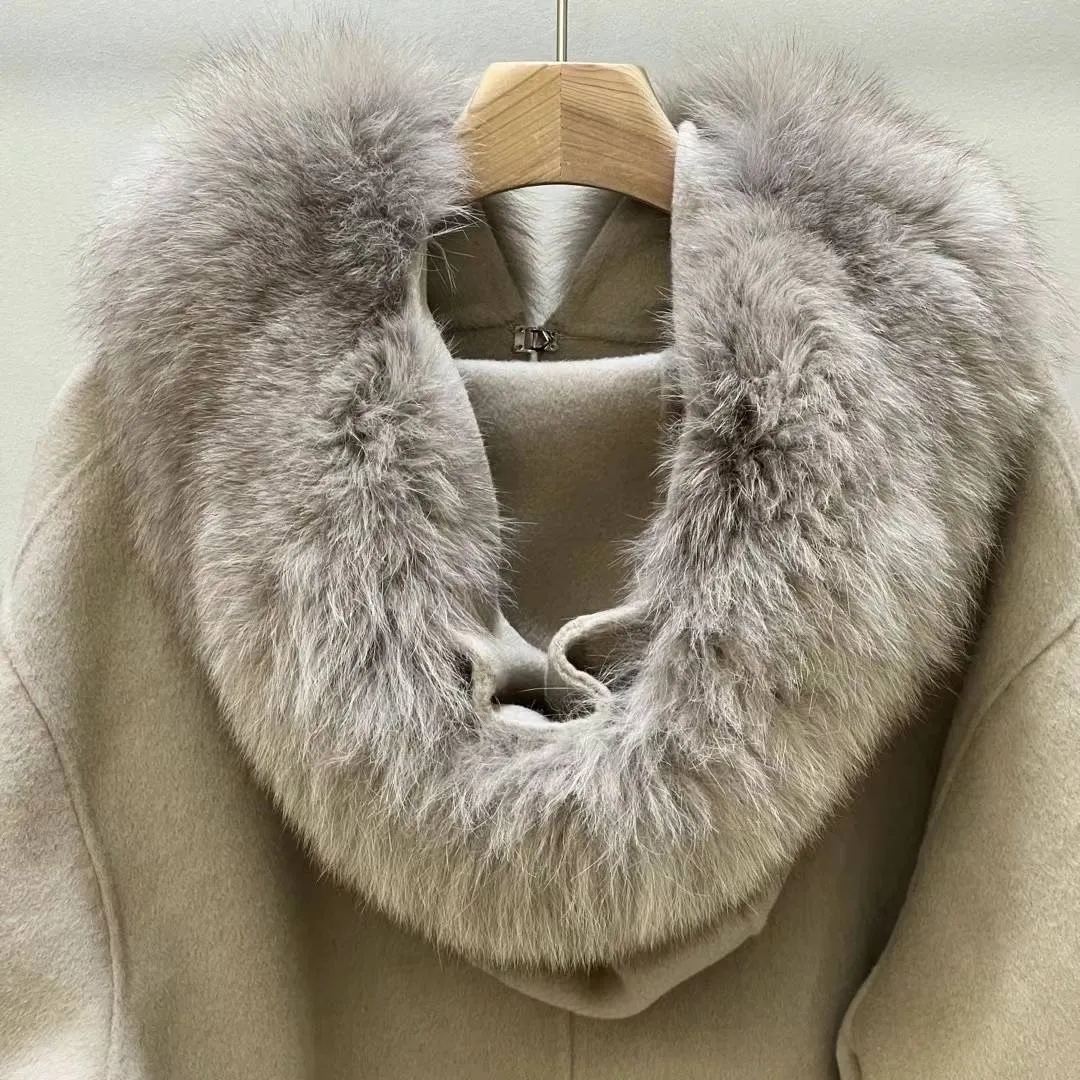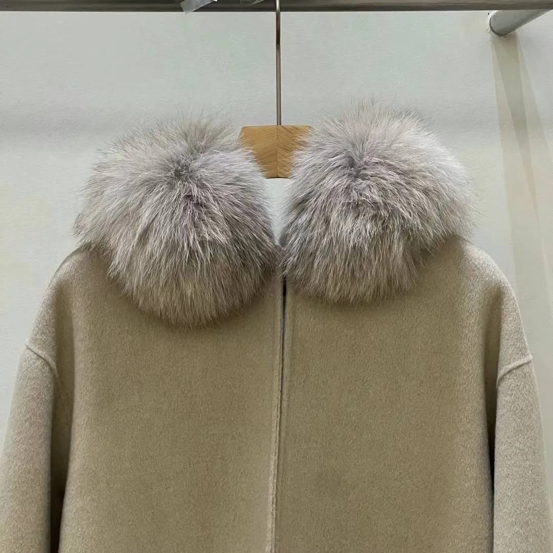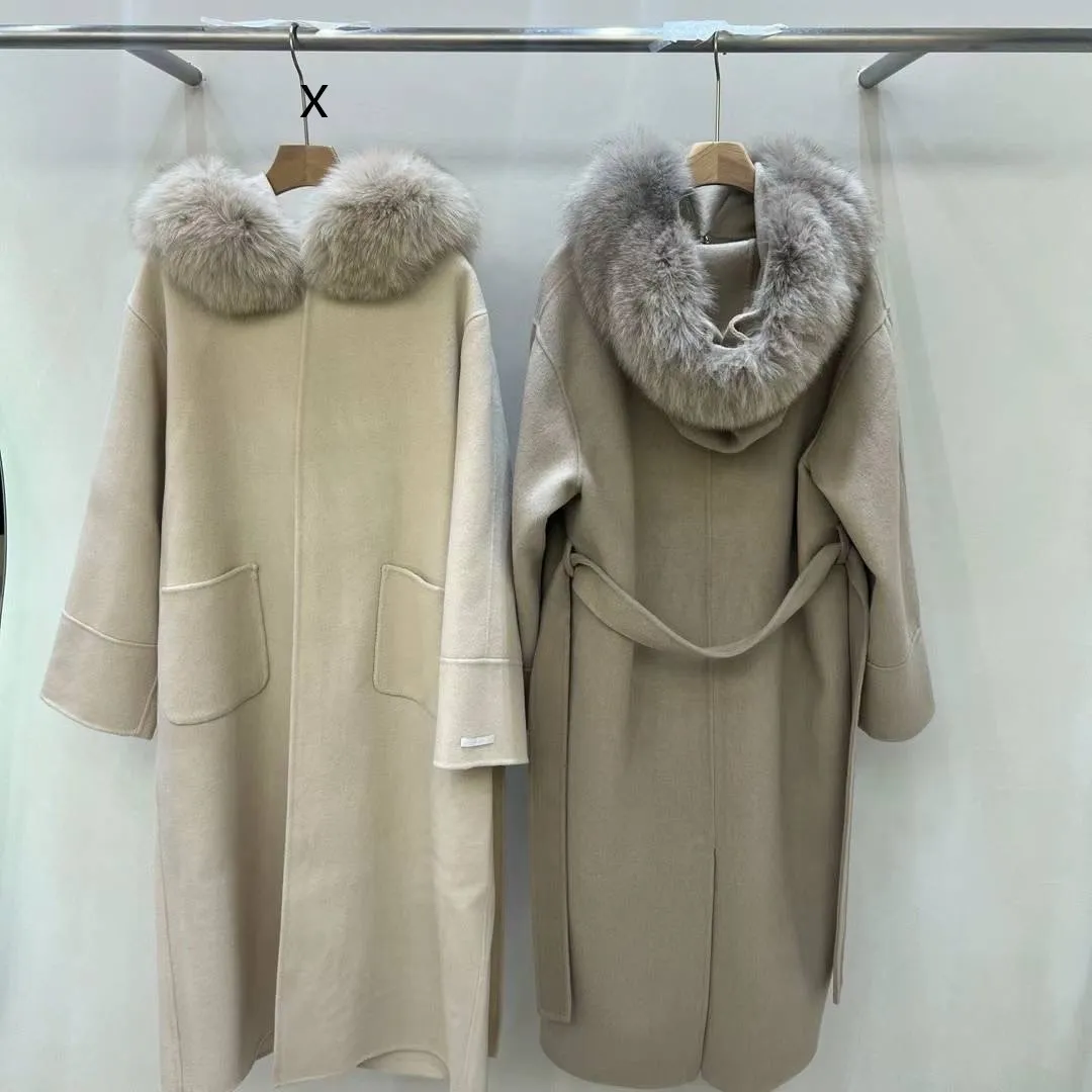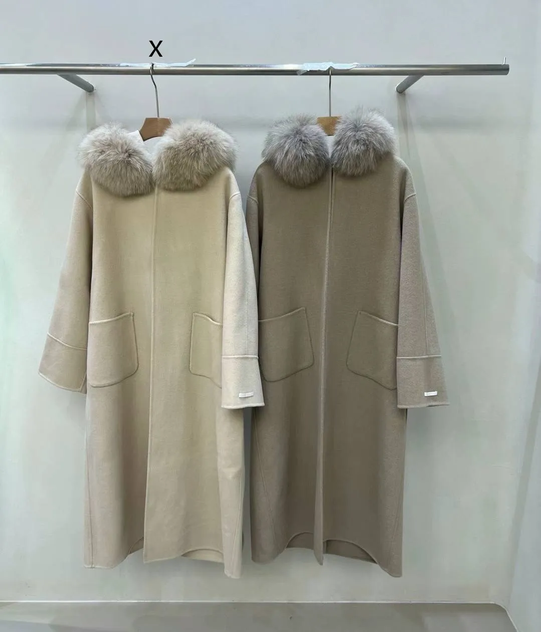 DC466特價高級狐狸毛連帽羊毛外套(附綁帶) 特價$3520