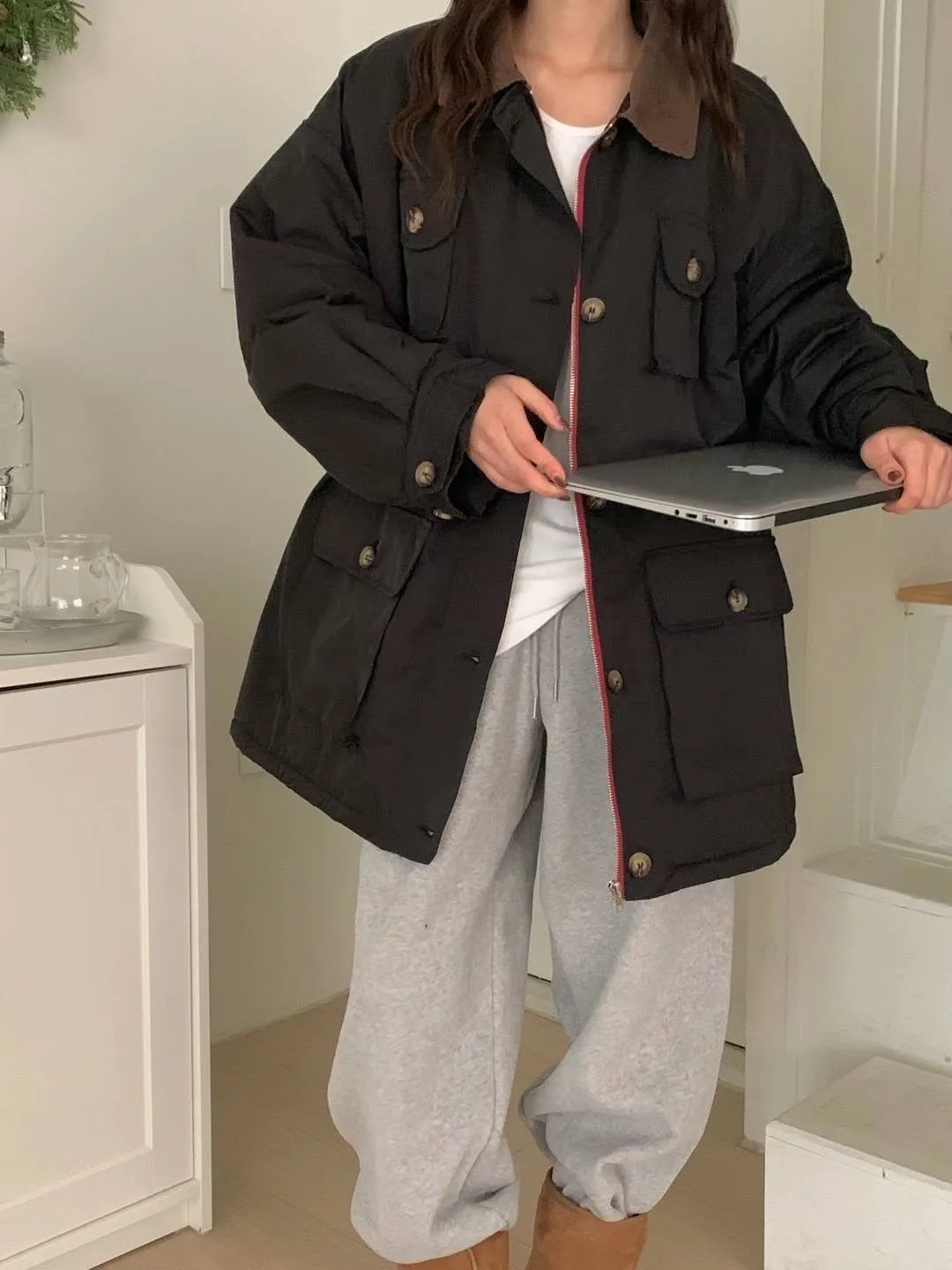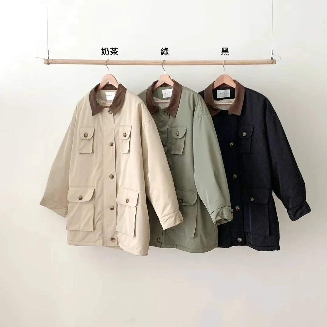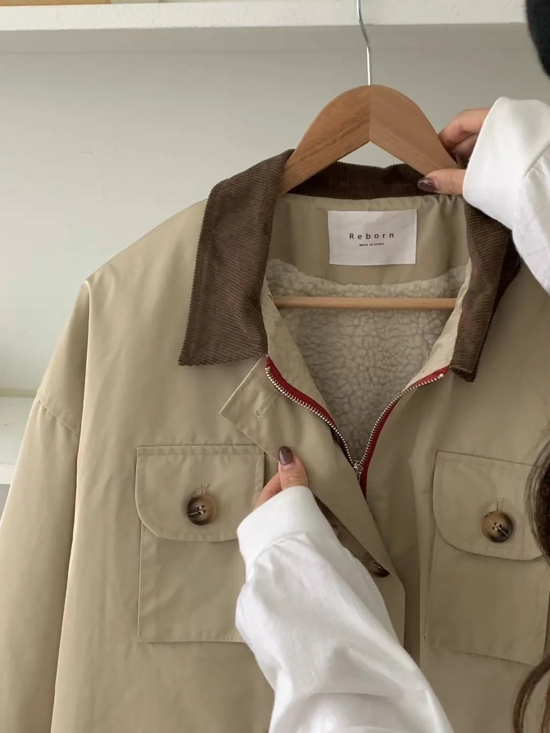 尼龍外層+羊羔毛內層+燈心絨領 拉鍊穿脫 男女同款 有口袋