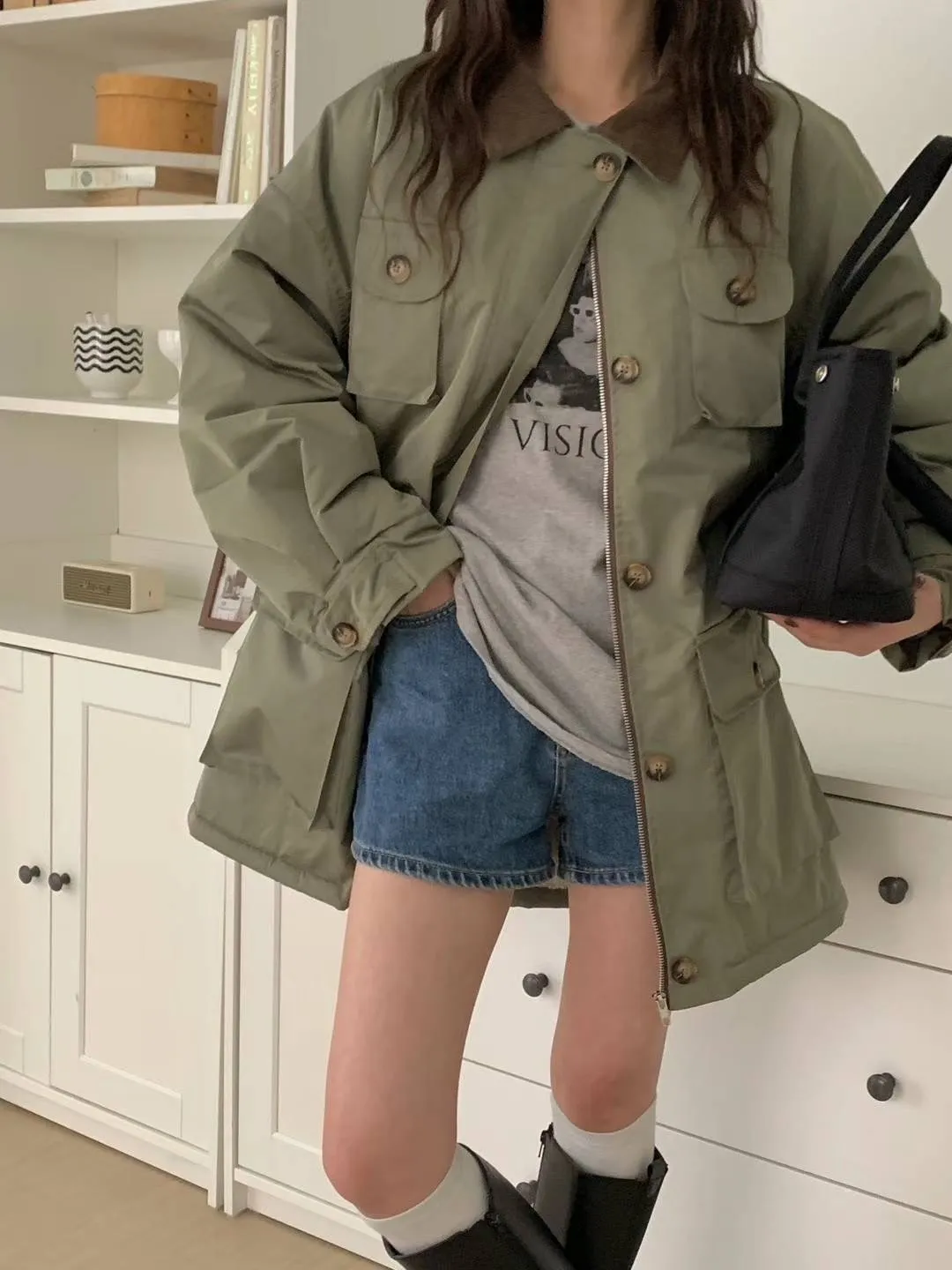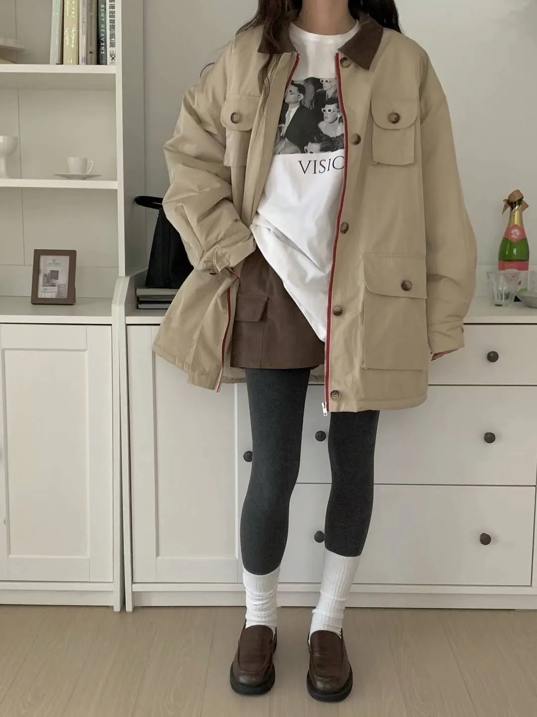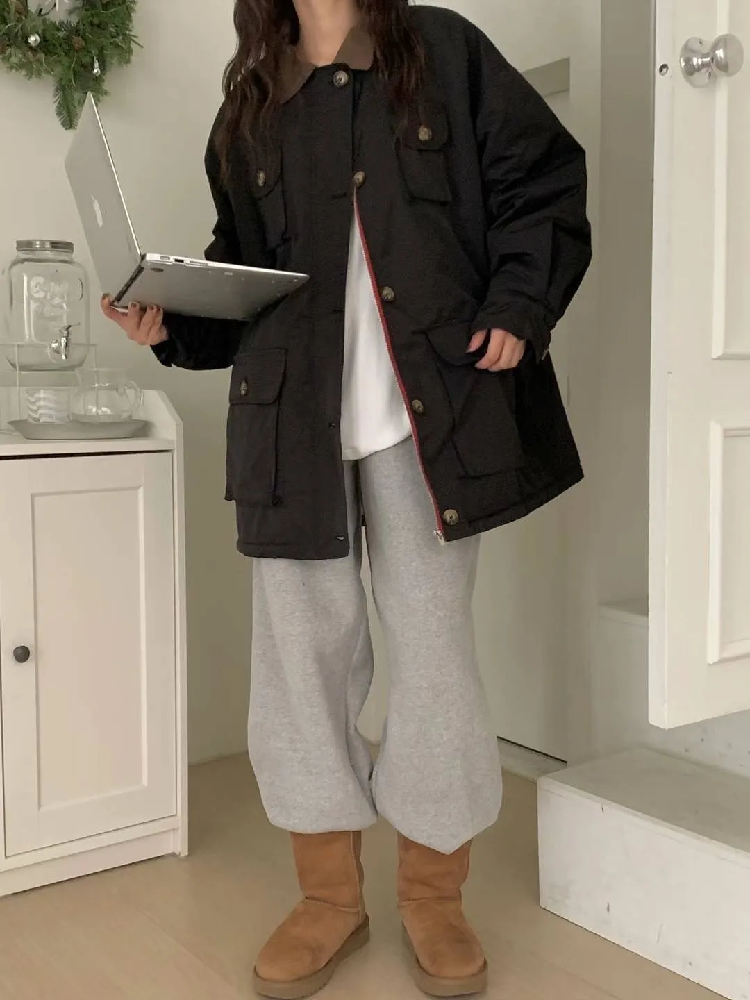 尼龍外層+羊羔毛內層+燈心絨領 拉鍊穿脫 男女同款 有口袋