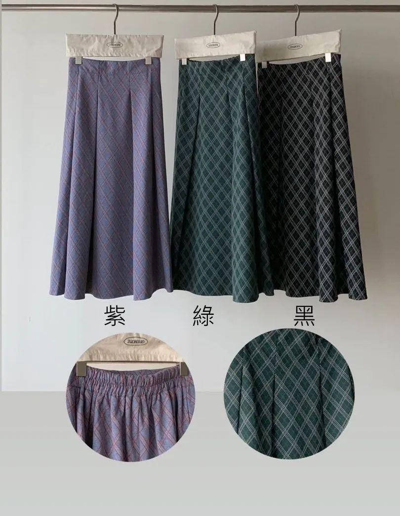DC503韓系英式菱格傘擺美裙 黑 綠 紫 官網價$1150 線上價$1120